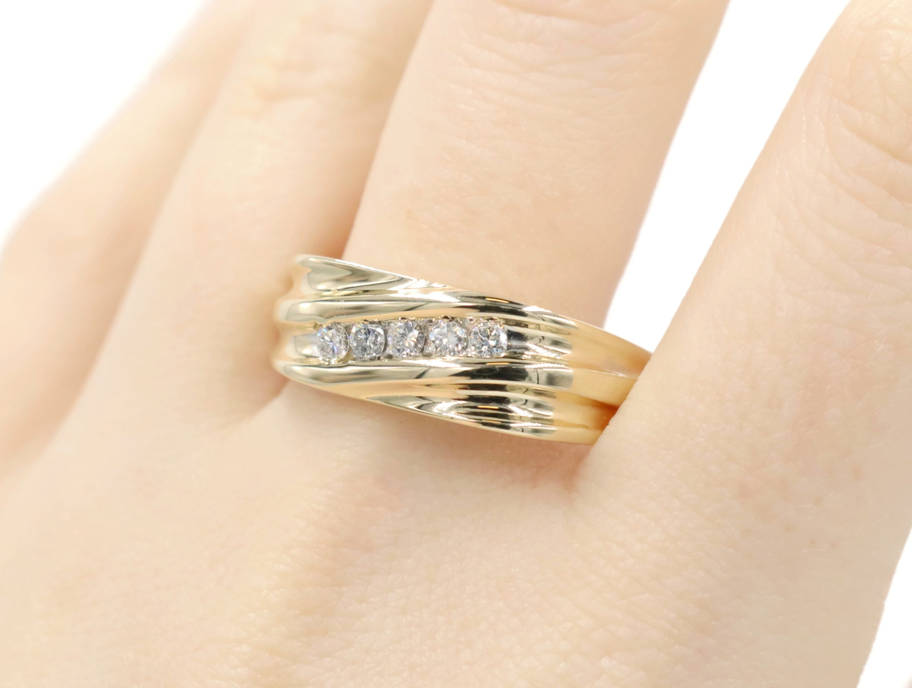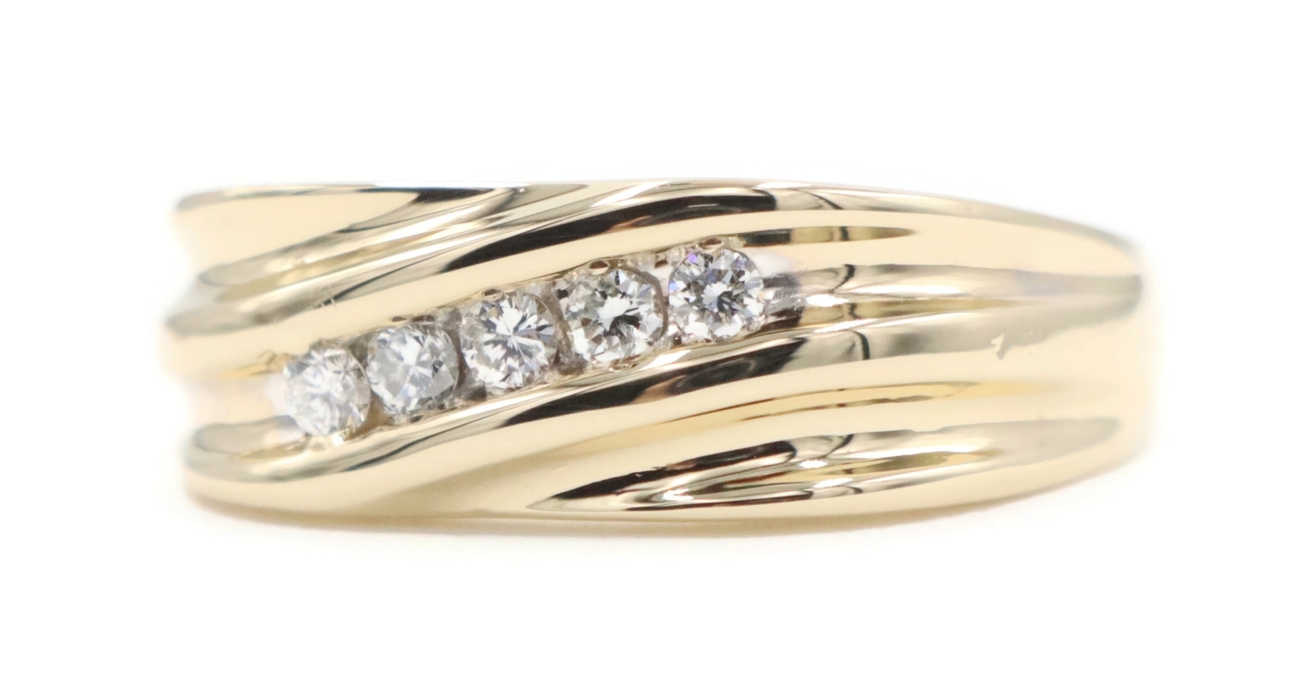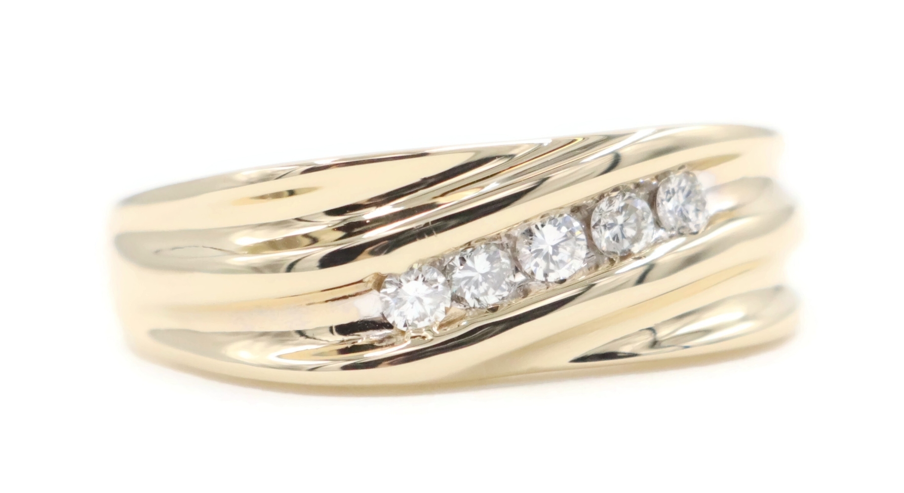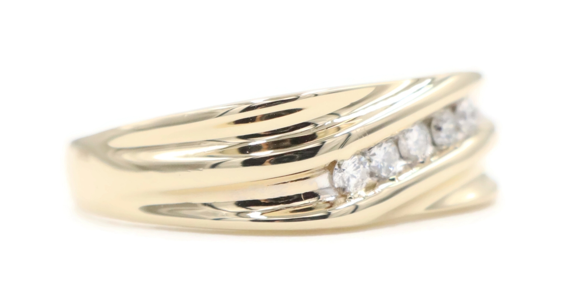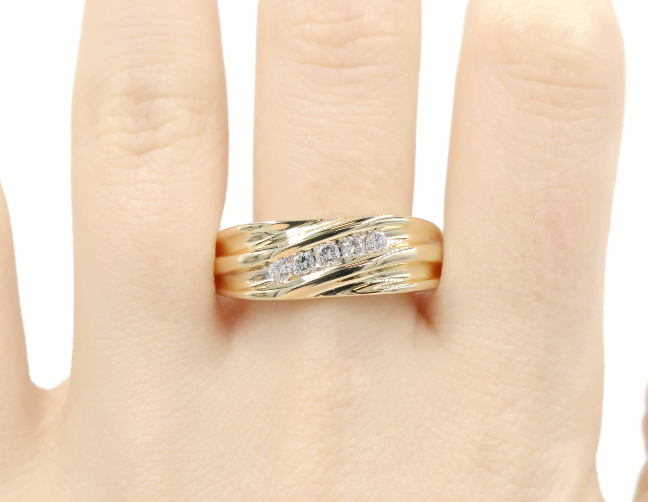Diagonal Channel-Set 0.25 Ctw Round Diamond 14KT Yellow Gold Wedding Band Ring | USA Pawn
