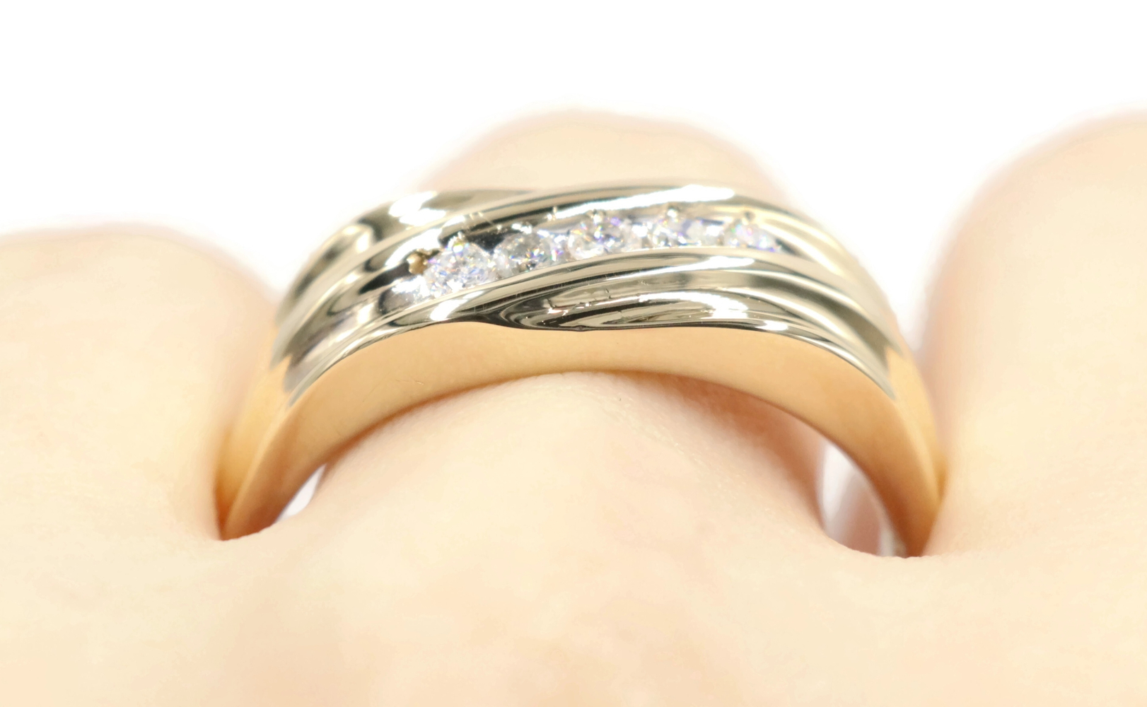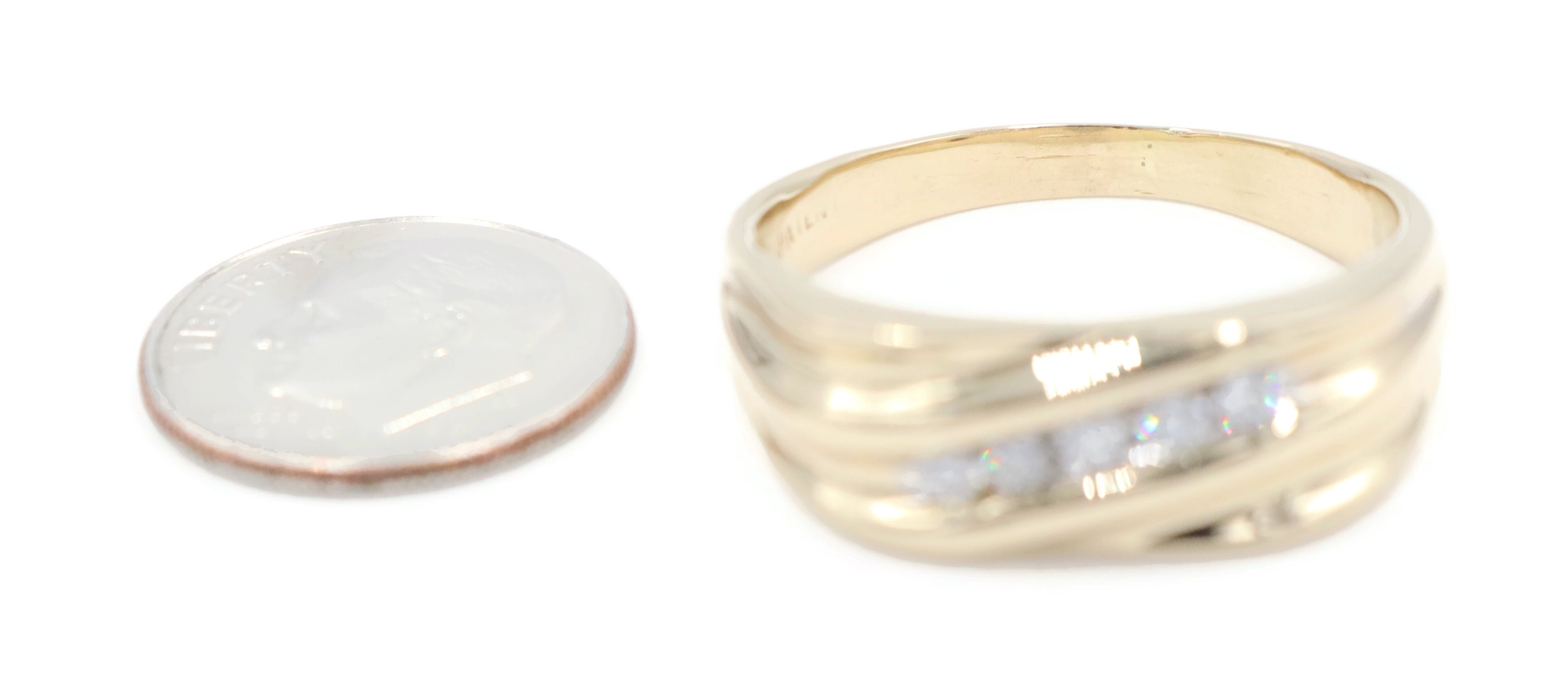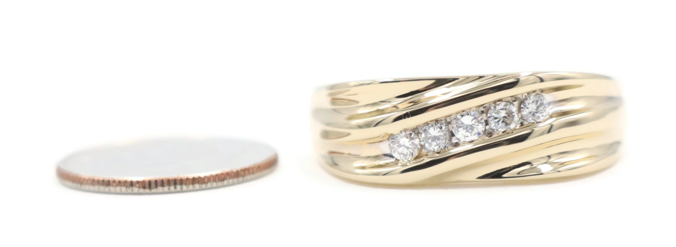 Diagonal Channel-Set 0.25 Ctw Round Diamond 14KT Yellow Gold Wedding Band Ring. This ring is a size 12.