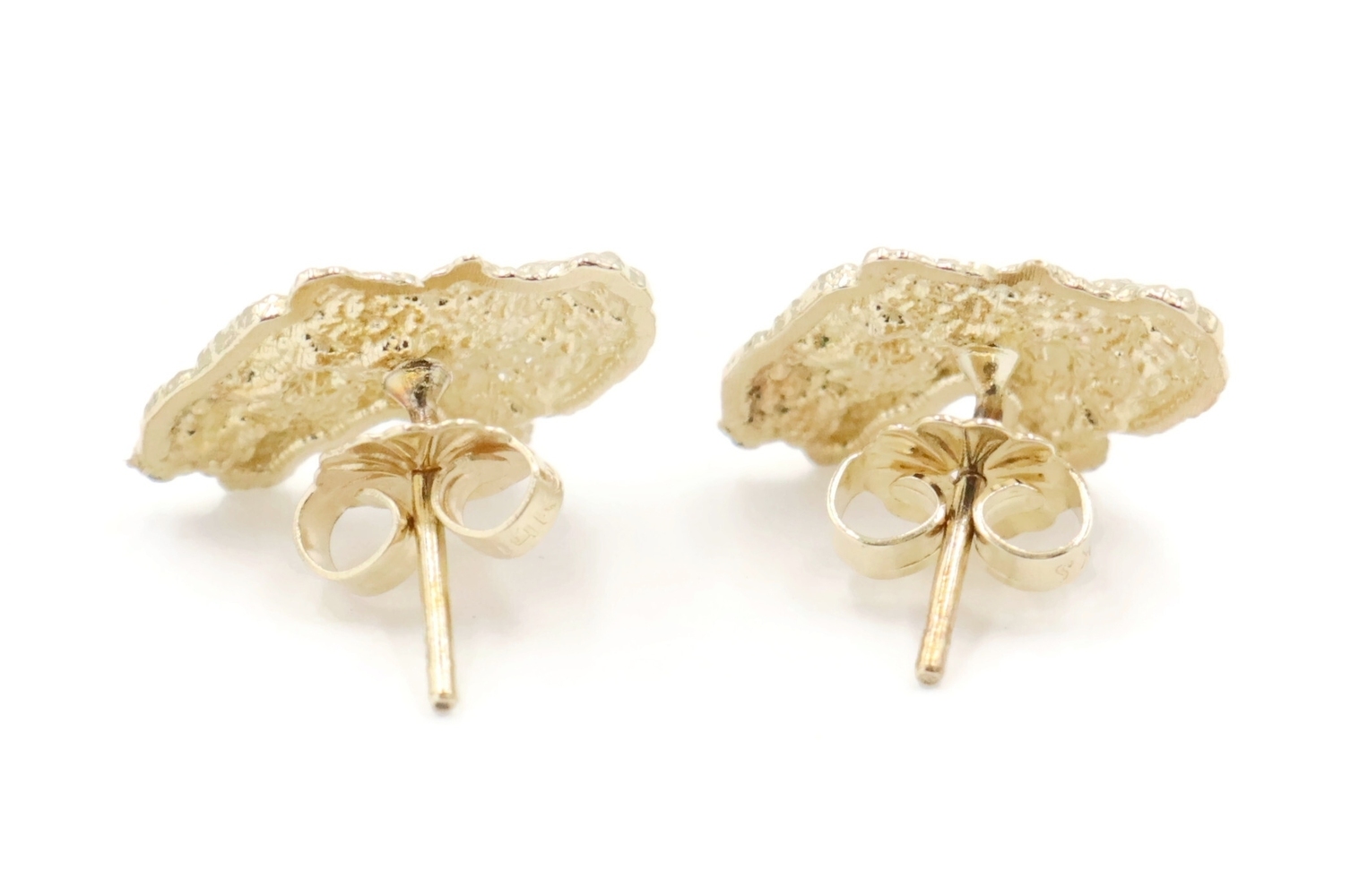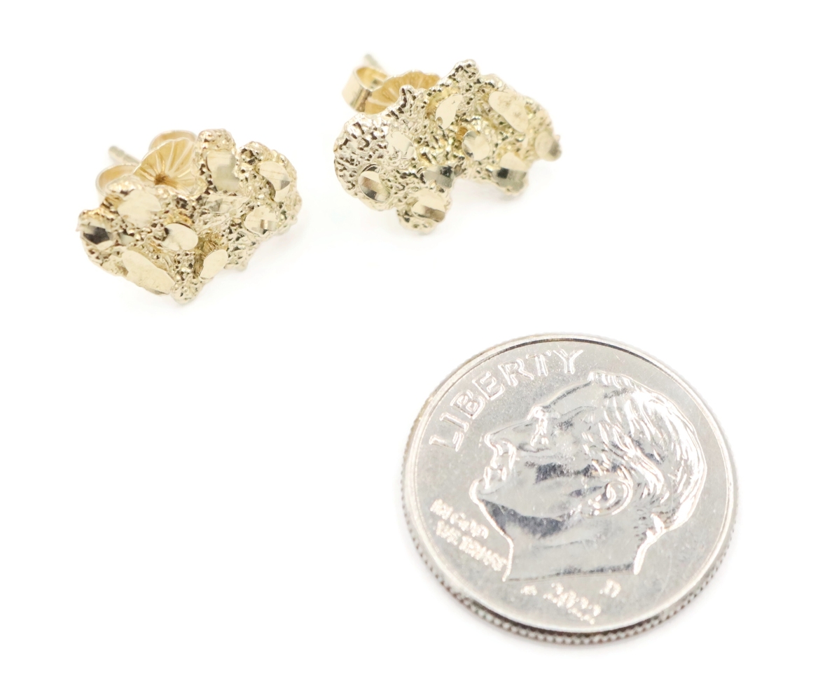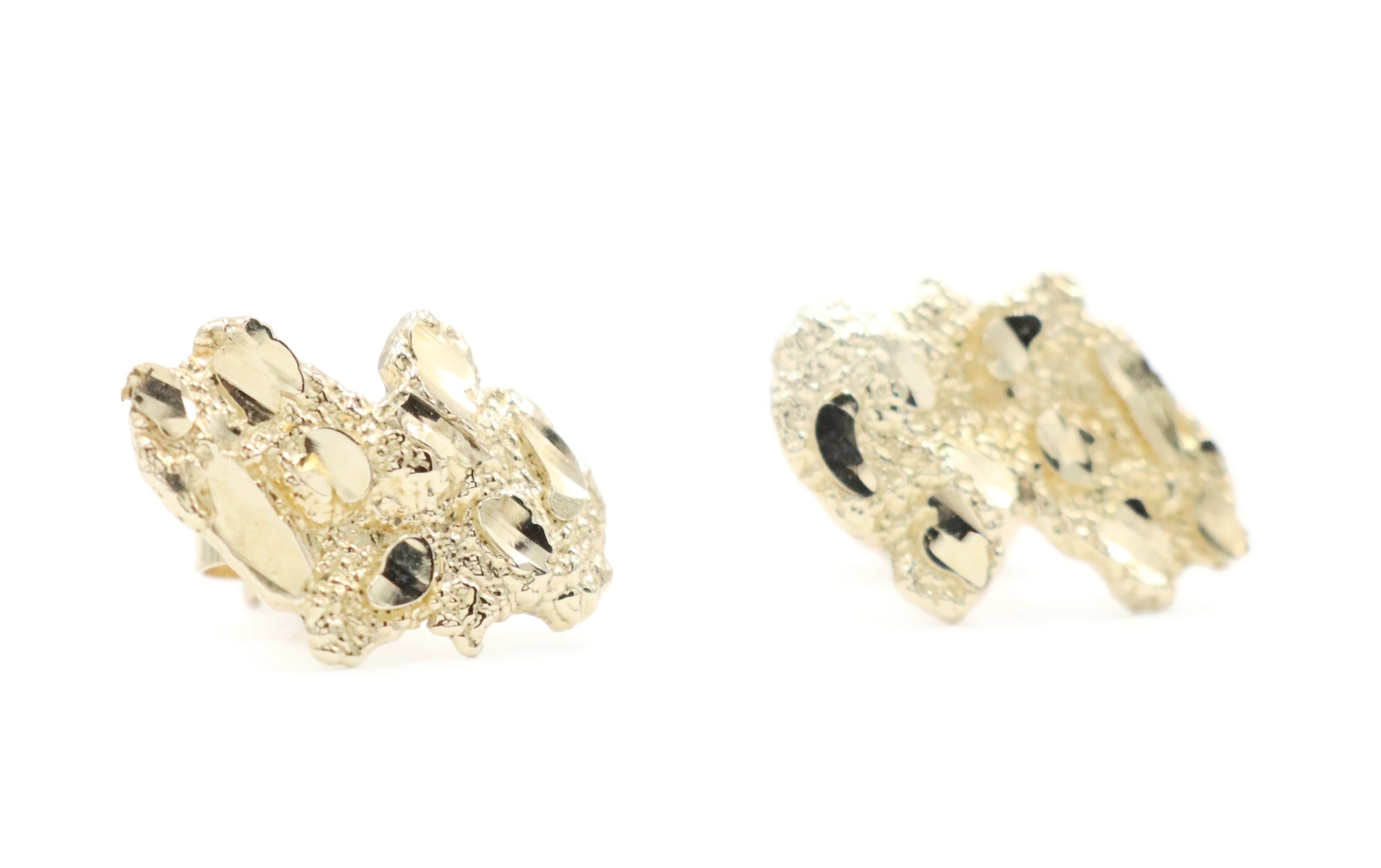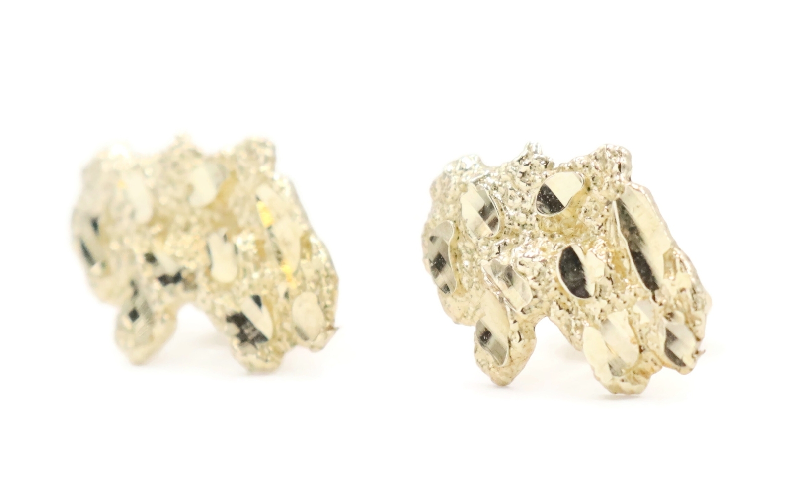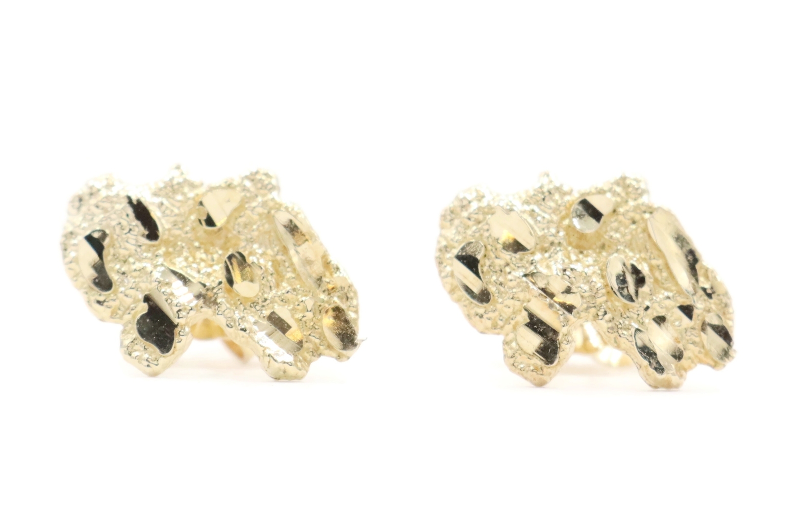 Diamond-Cut Estate 10KT Yellow Gold Retro Style Nugget 14.2mm Stud Earrings. These earrings each have an approximate max length of 14.2mm. The push-backs are made with 14KT yellow gold.