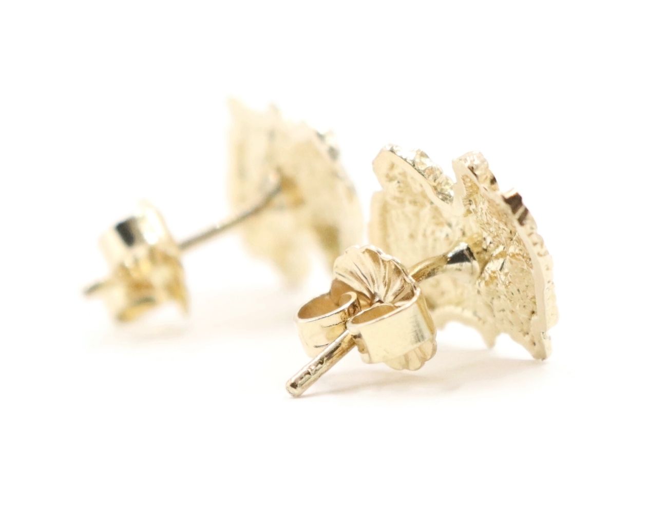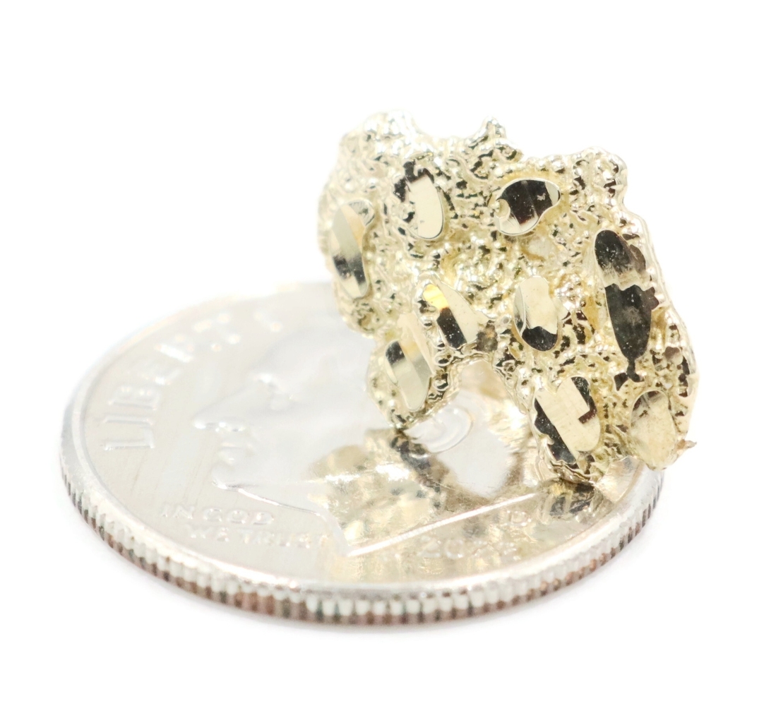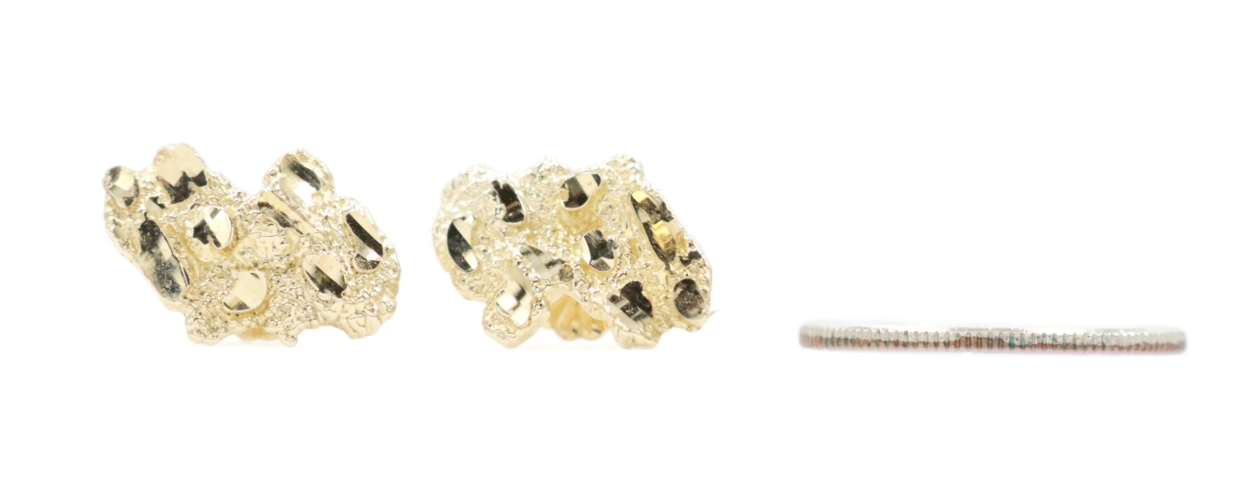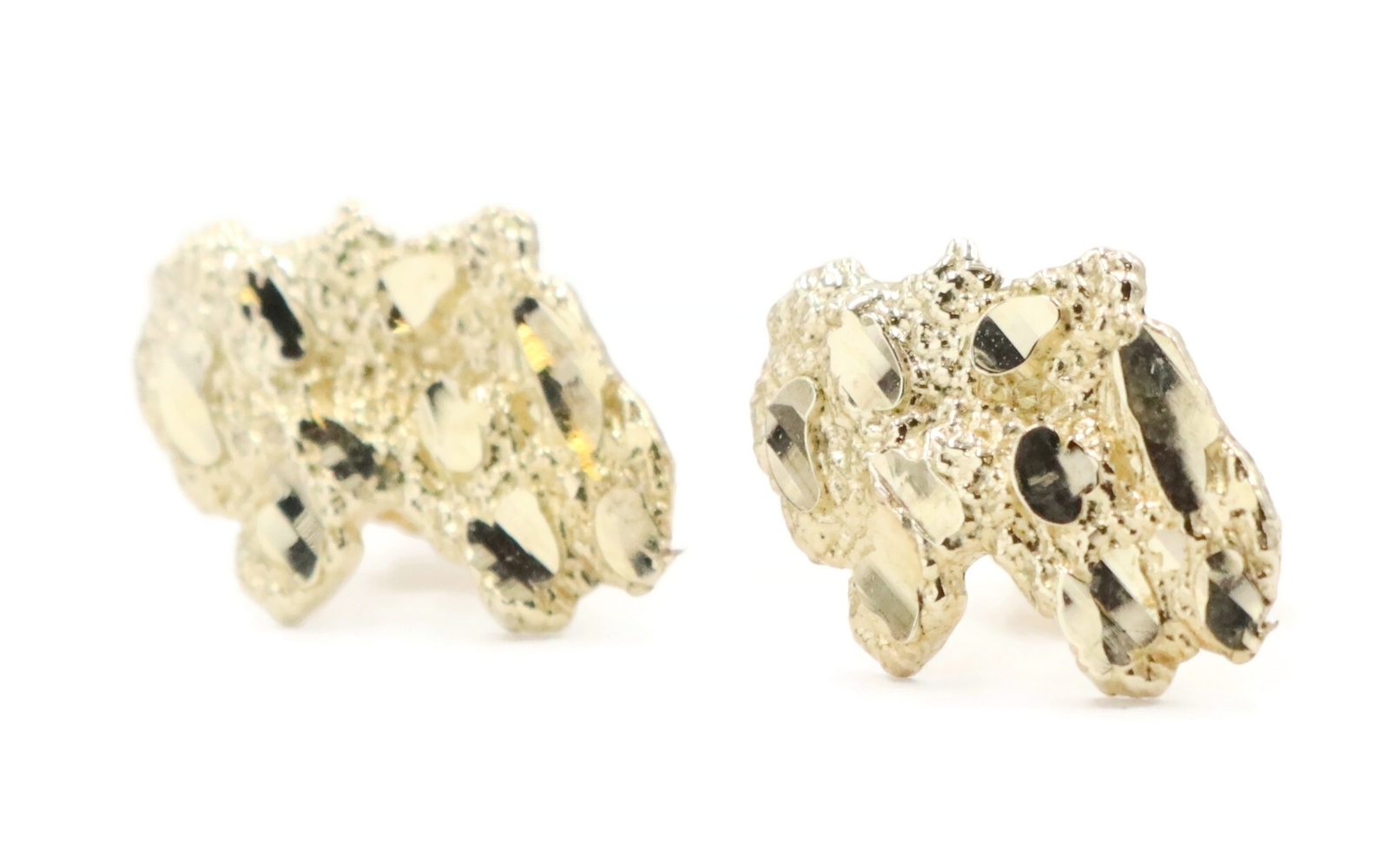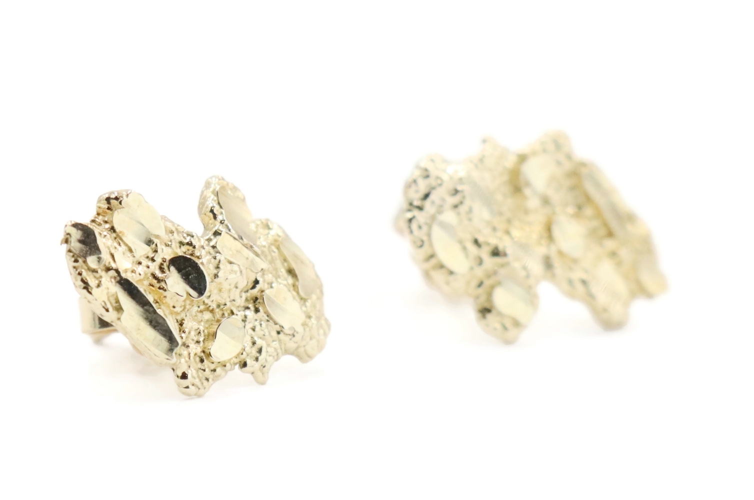 Diamond-Cut Estate 10KT Yellow Gold Retro Style Nugget 14.2mm Stud Earrings. These earrings each have an approximate max length of 14.2mm. The push-backs are made with 14KT yellow gold.