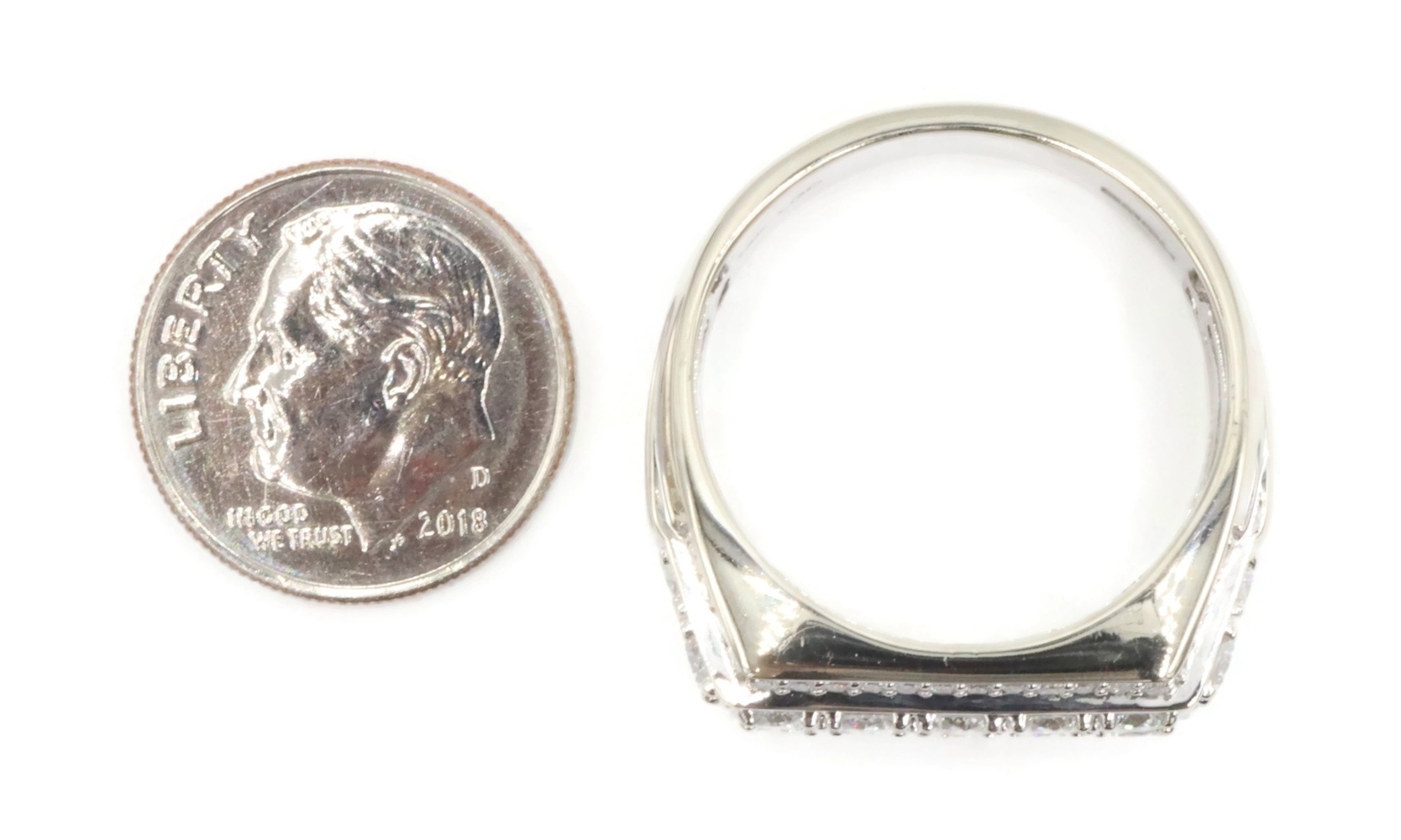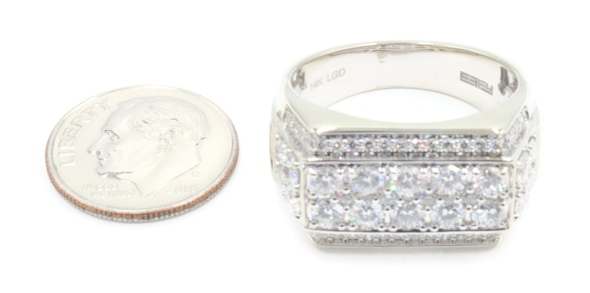 Effy 1.93 Ctw Round Lab-Grown Diamond Cluster 14KT White Gold Men's Ring 9.23g. This ring is a size 10.