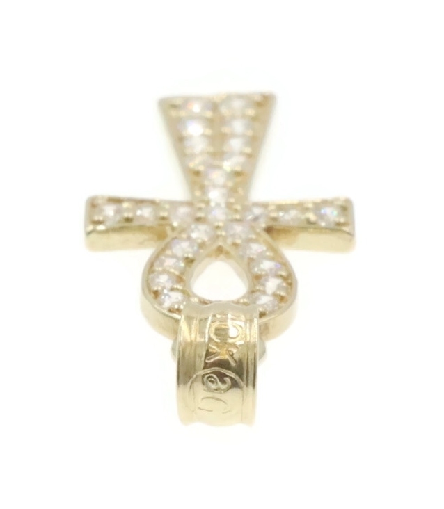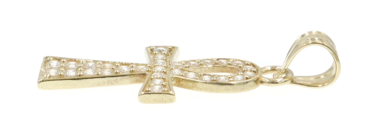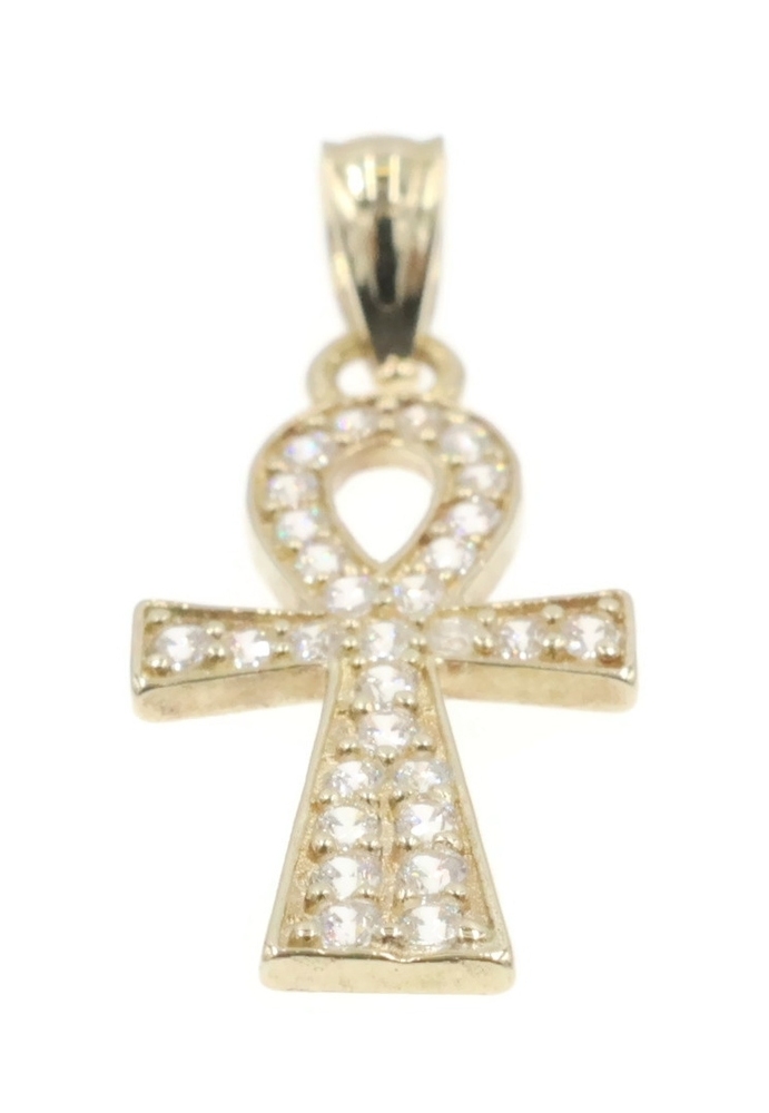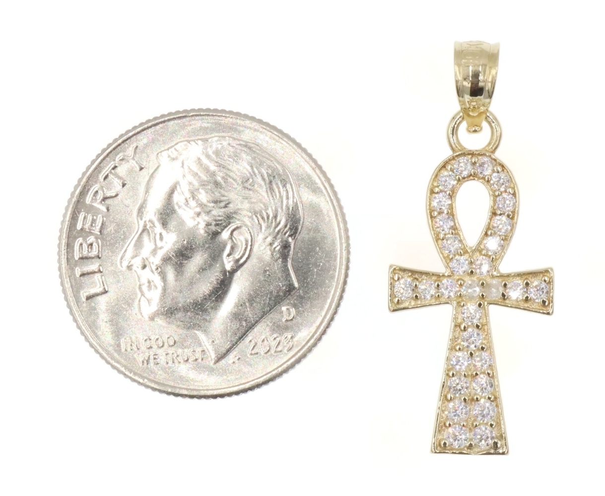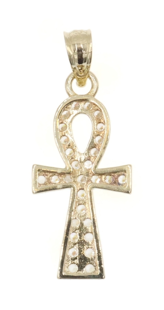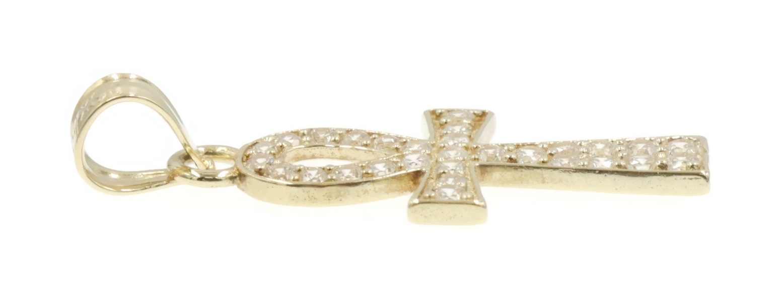Egyptian 10KT Yellow Gold Round Cubic Zirconia Ankh Necklace Pendant by AG 1". This pendant is approximately 25.6mm in length (including the bail) and 10.1mm in width.