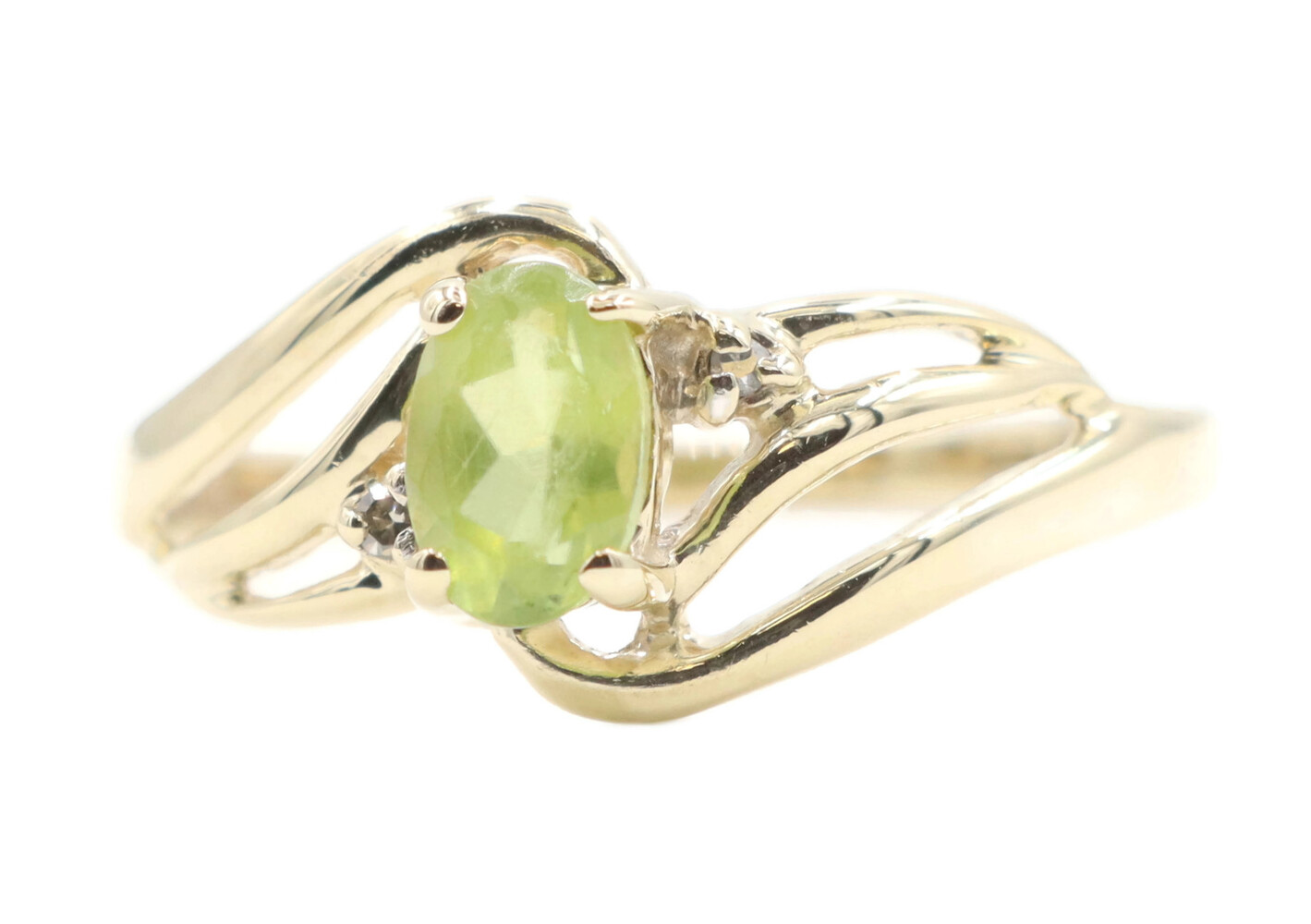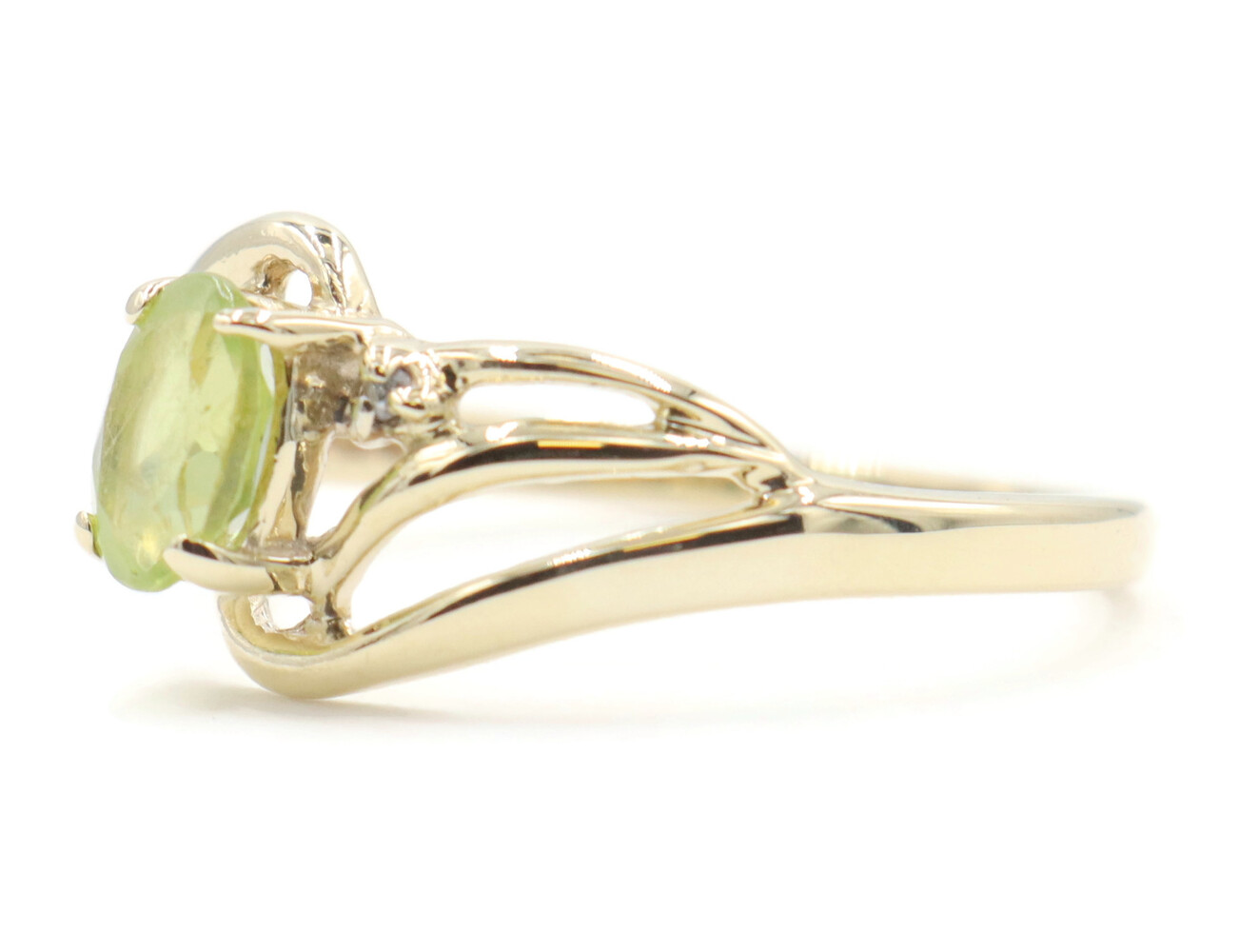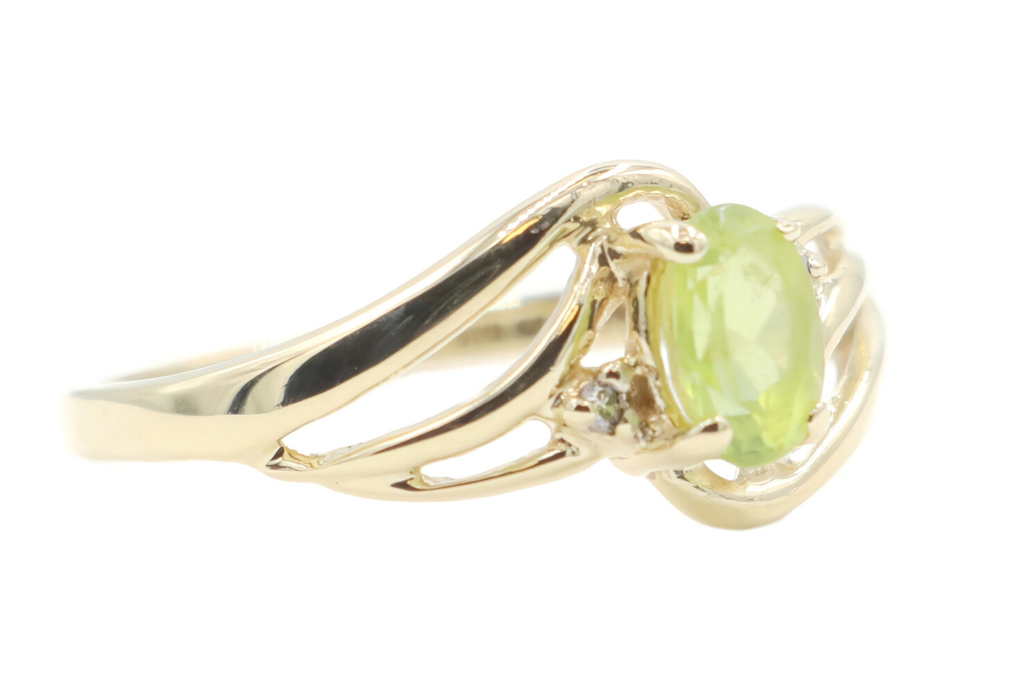 Estate 0.45 ctw Oval Cut Peridot and Round Diamond Accent 10KT Yellow Gold Ring | USA Pawn