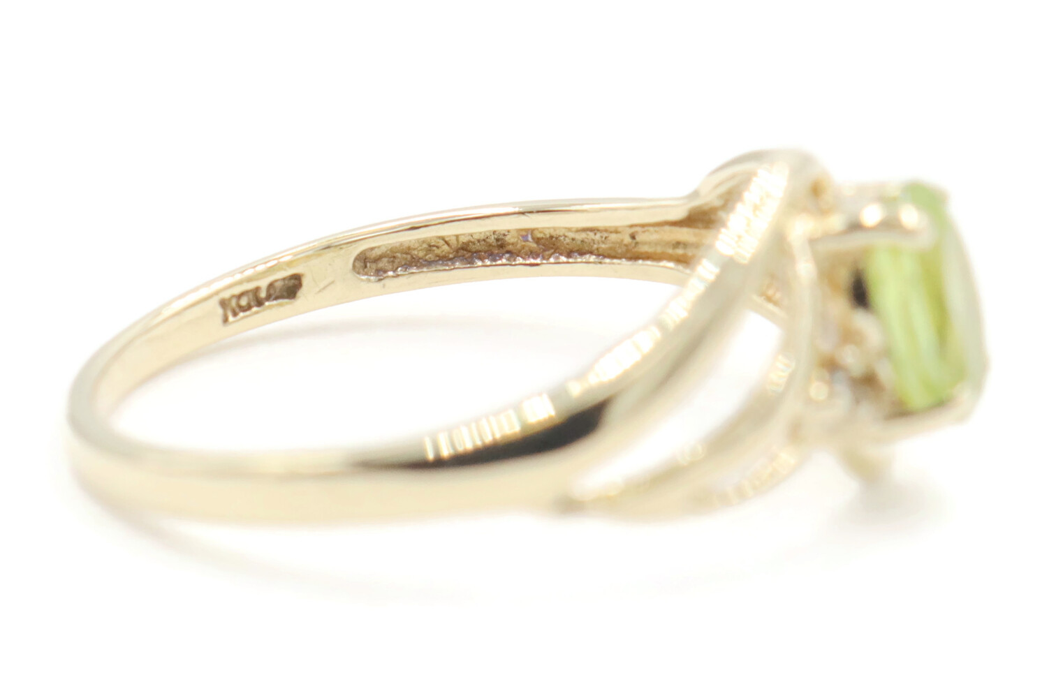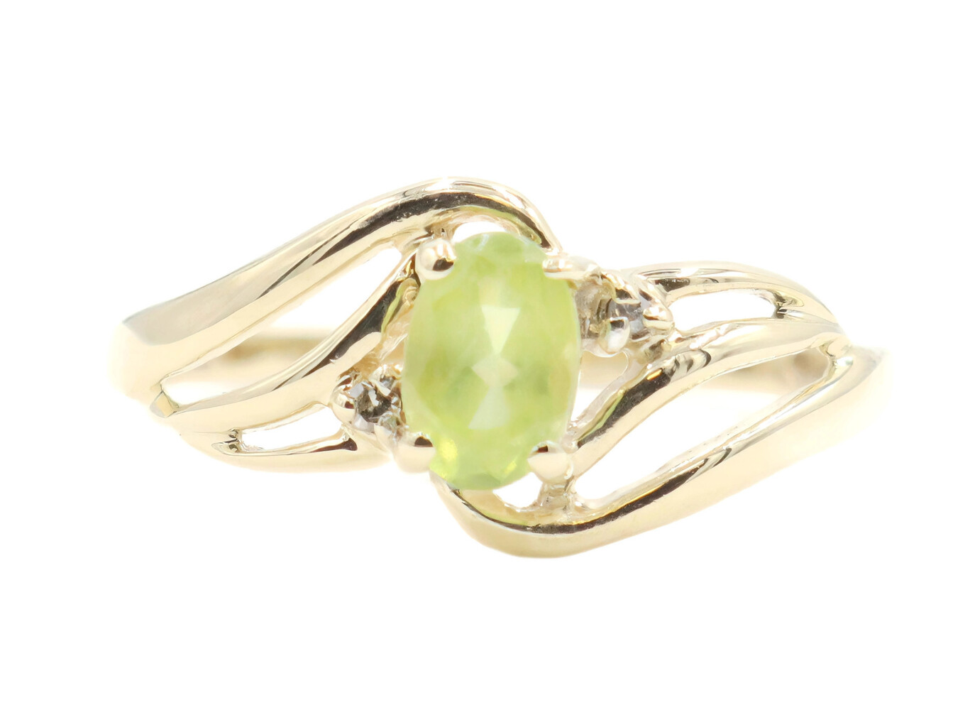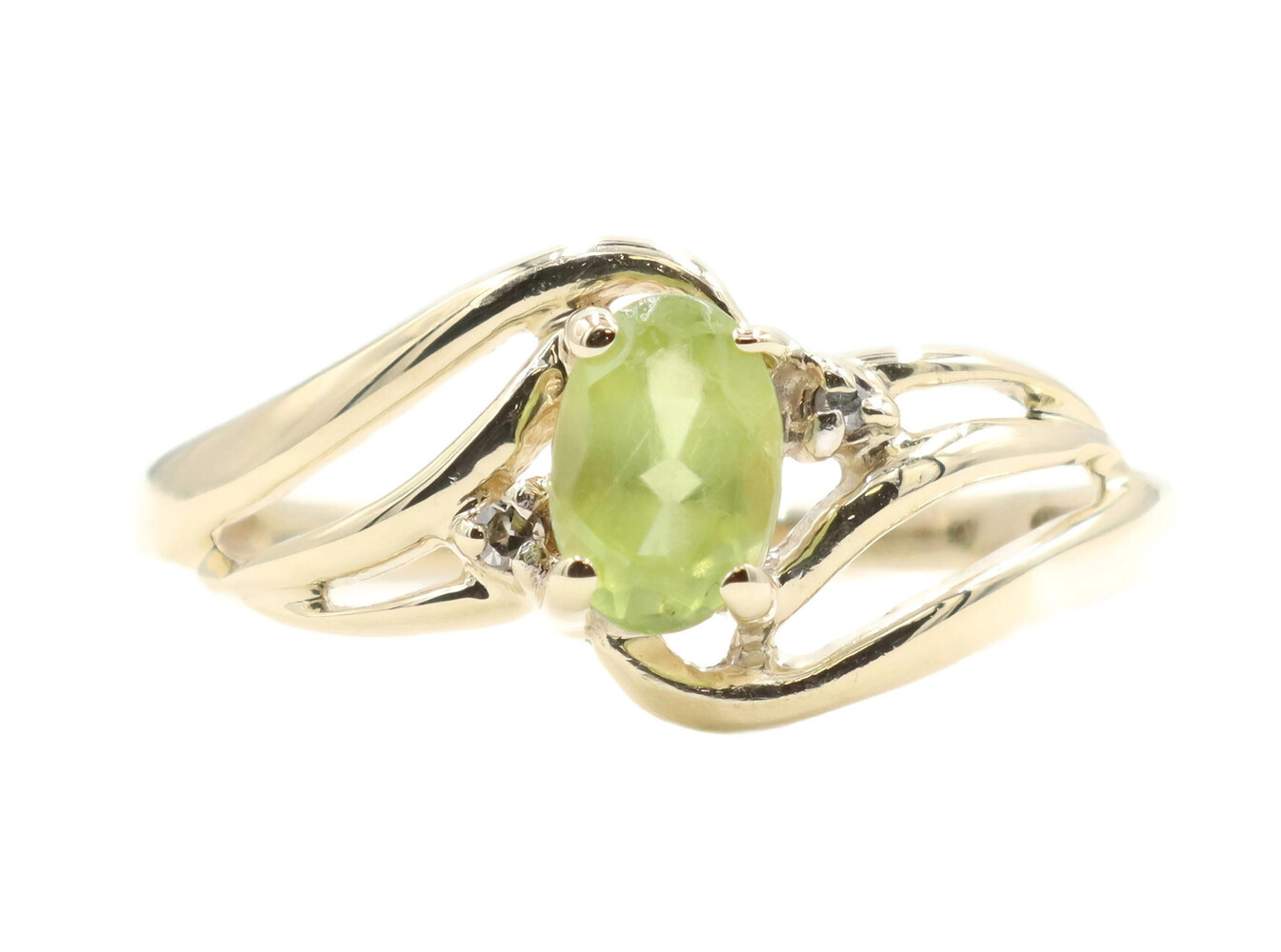 Estate 0.45 ctw Oval Cut Peridot and Round Diamond Accent 10KT Yellow Gold Ring | USA Pawn