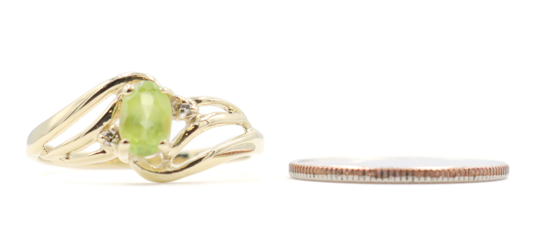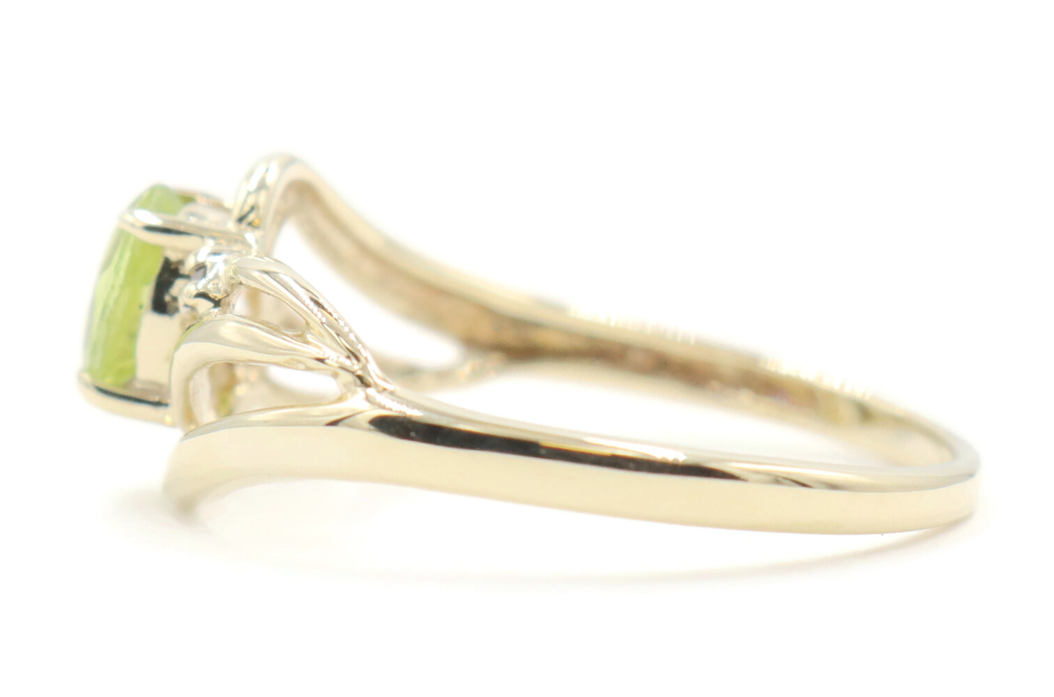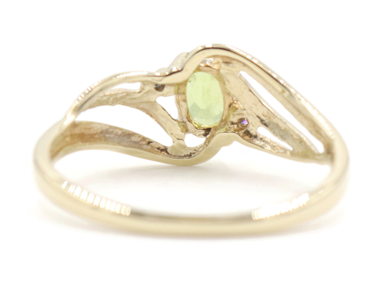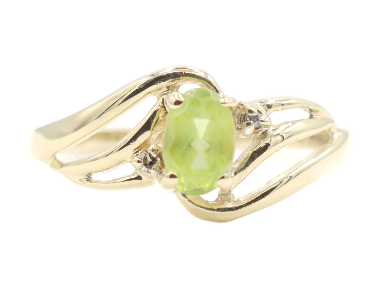 Estate 0.45 ctw Oval Cut Peridot and Round Diamond Accent 10KT Yellow Gold Ring. This ring is a size 7 1/4.