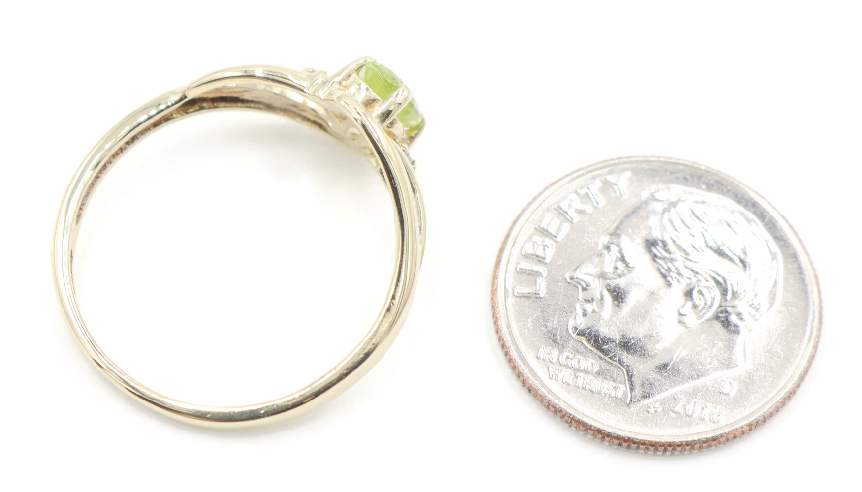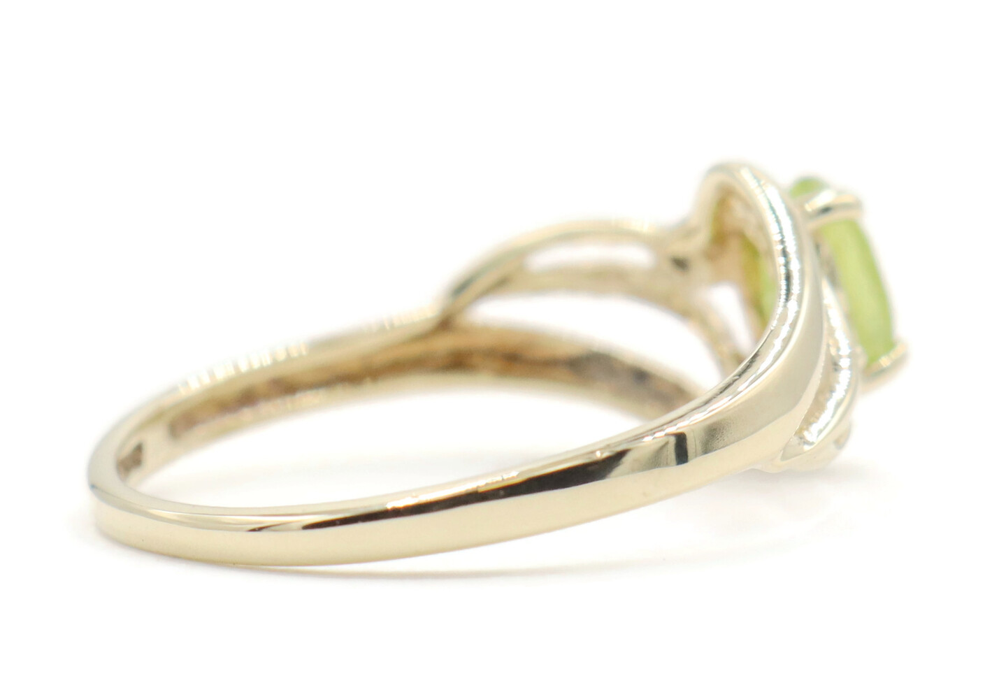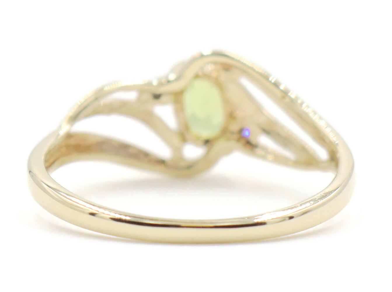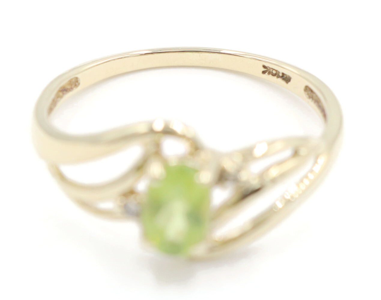 Estate 0.45 ctw Oval Cut Peridot and Round Diamond Accent 10KT Yellow Gold Ring. This ring is a size 7 1/4.