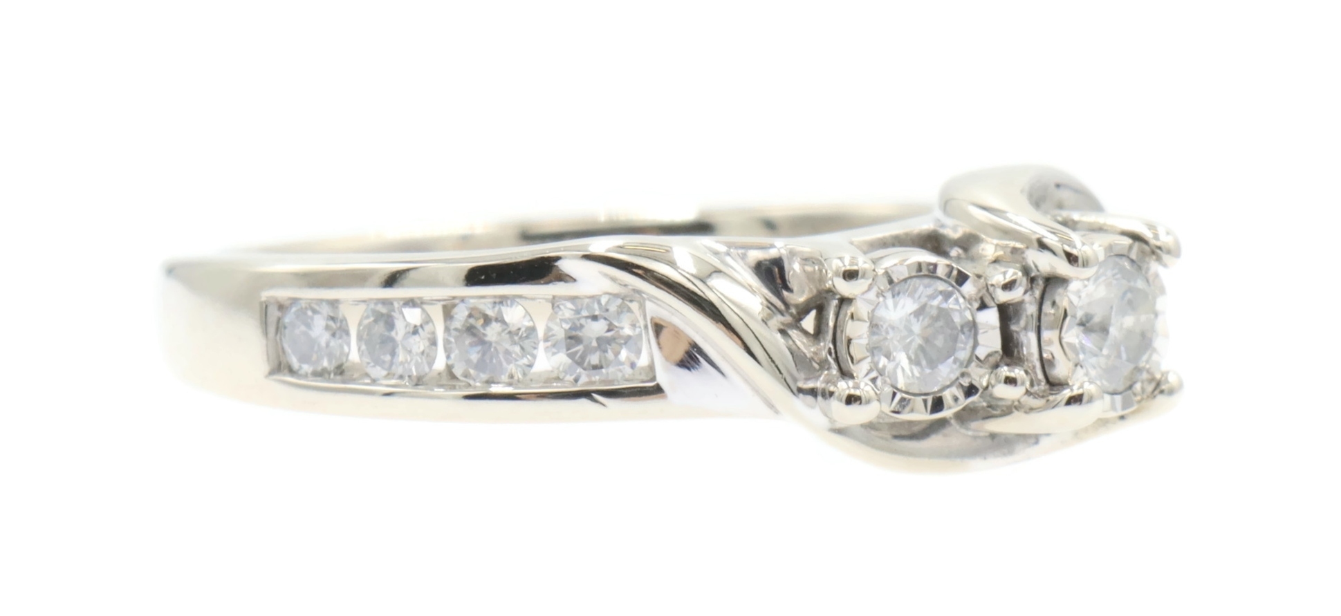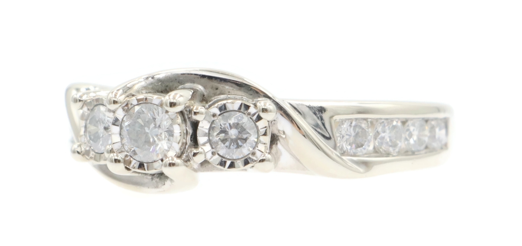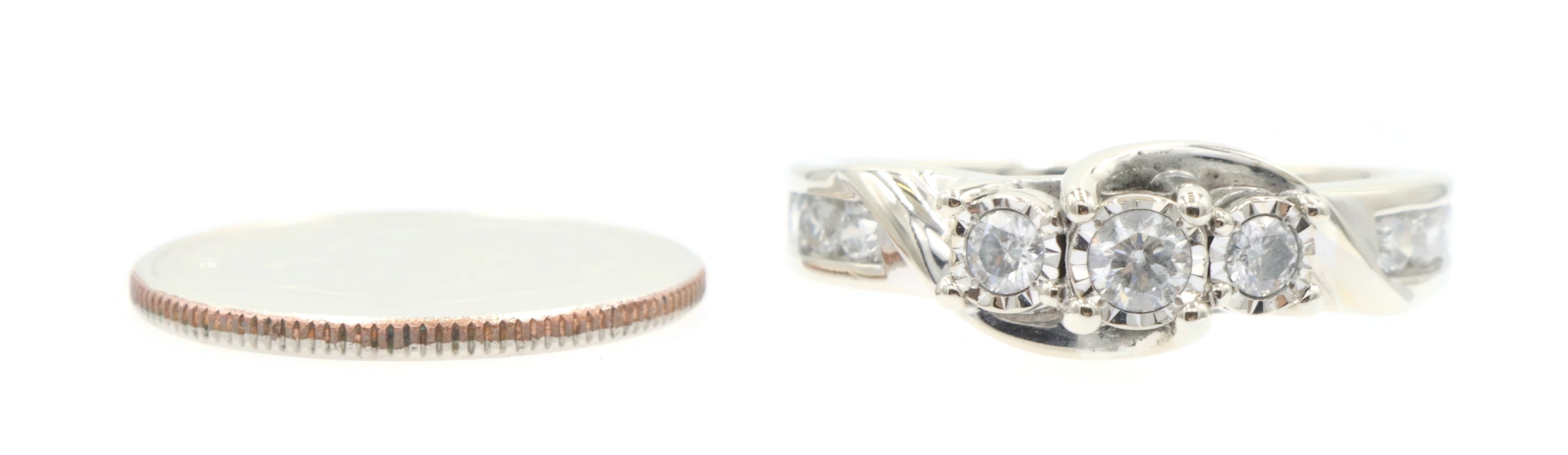 Estate 0.48 Ctw Illusion-Set Round Diamond 10KT Gold PPF Engagement Ring 4.3g. This ring is a size 7.
