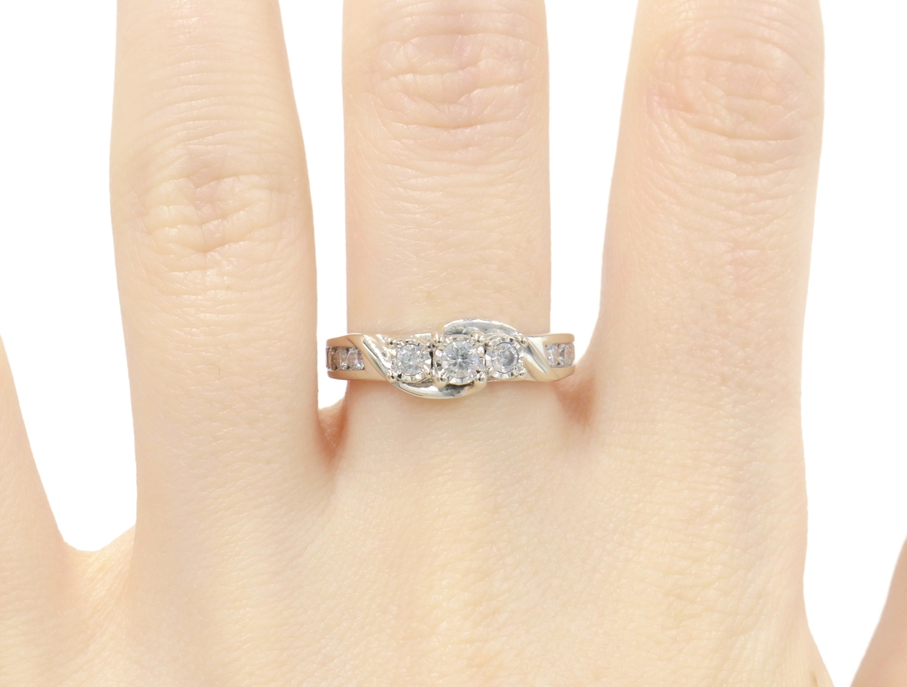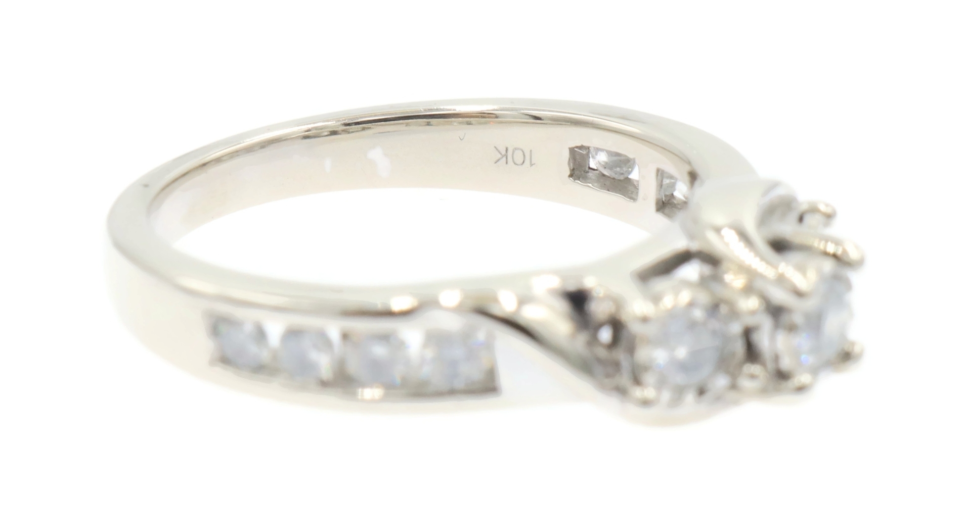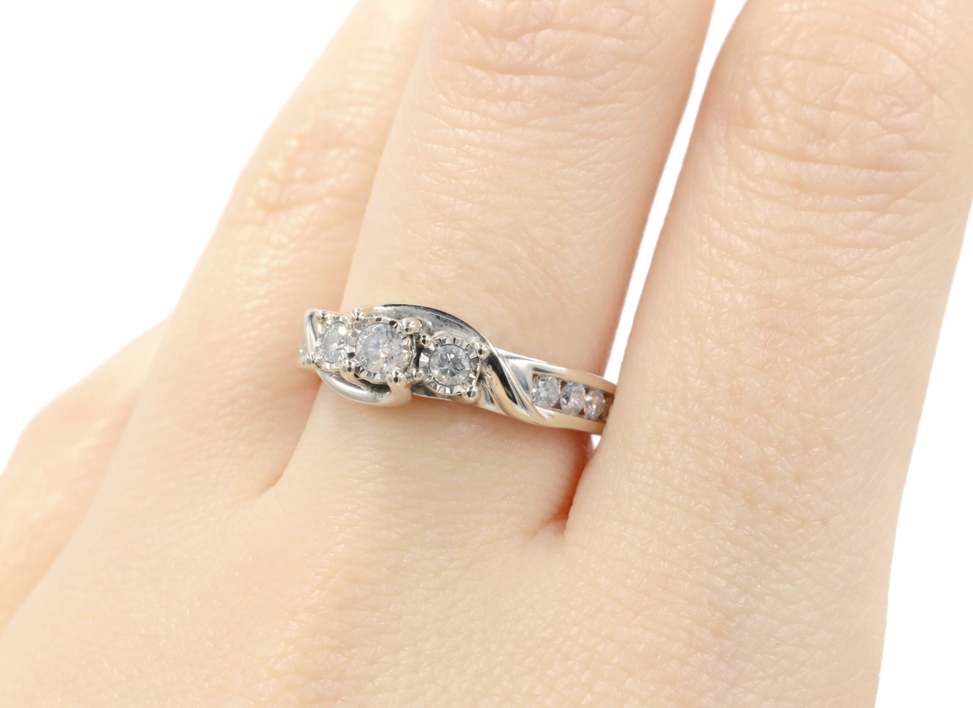 Estate 0.48 Ctw Illusion-Set Round Diamond 10KT Gold PPF Engagement Ring 4.3g. This ring is a size 7.