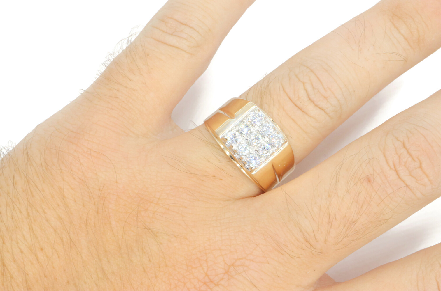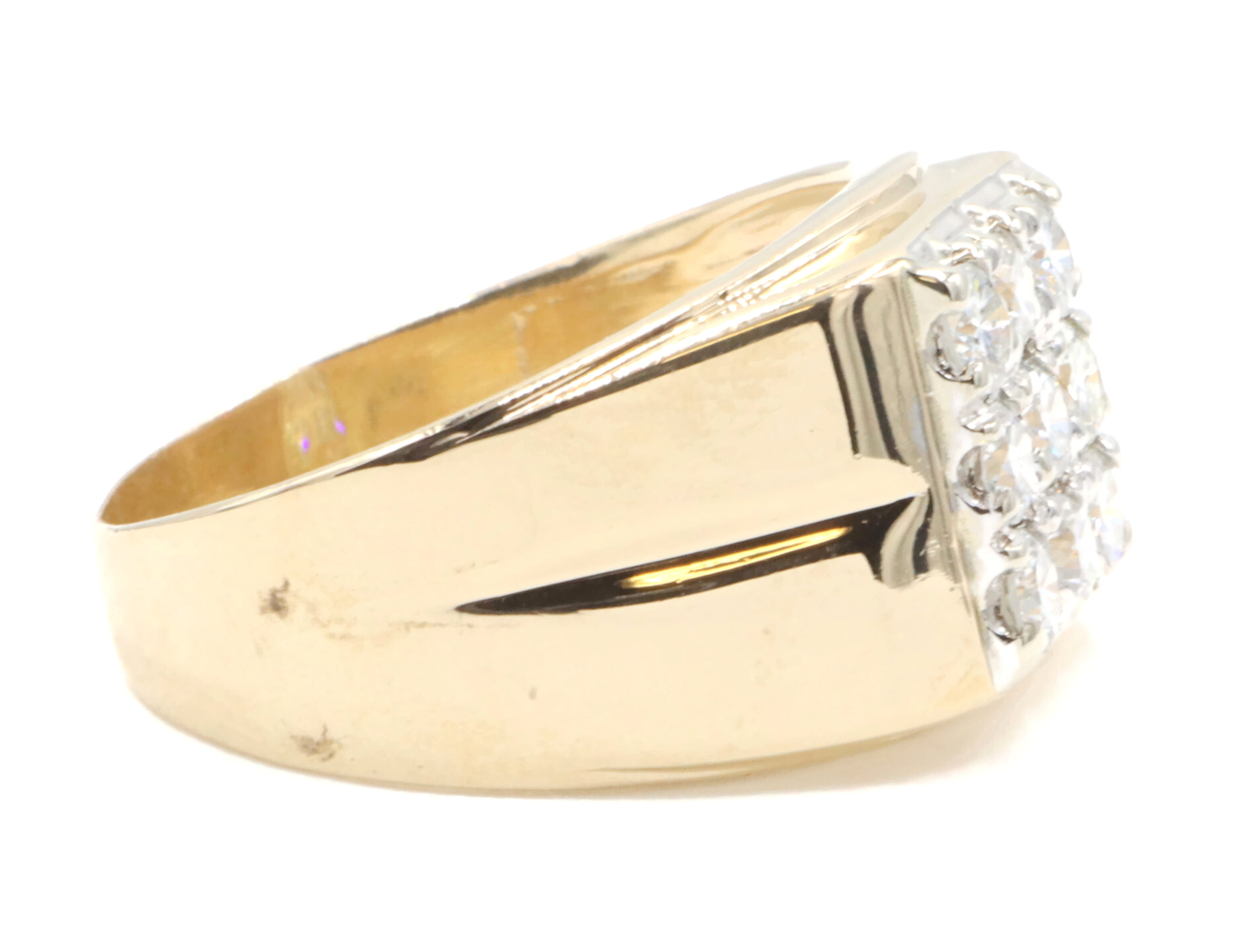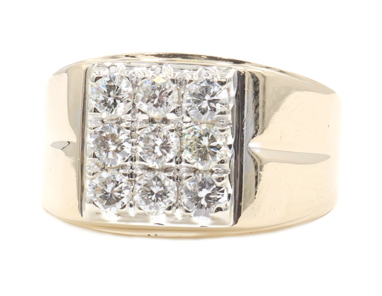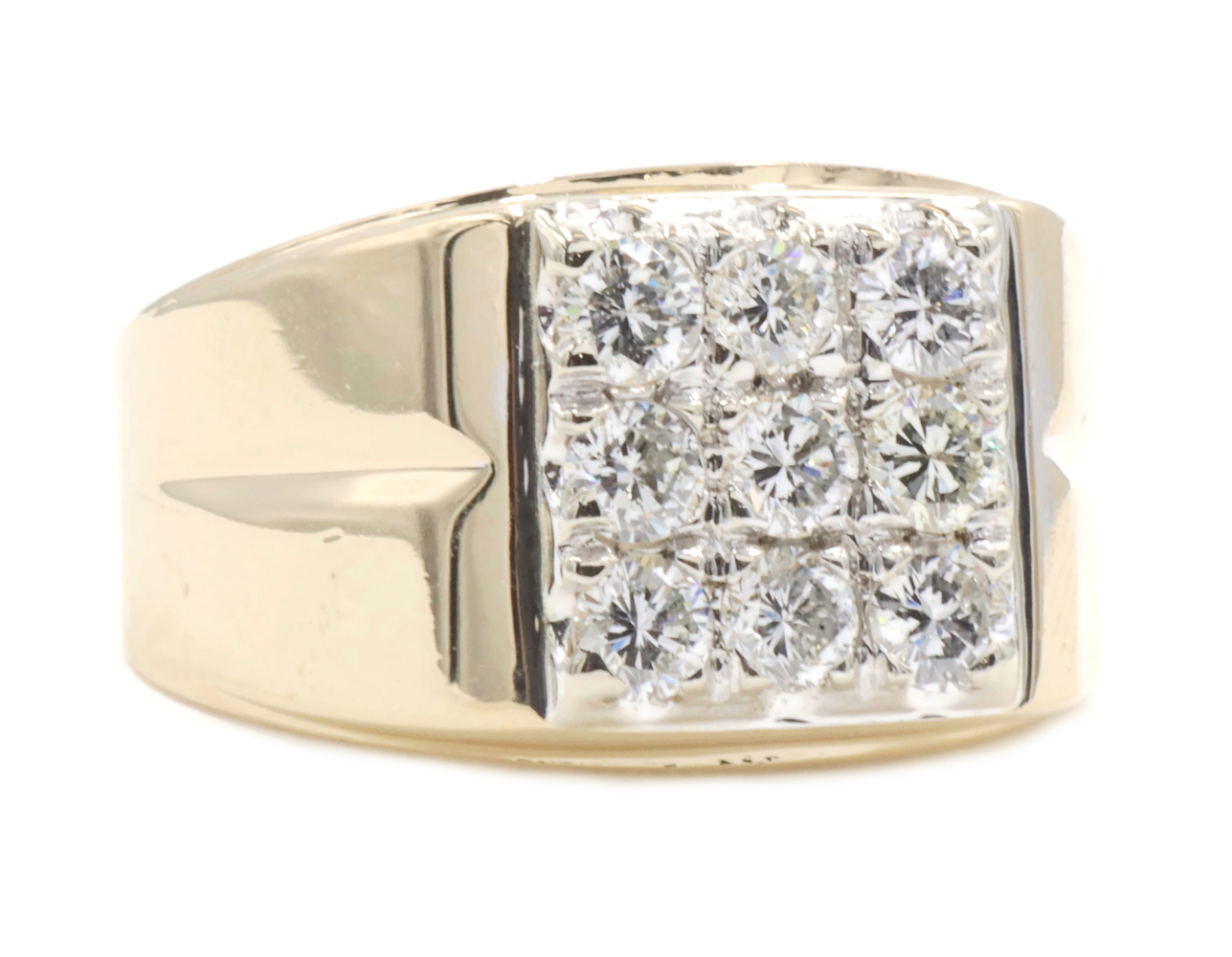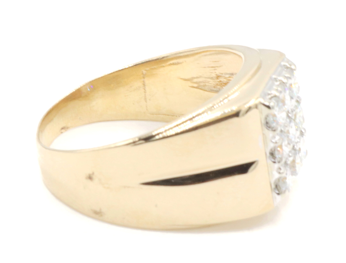 Estate 1.25 ctw Round Diamond Square Cluster 14KT Yellow Gold Signet Ring 6.0g | USA Pawn