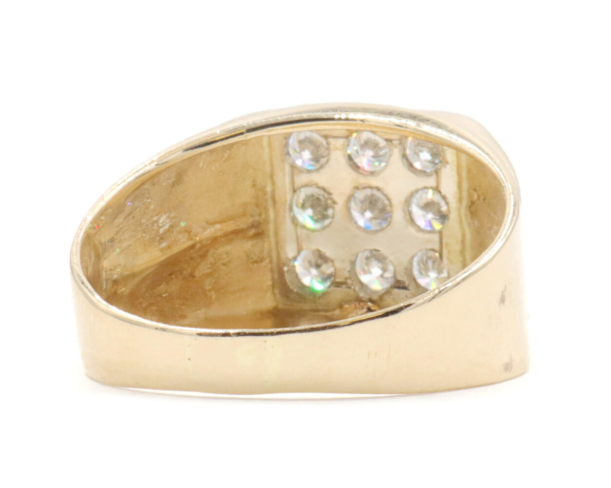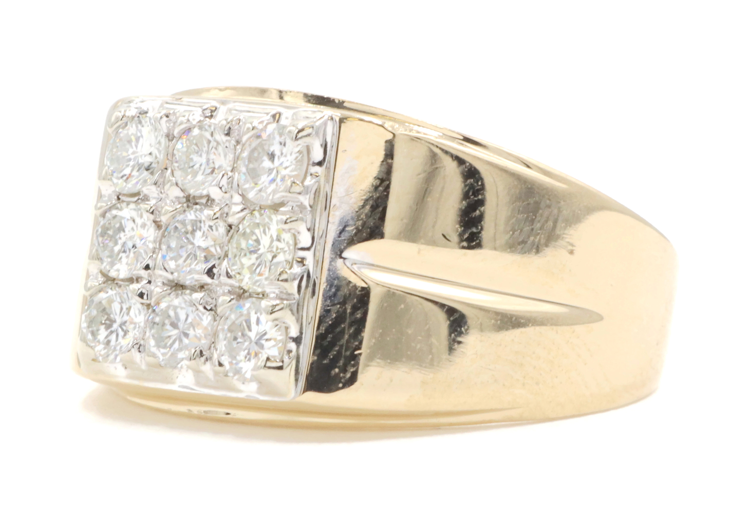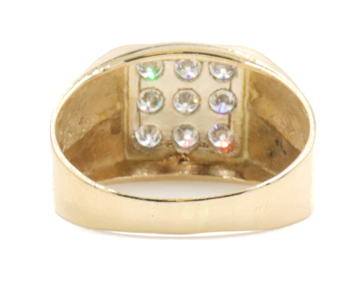 Estate 1.25 ctw Round Diamond Square Cluster 14KT Yellow Gold Signet Ring 6.0g. This ring is a size 10.5.