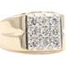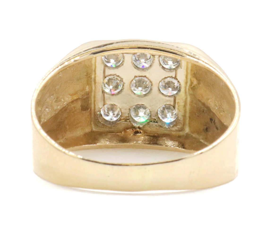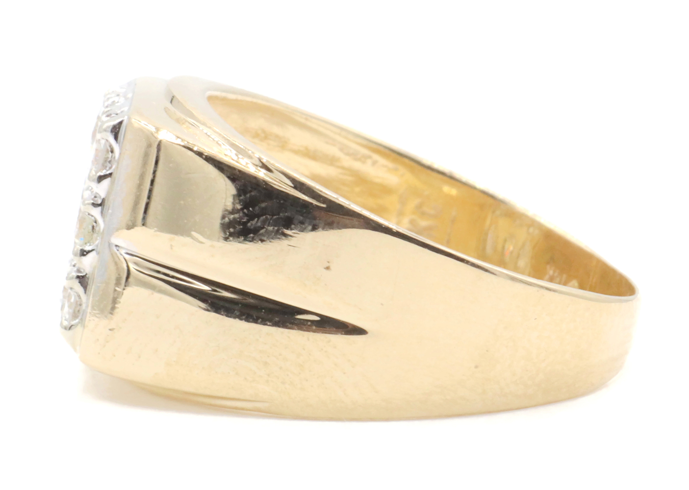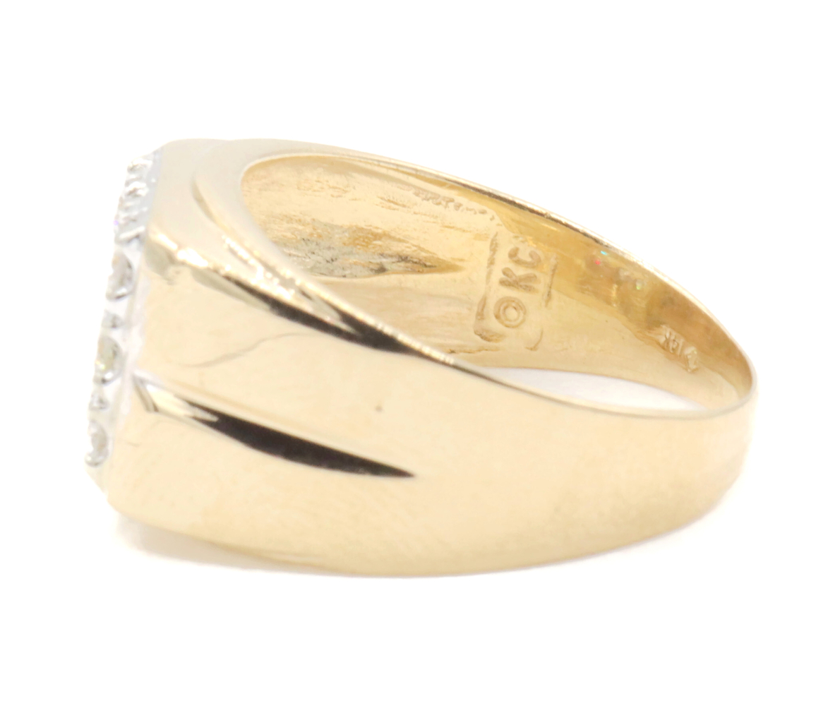 Estate 1.25 ctw Round Diamond Square Cluster 14KT Yellow Gold Signet Ring 6.0g. This ring is a size 10.5.