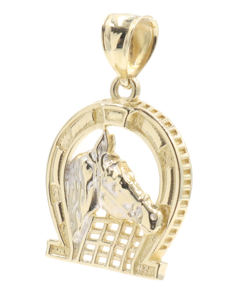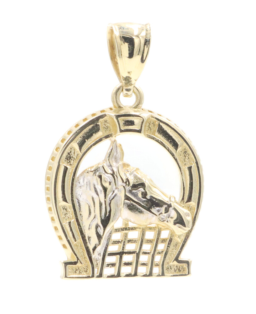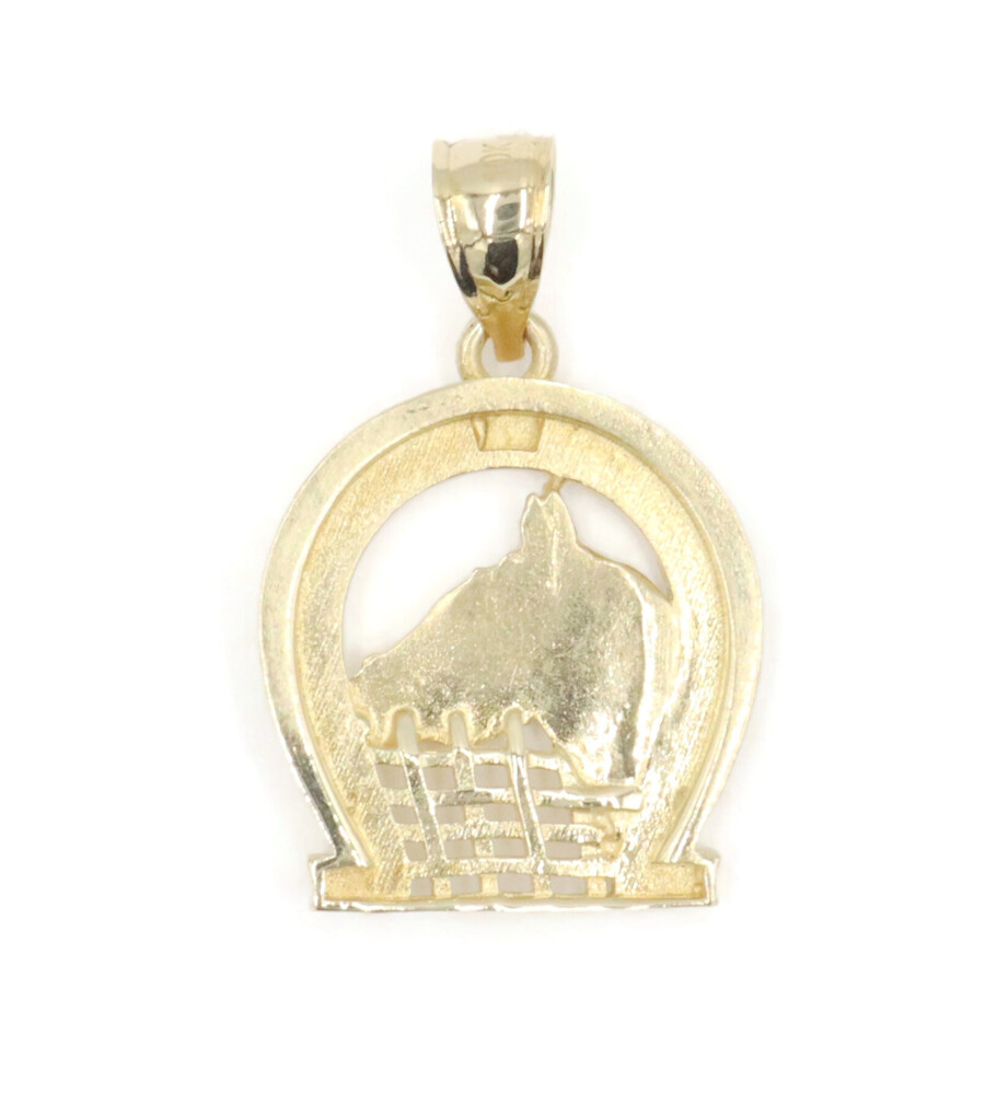 Estate 10KT Yellow Gold Horseshoe Pendant with Horse Face Detailed 28.5mm 3.3g | USA Pawn