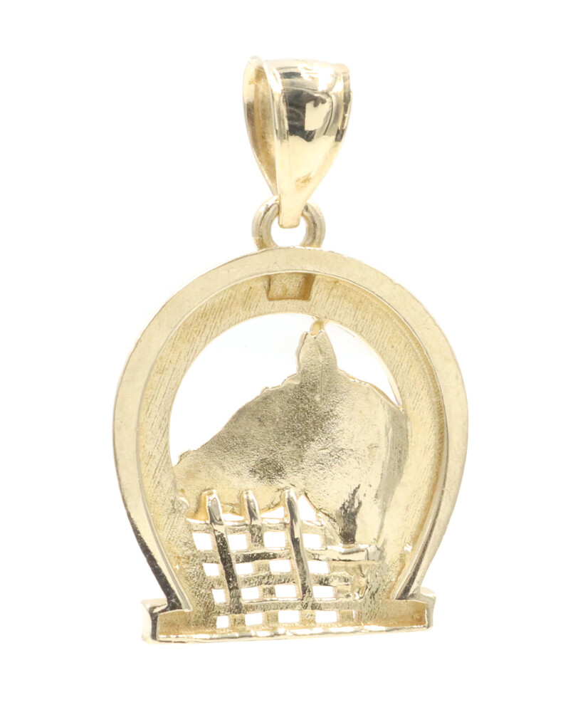 Estate 10KT Yellow Gold Horseshoe Pendant with Horse Face Detailed 28.5mm 3.3g