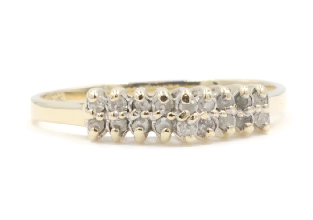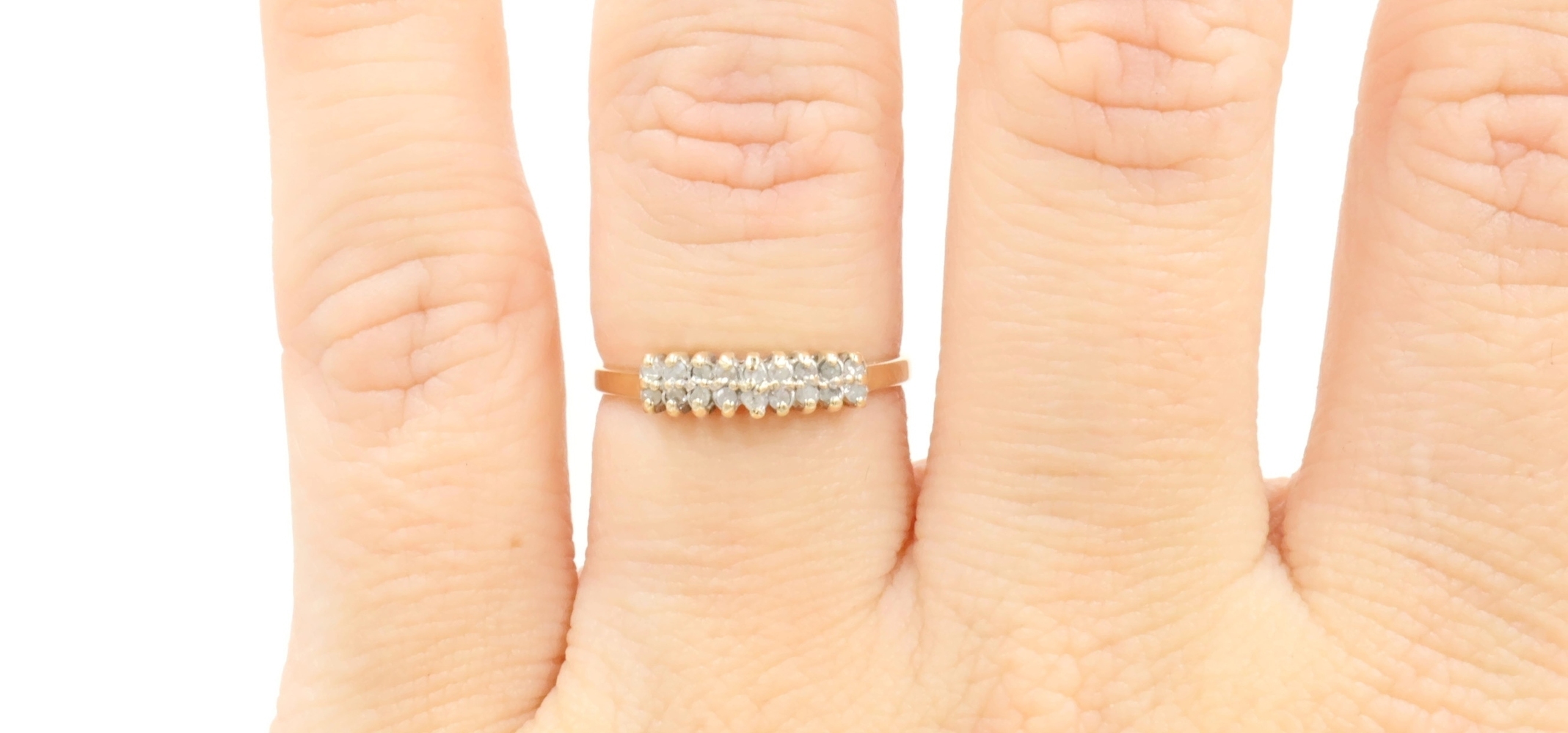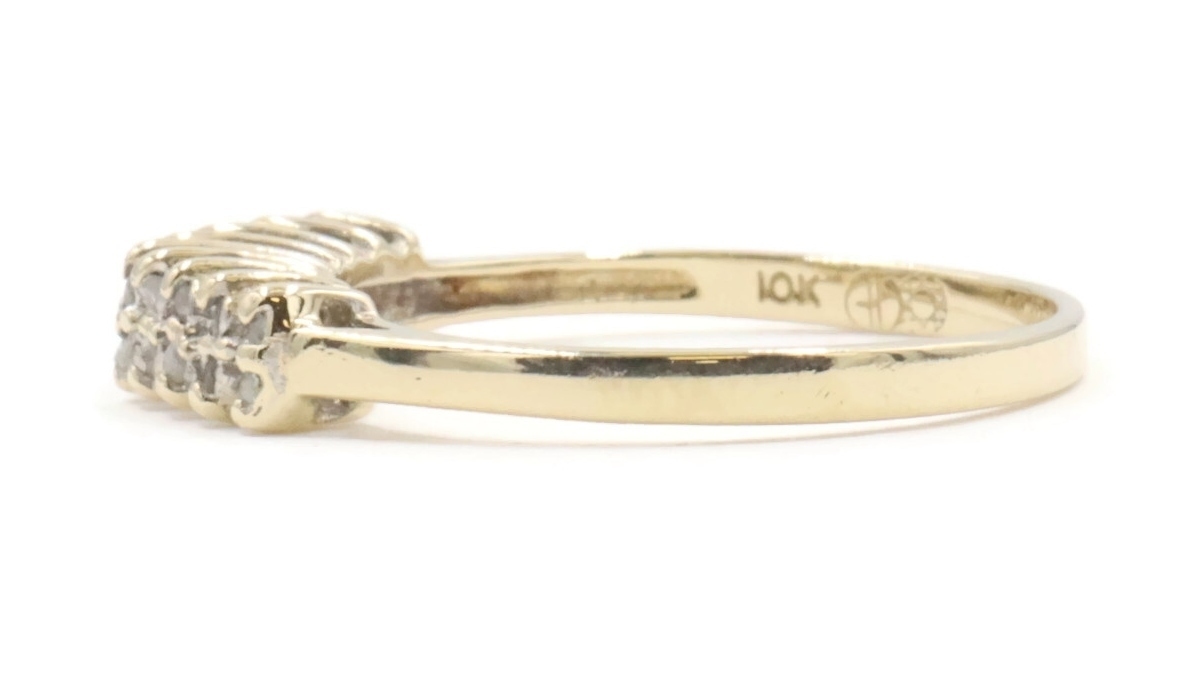 Estate 10KT Yellow Gold Two Row 0.18 ctw Round Diamond Women's Anniversary Ring | USA Pawn