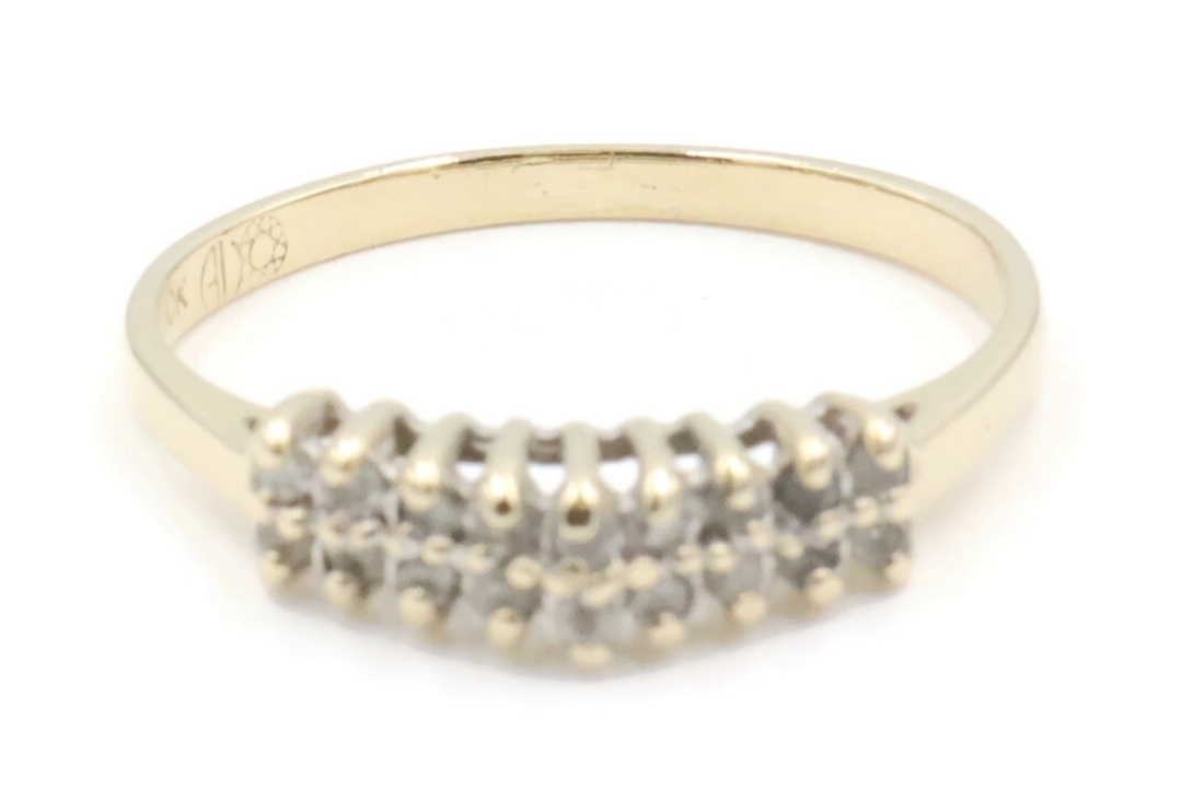 Estate 10KT Yellow Gold Two Row 0.18 ctw Round Diamond Women's Anniversary Ring. This ring is a size 6.