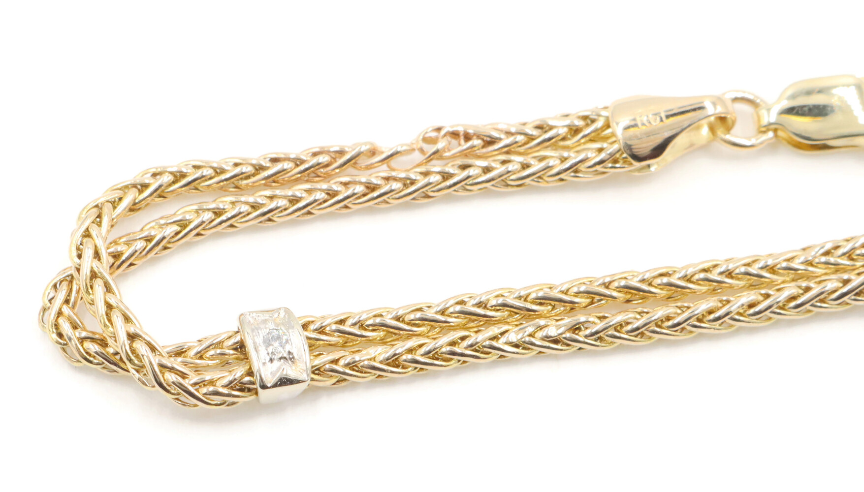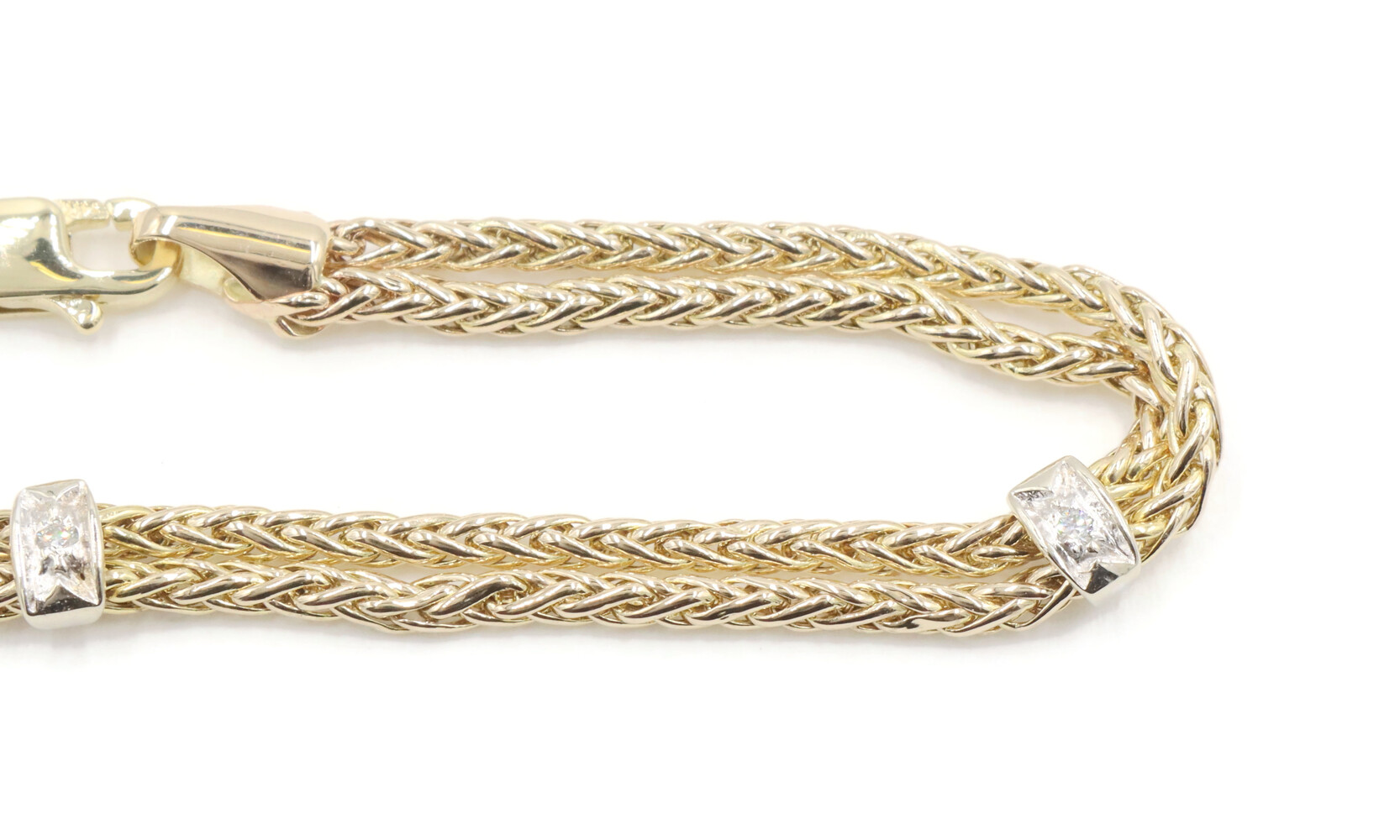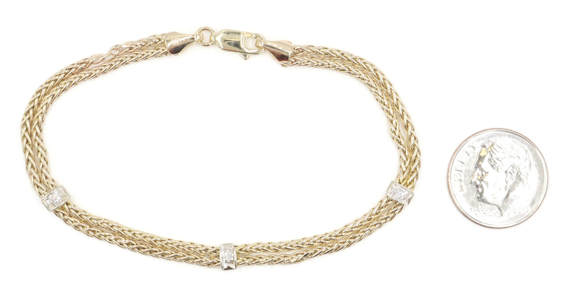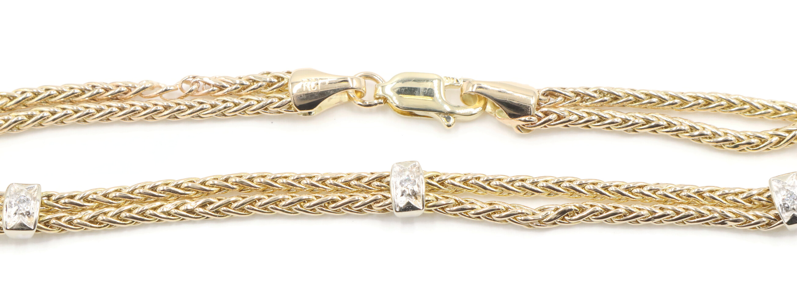 Estate 14KT Yellow and White Gold 0.05 ctw Round Diamond 7" Station Bracelet | USA Pawn
