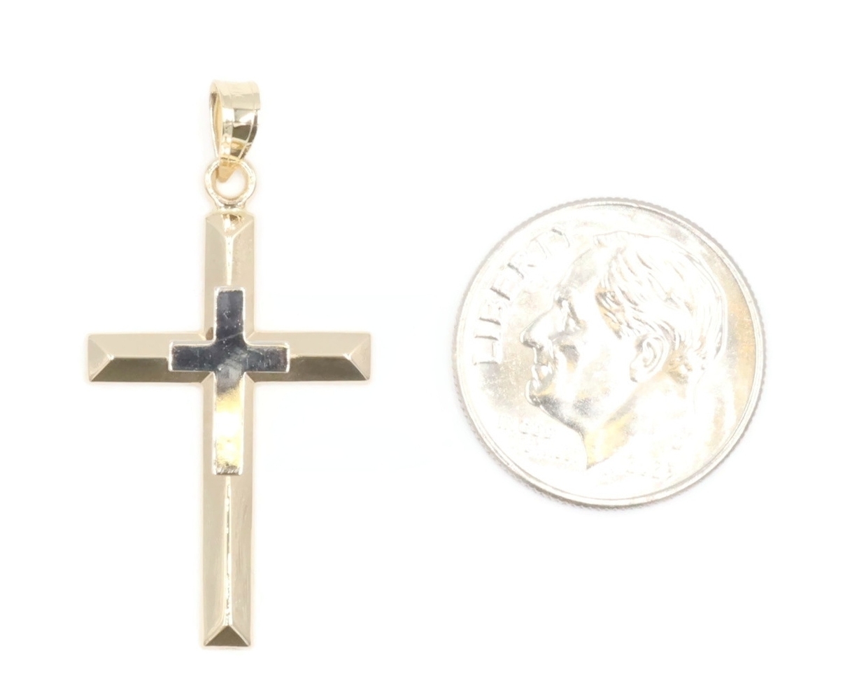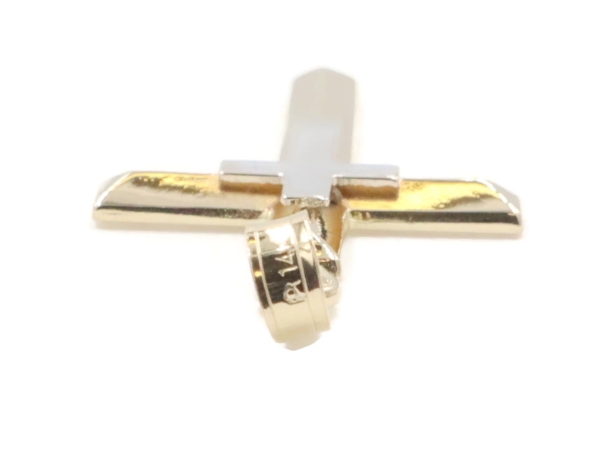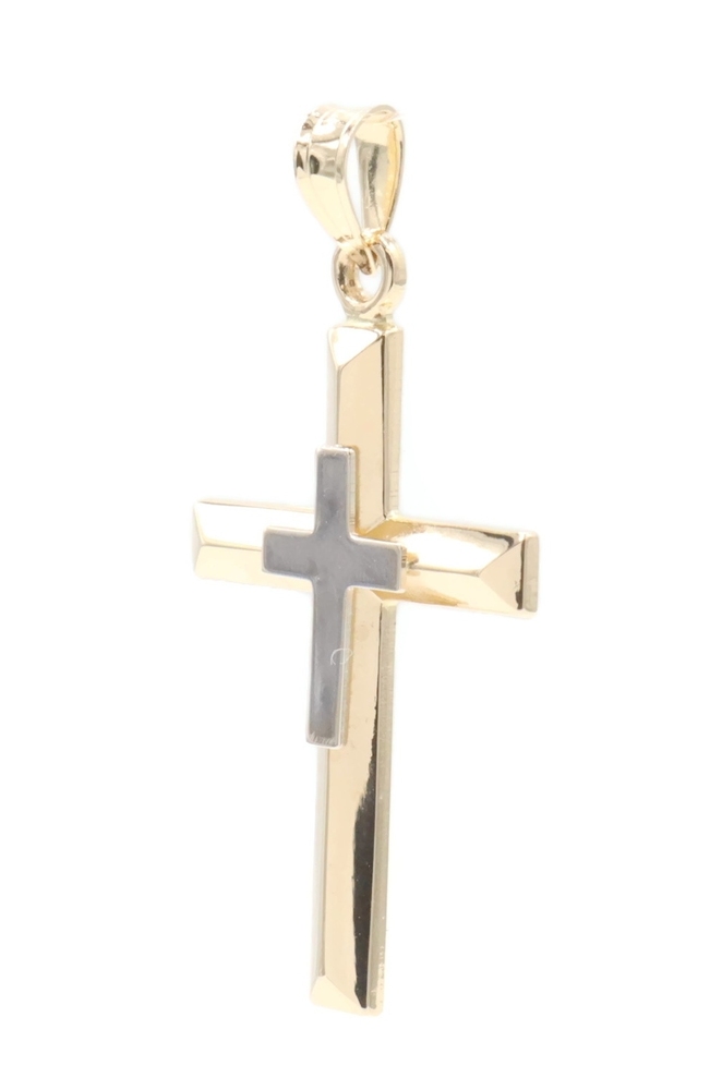 Estate 14KT Yellow and White Gold Two Tone 1.2" Double Cross Necklace Pendant | USA Pawn