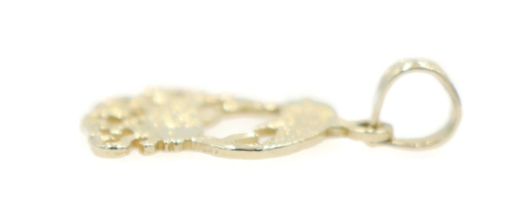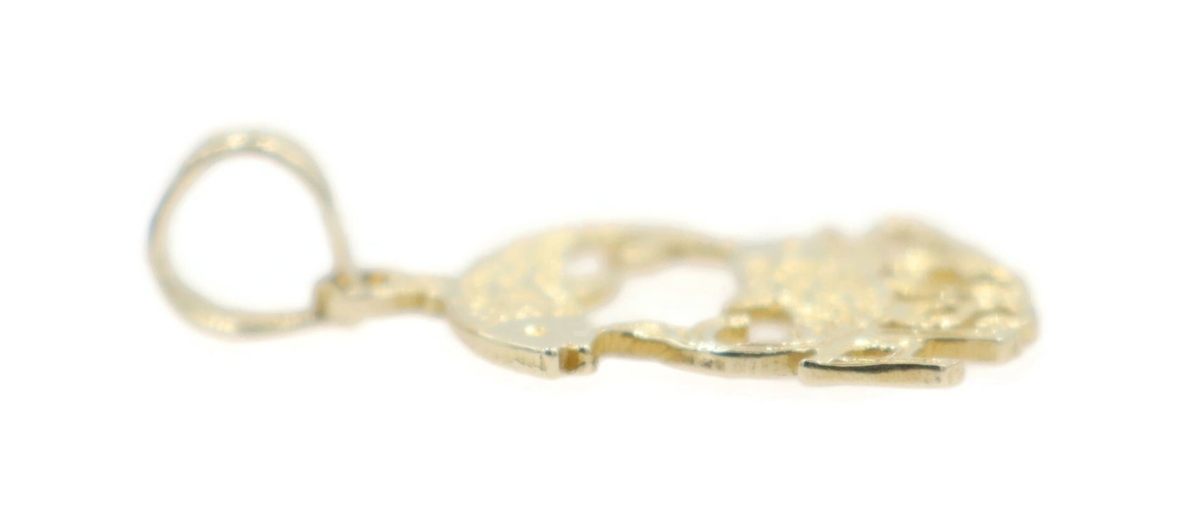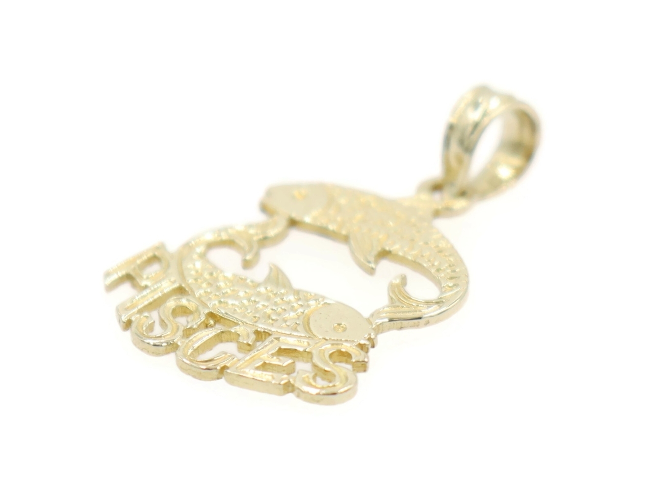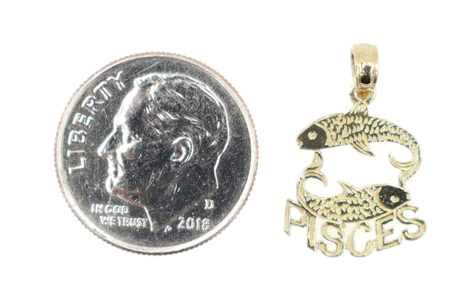 Estate 14KT Yellow Gold 19.6mm Classic Pisces Zodiac Swimming Fish Pendant 0.74g. This pendant is approximately 19.6mm in length (including the bail) and 12.6mm in width.