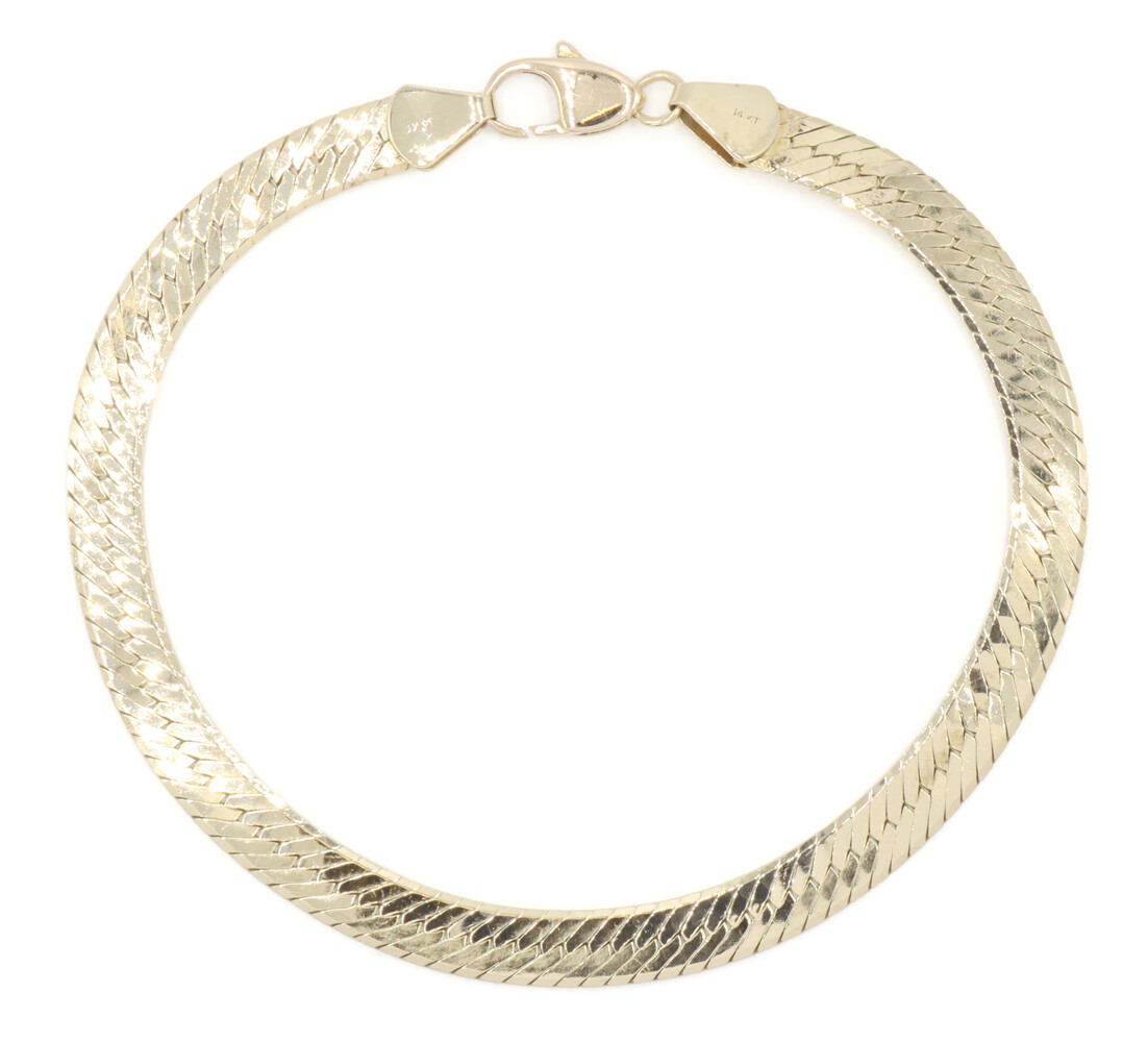 Estate 14KT Yellow Gold 5.9mm Wide 8 3/4" Classic Herringbone Bracelet - 11.49g | USA Pawn