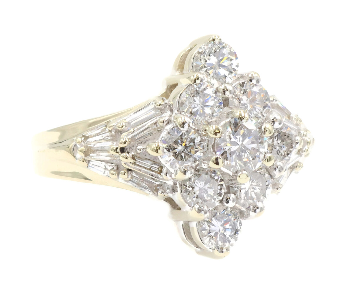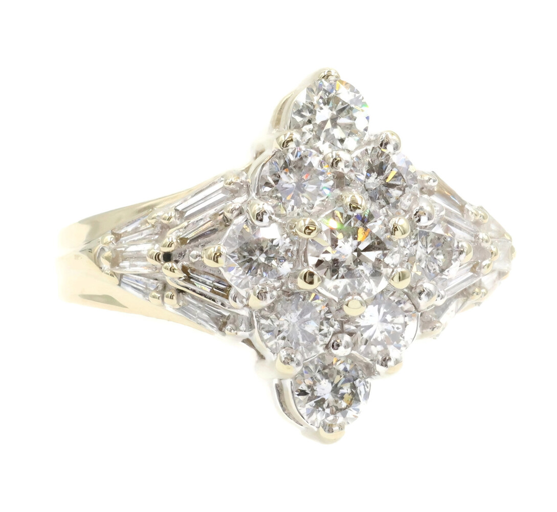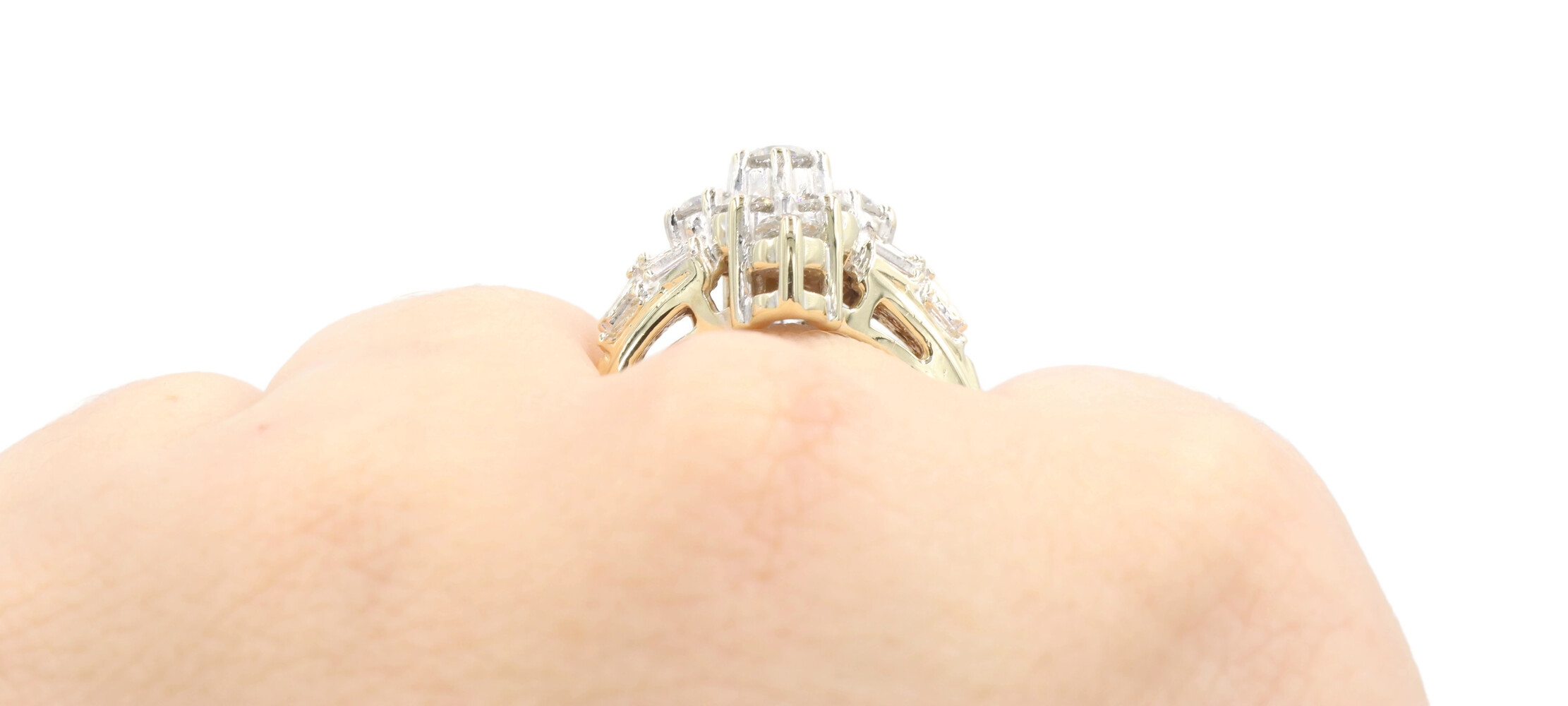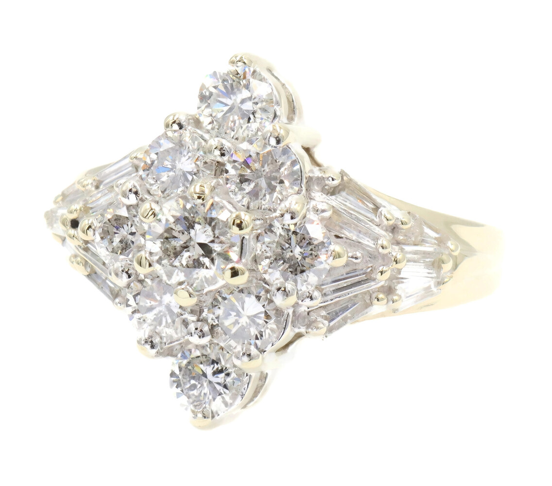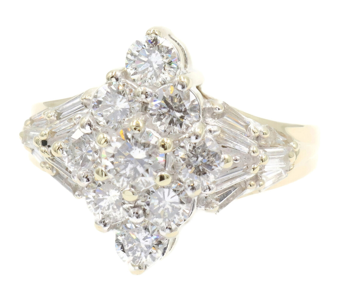 Estate 2.40 ctw Round and Baguette Cut Diamond Marquise Cluster 14KT Gold Ring | USA Pawn