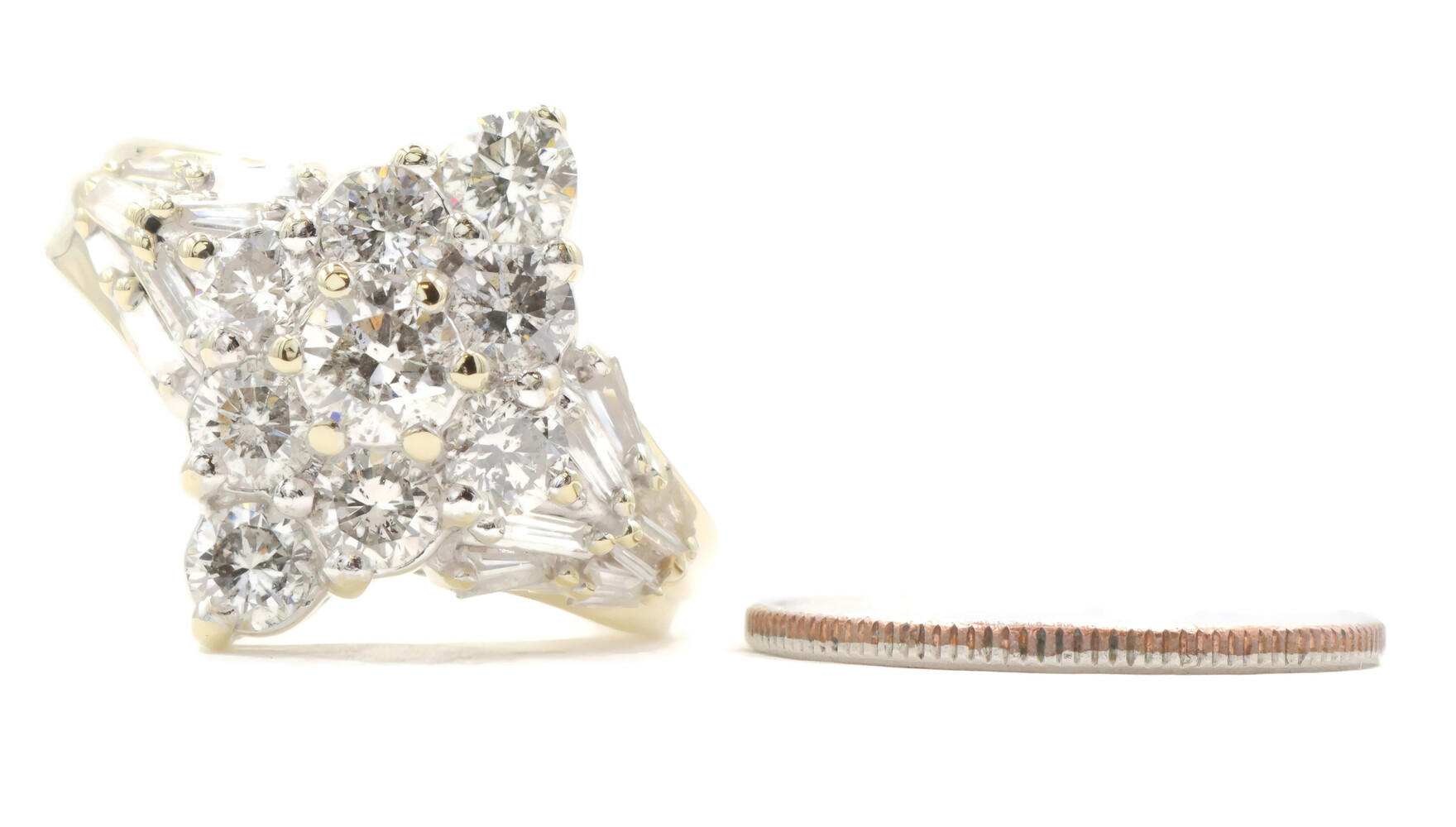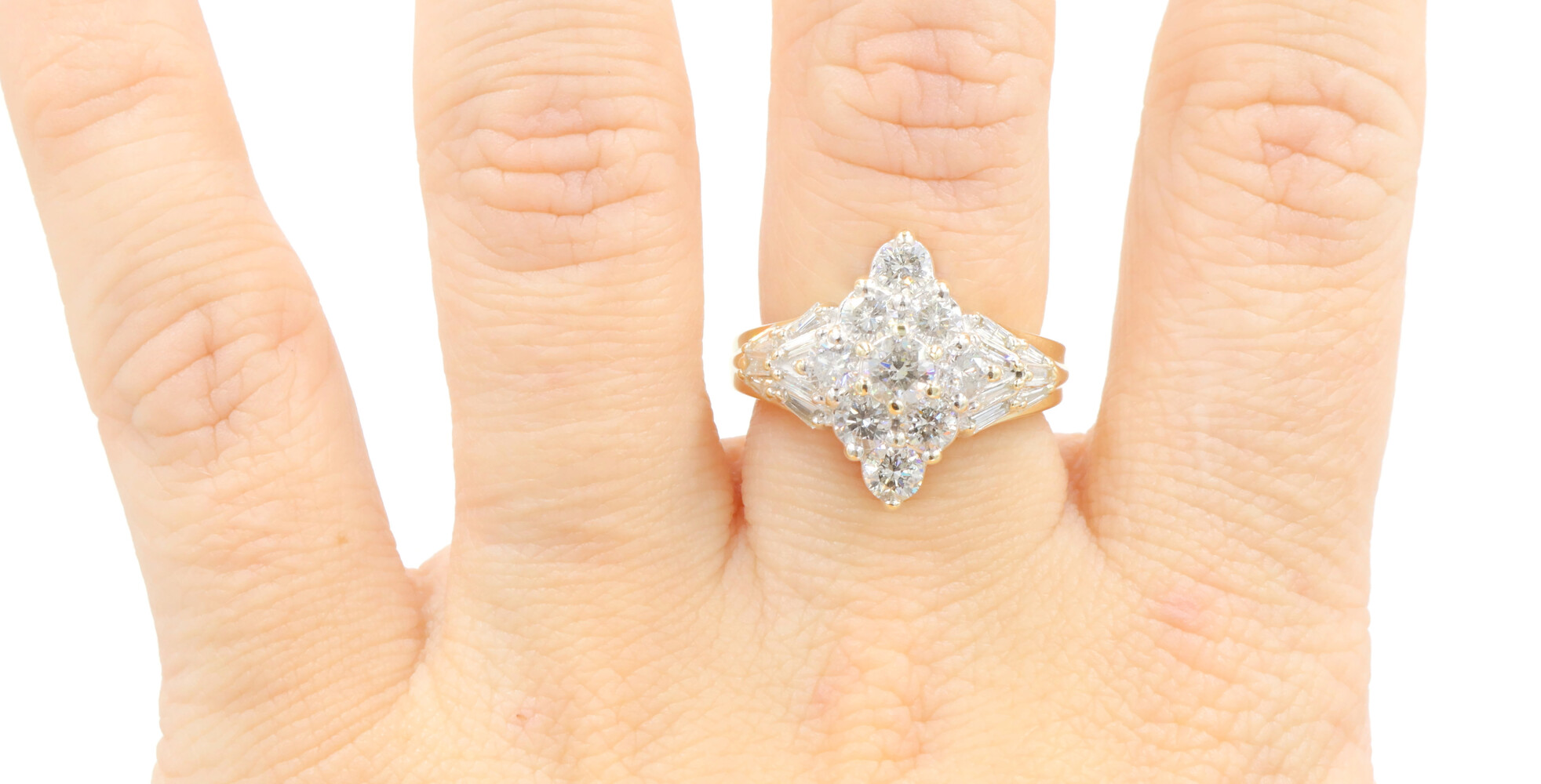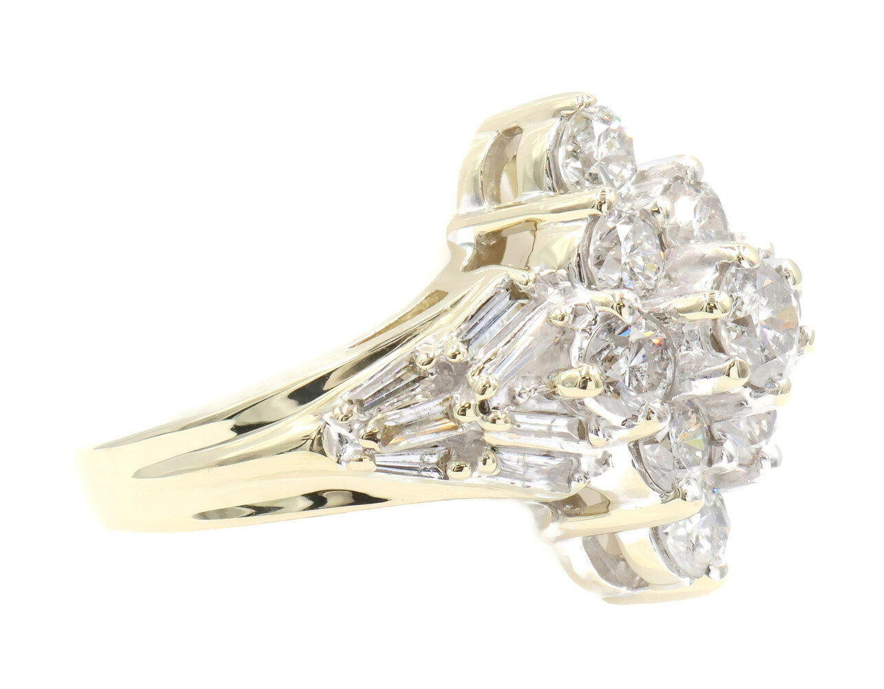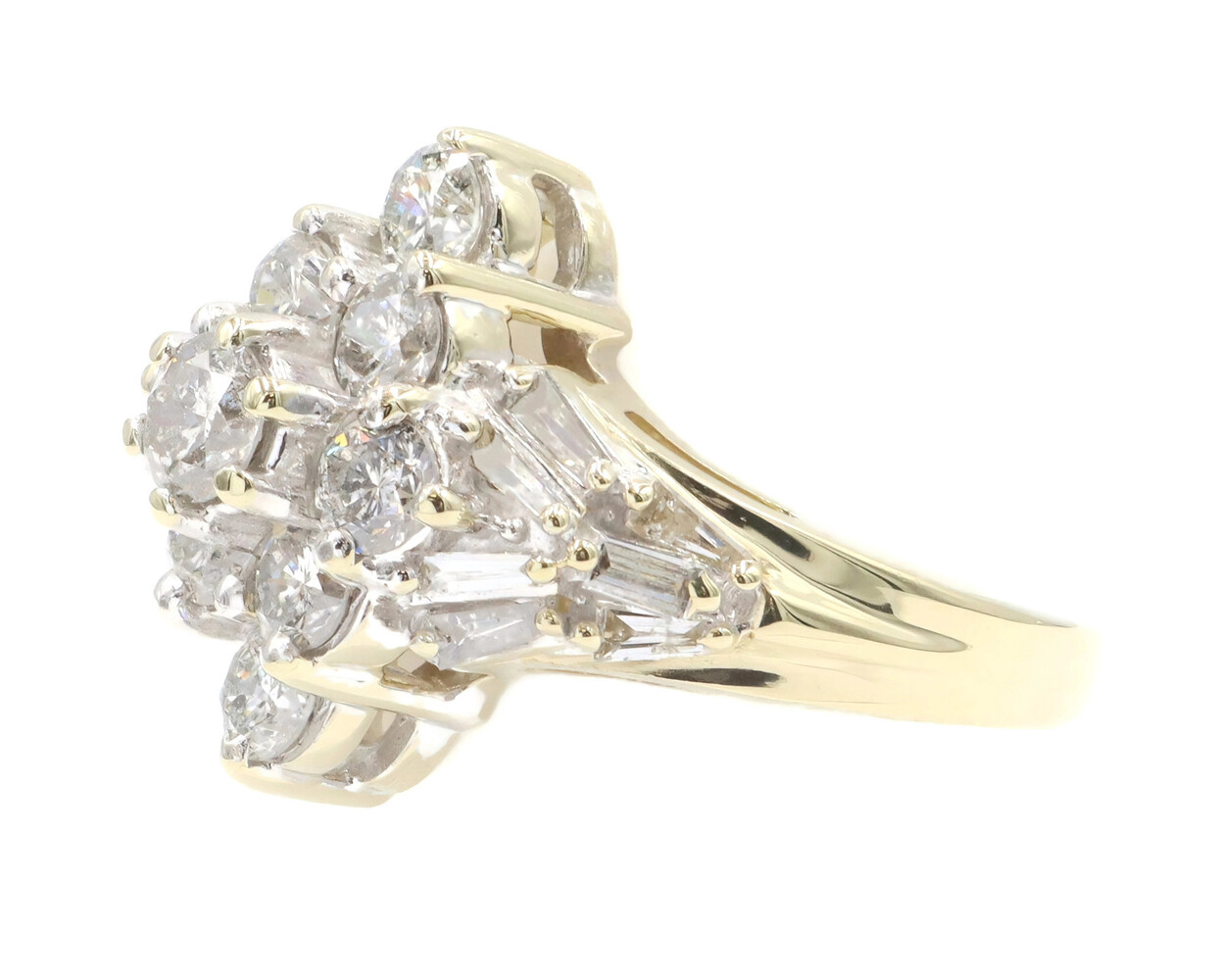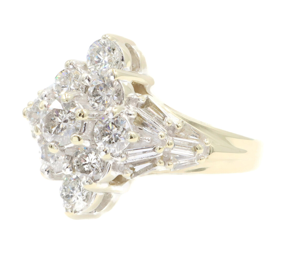 Estate 2.40 ctw Round and Baguette Cut Diamond Marquise Cluster 14KT Gold Ring | USA Pawn