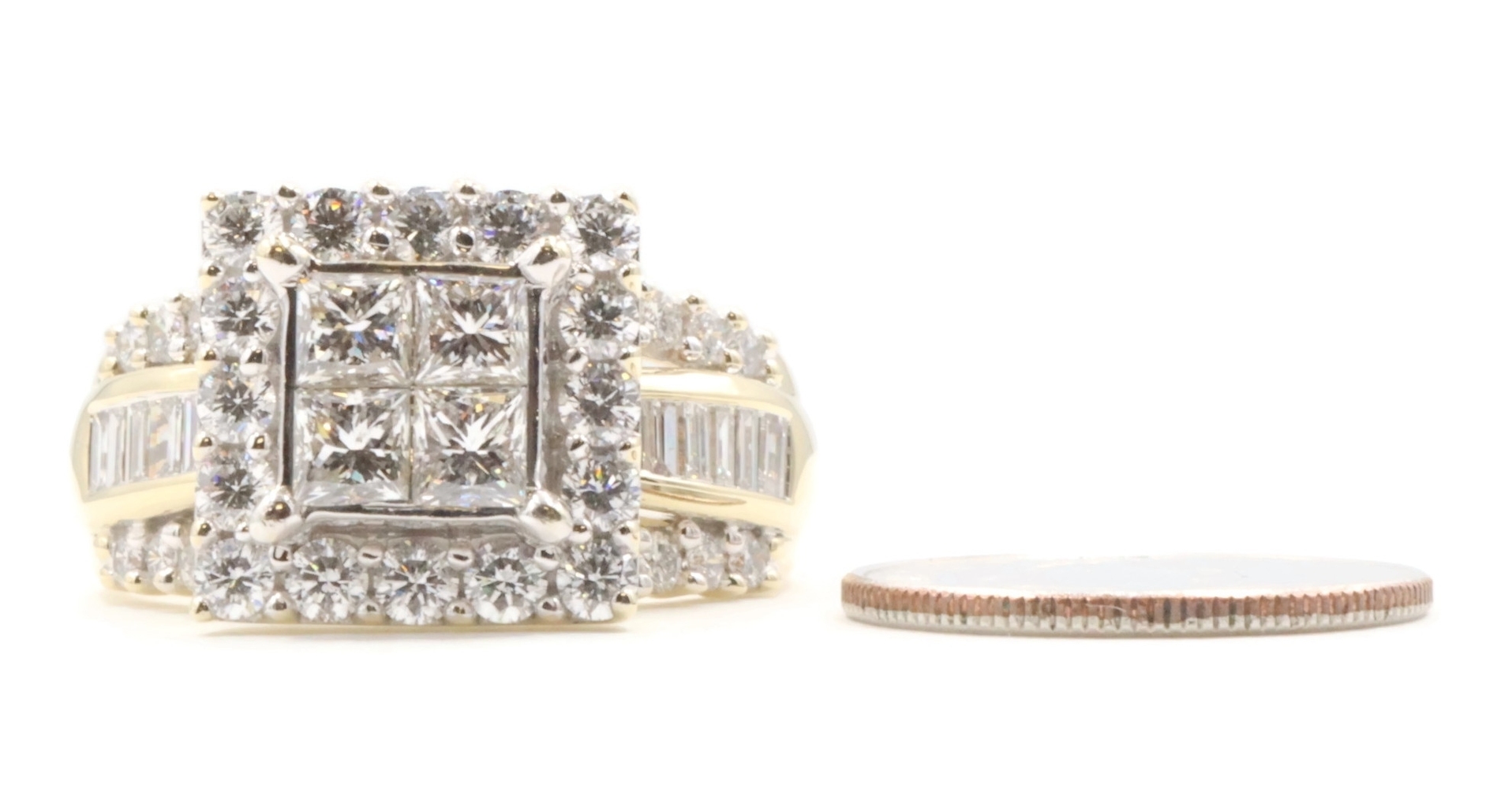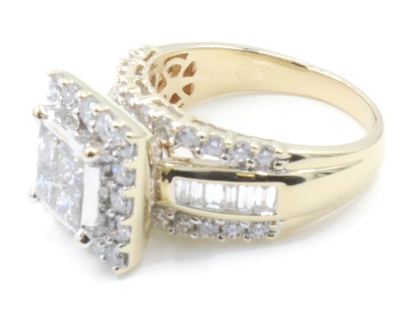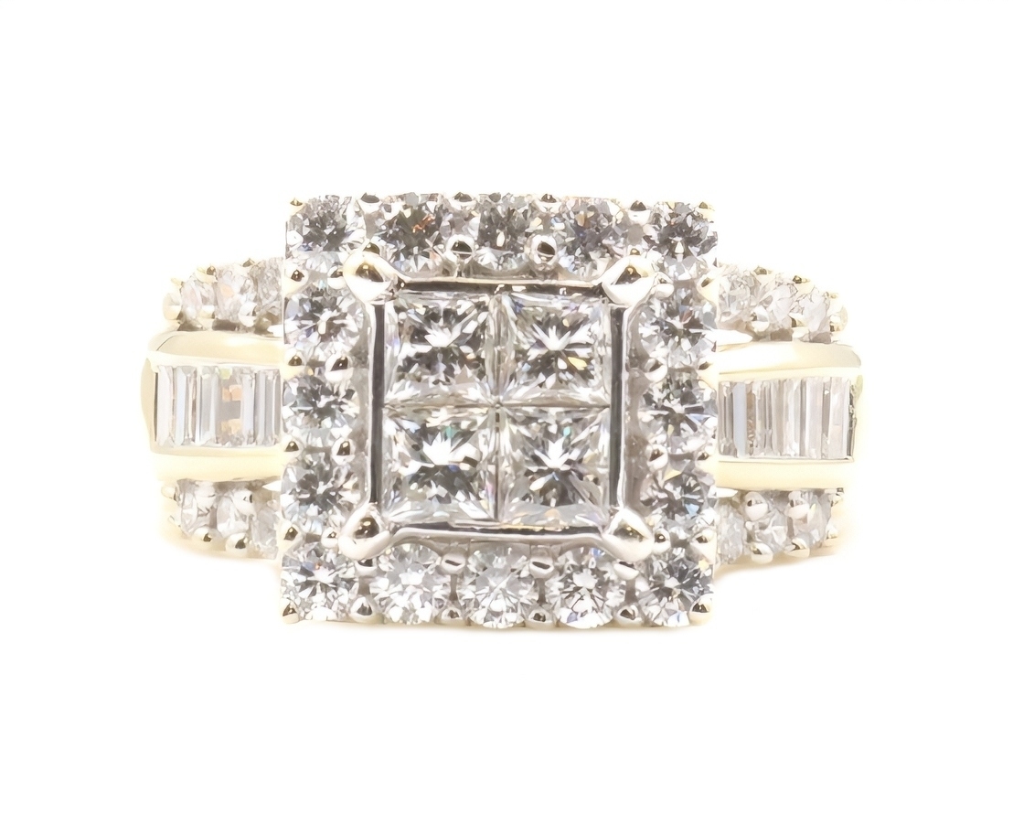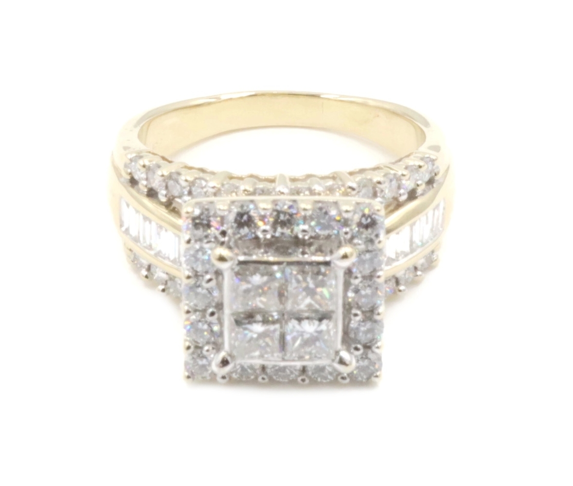 Estate 3.25 ctw Princess Round & Baguette 14KT Yellow Gold Halo Engagement Ring | USA Pawn