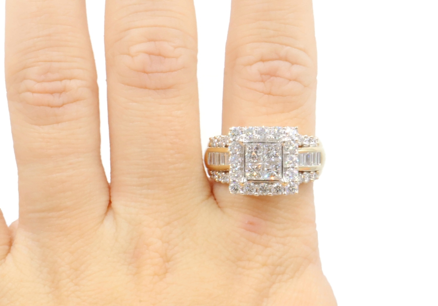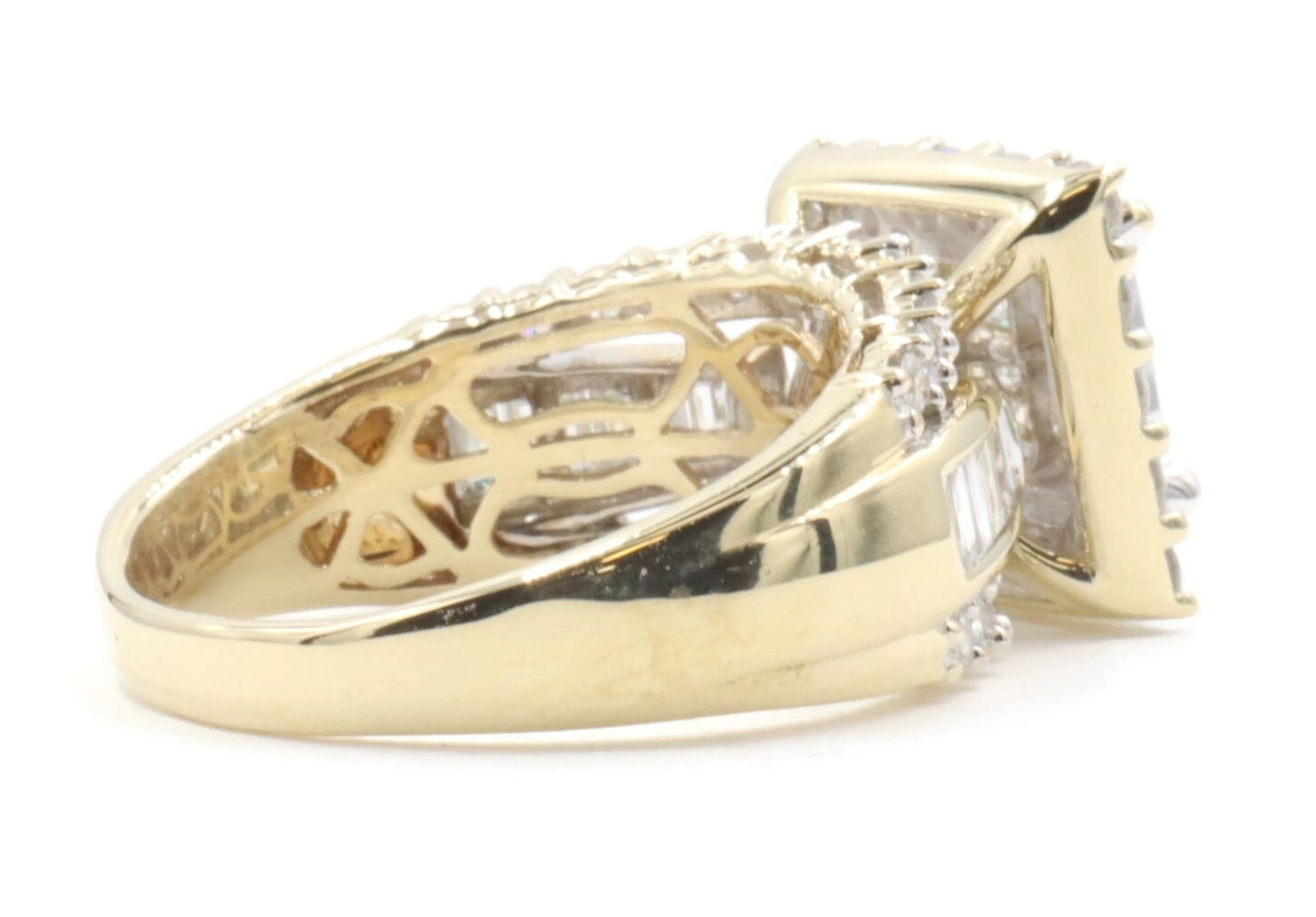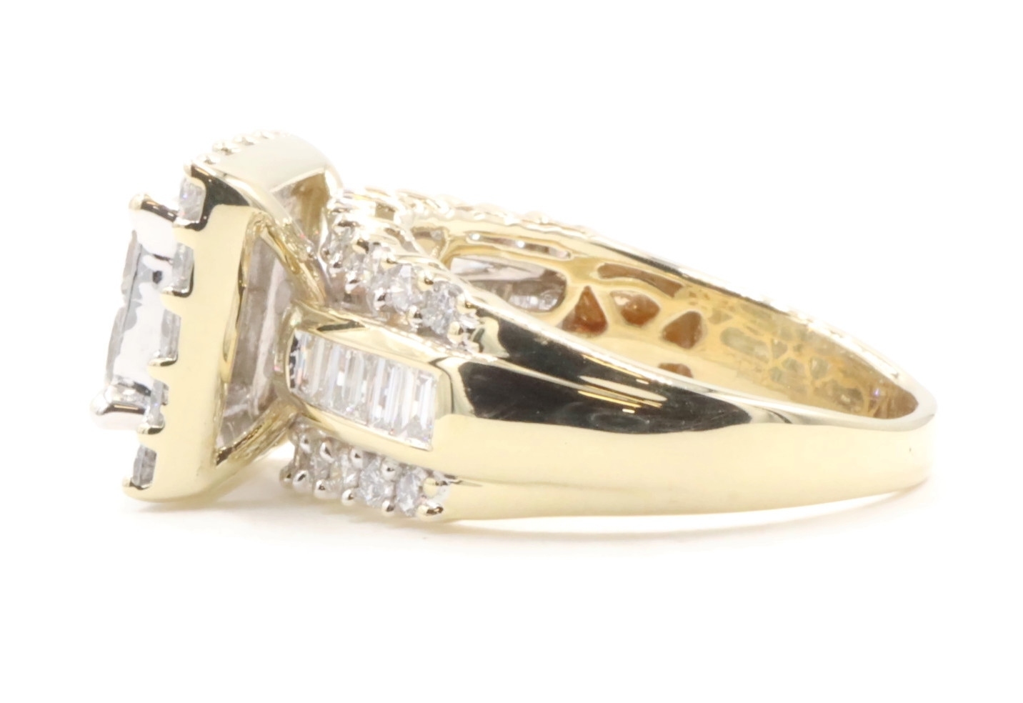 Estate 3.25 ctw Princess Round & Baguette 14KT Yellow Gold Halo Engagement Ring | USA Pawn