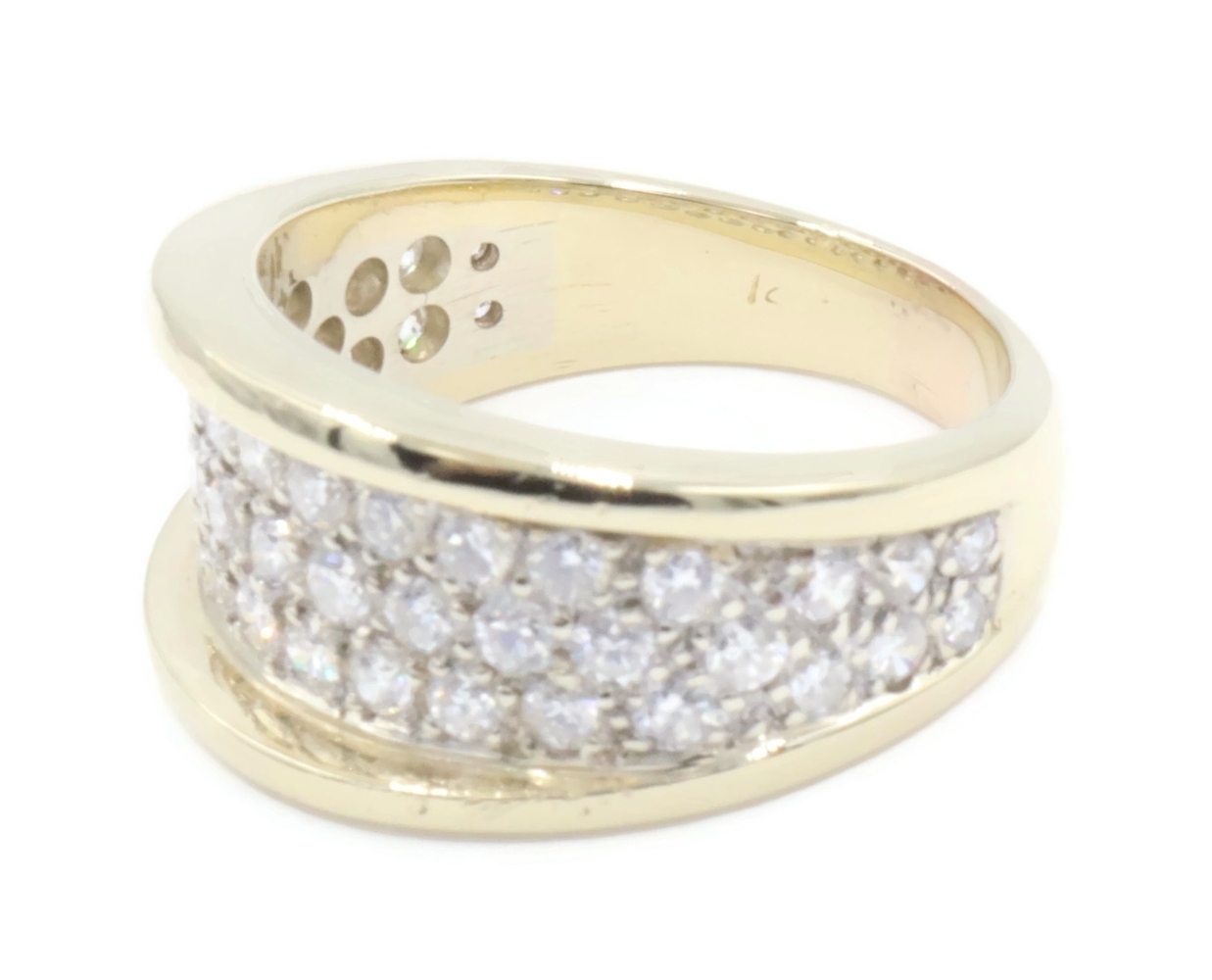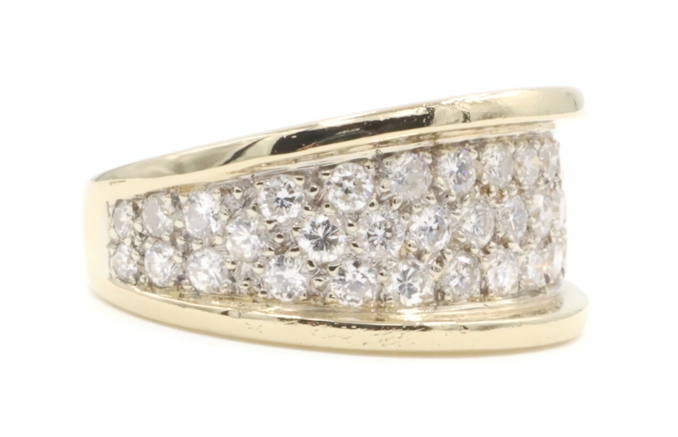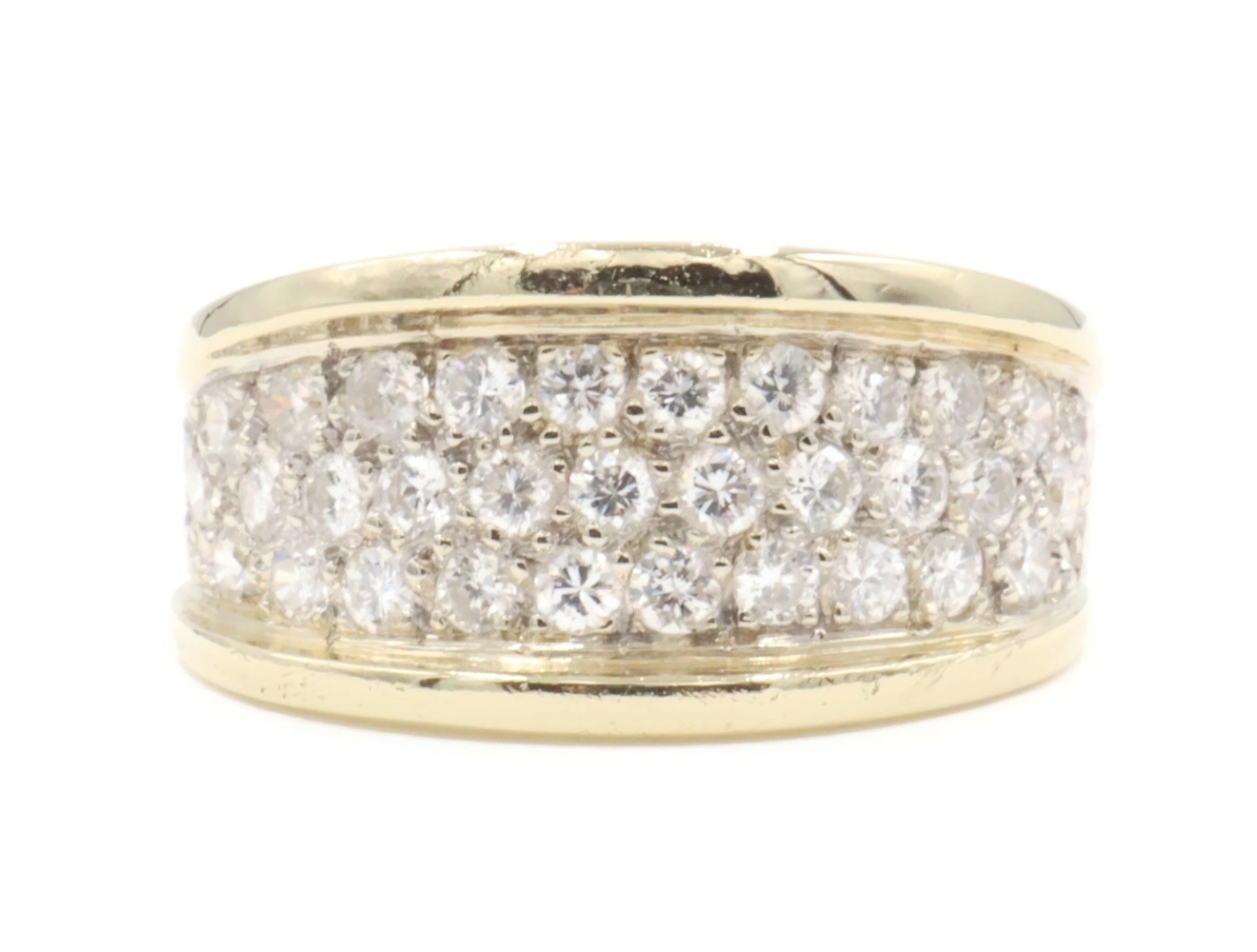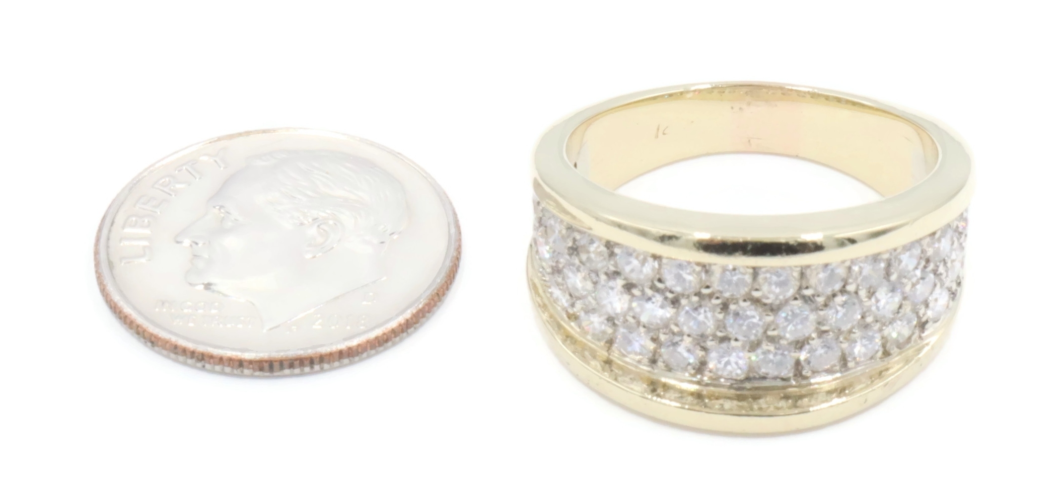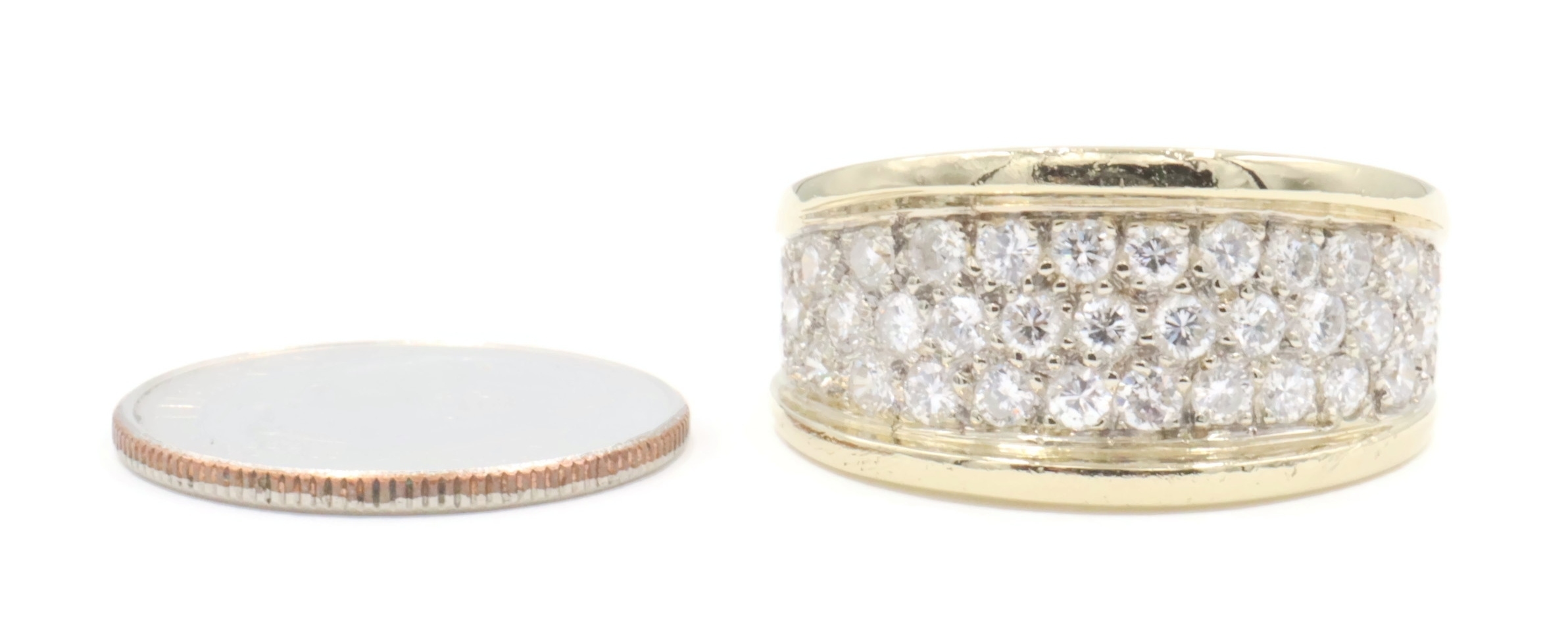 Estate 3-Row 1.70 Ctw Round Diamond 14KT Yellow Gold 10.6mm Cluster Ring 7.69g | USA Pawn