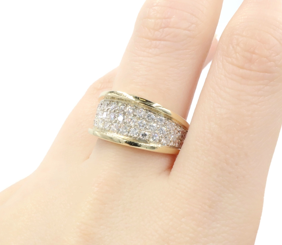 Estate 3-Row 1.70 Ctw Round Diamond 14KT Yellow Gold 10.6mm Cluster Ring 7.69g. This ring is a size 7 1/4.