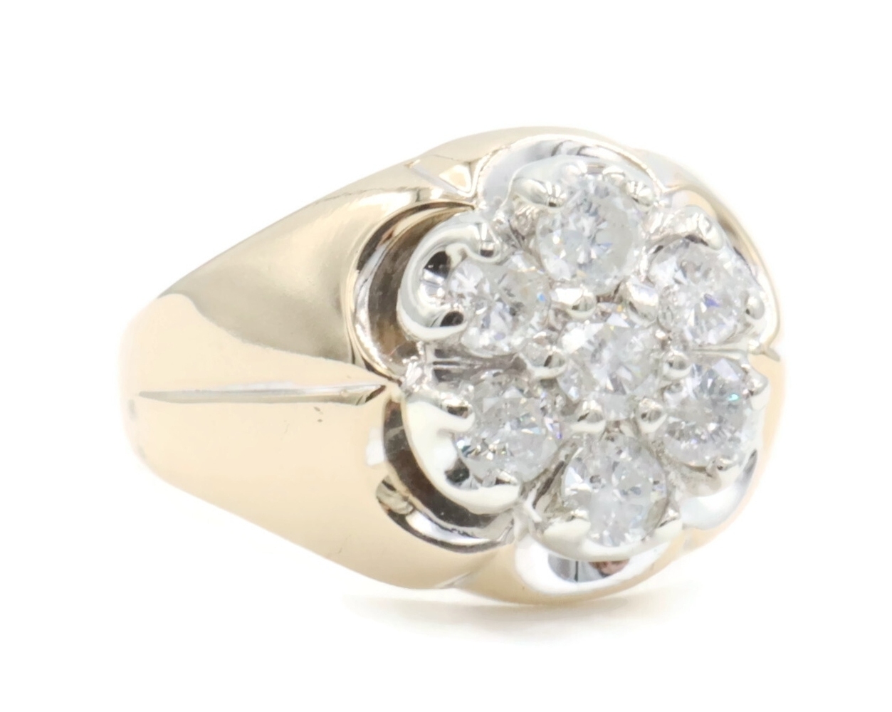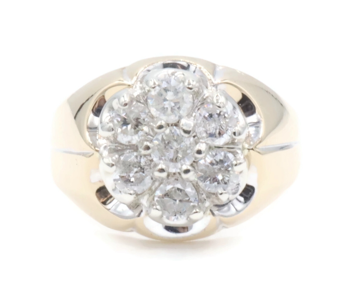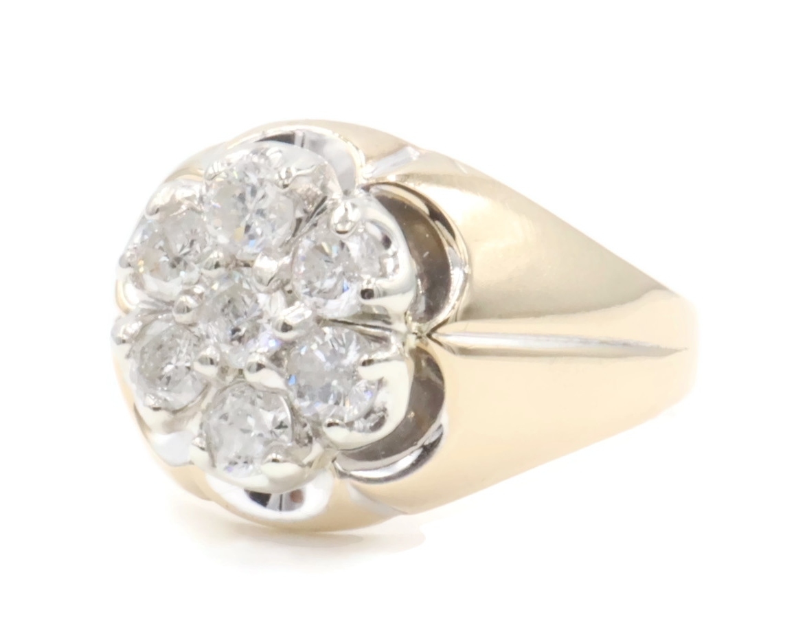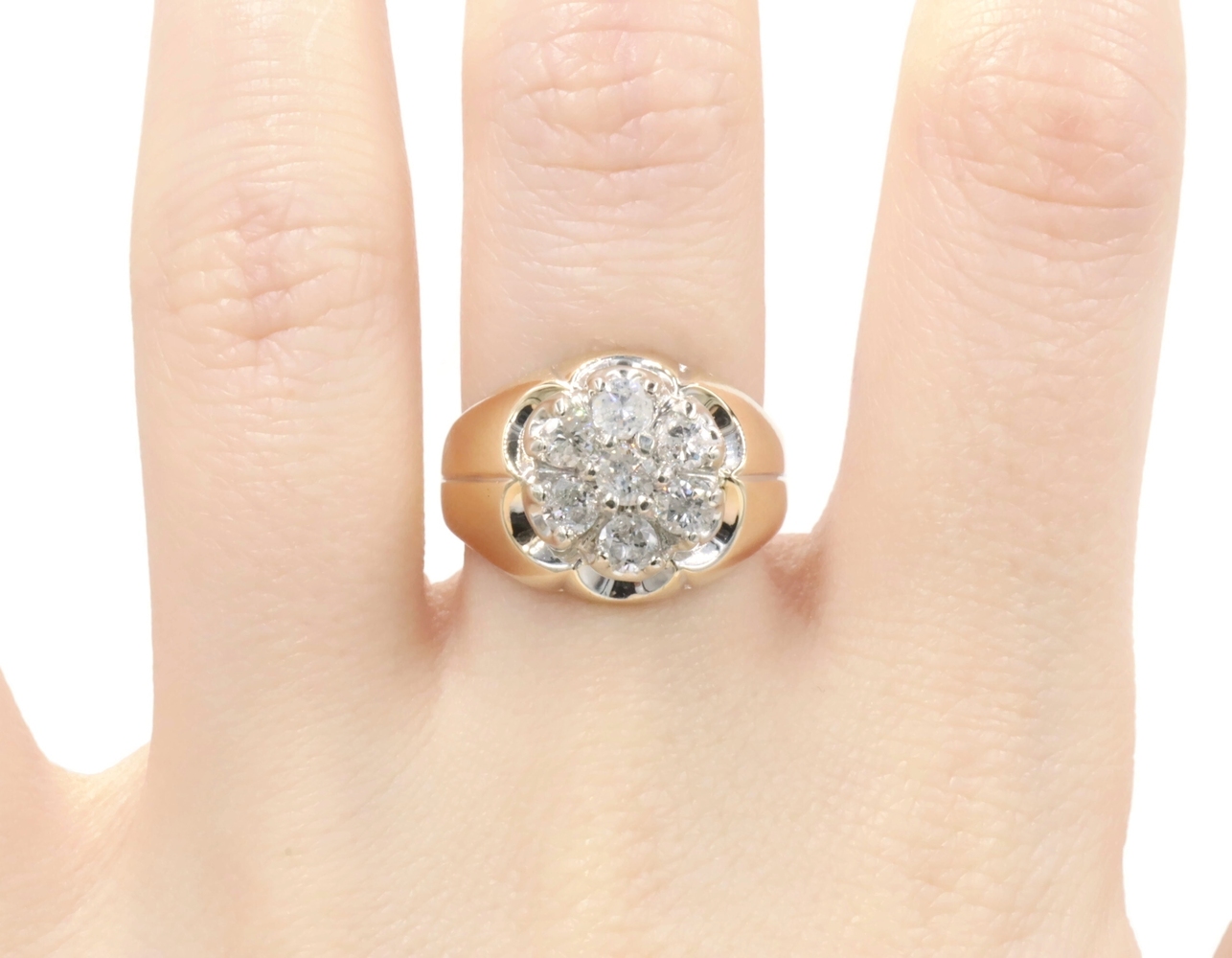 Estate 7-Stone 1.0 Ctw Round Cut Diamond 10KT Yellow Gold Cluster Ring 4.73g | USA Pawn