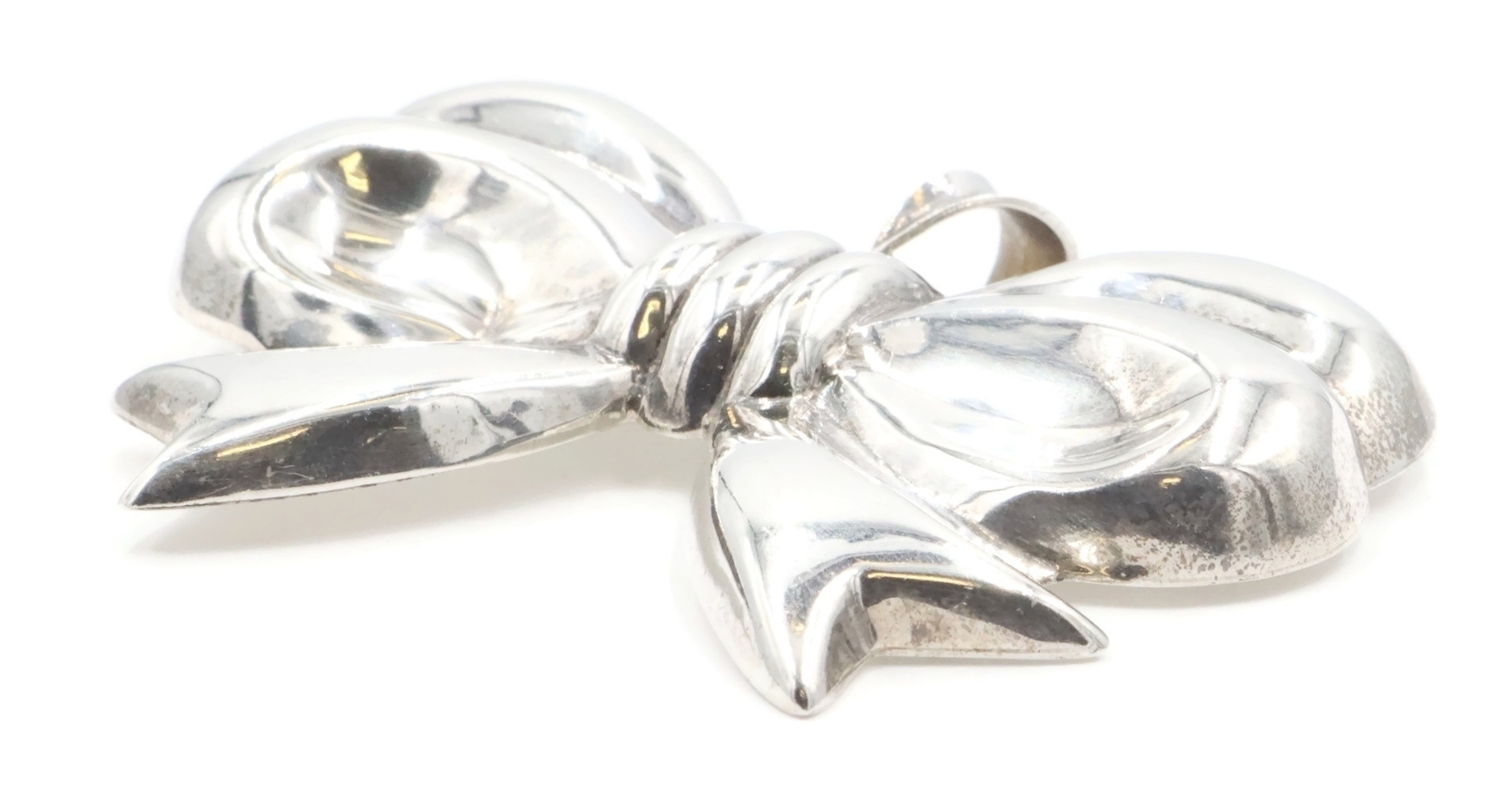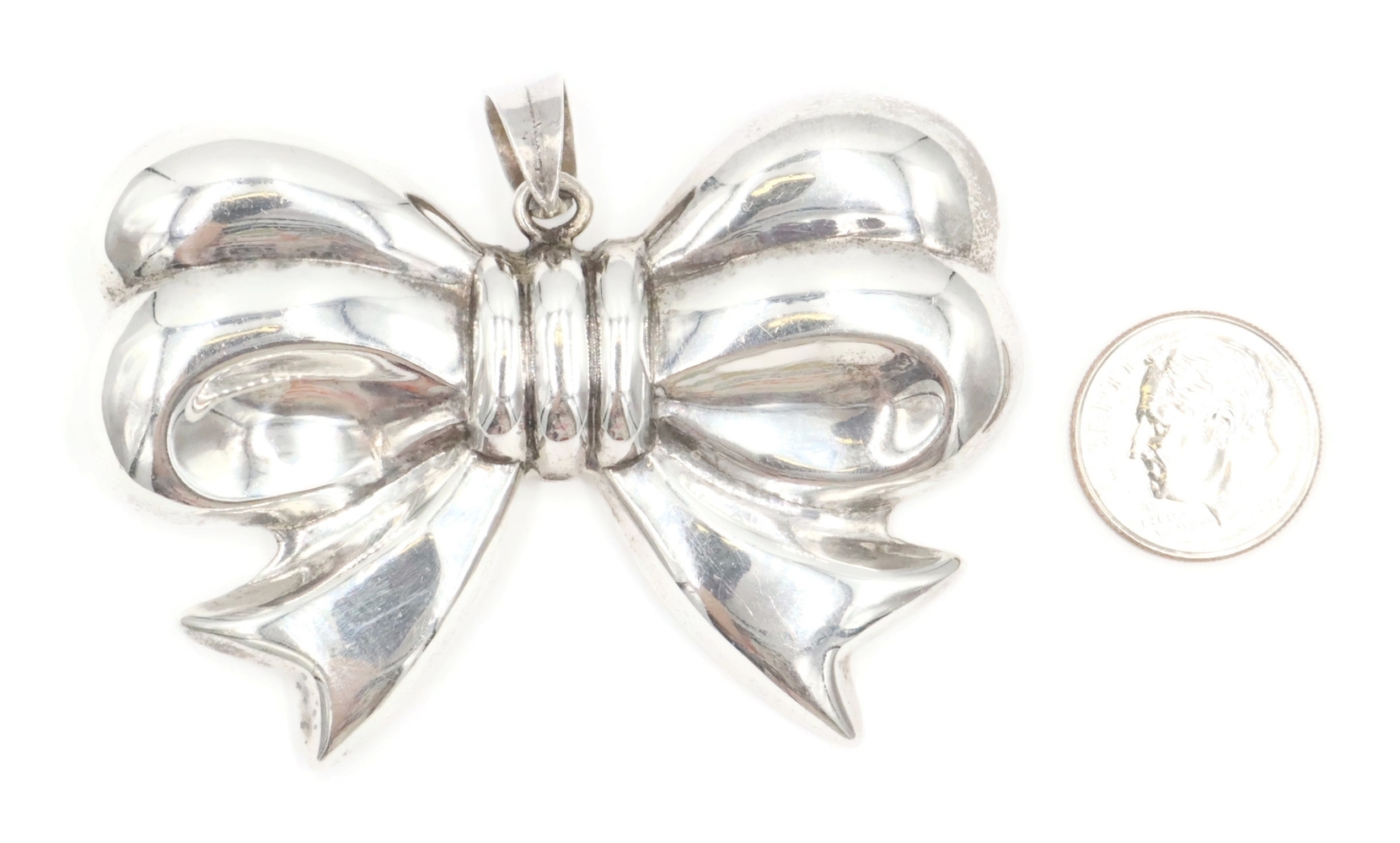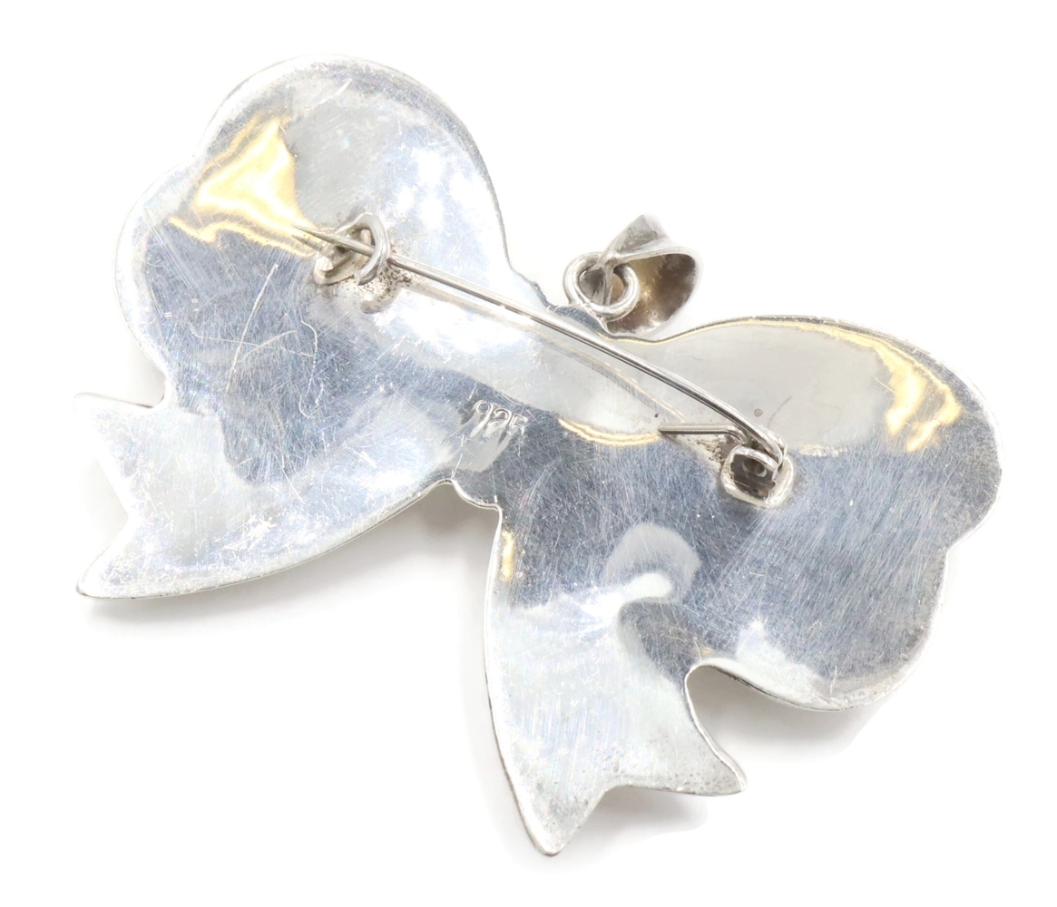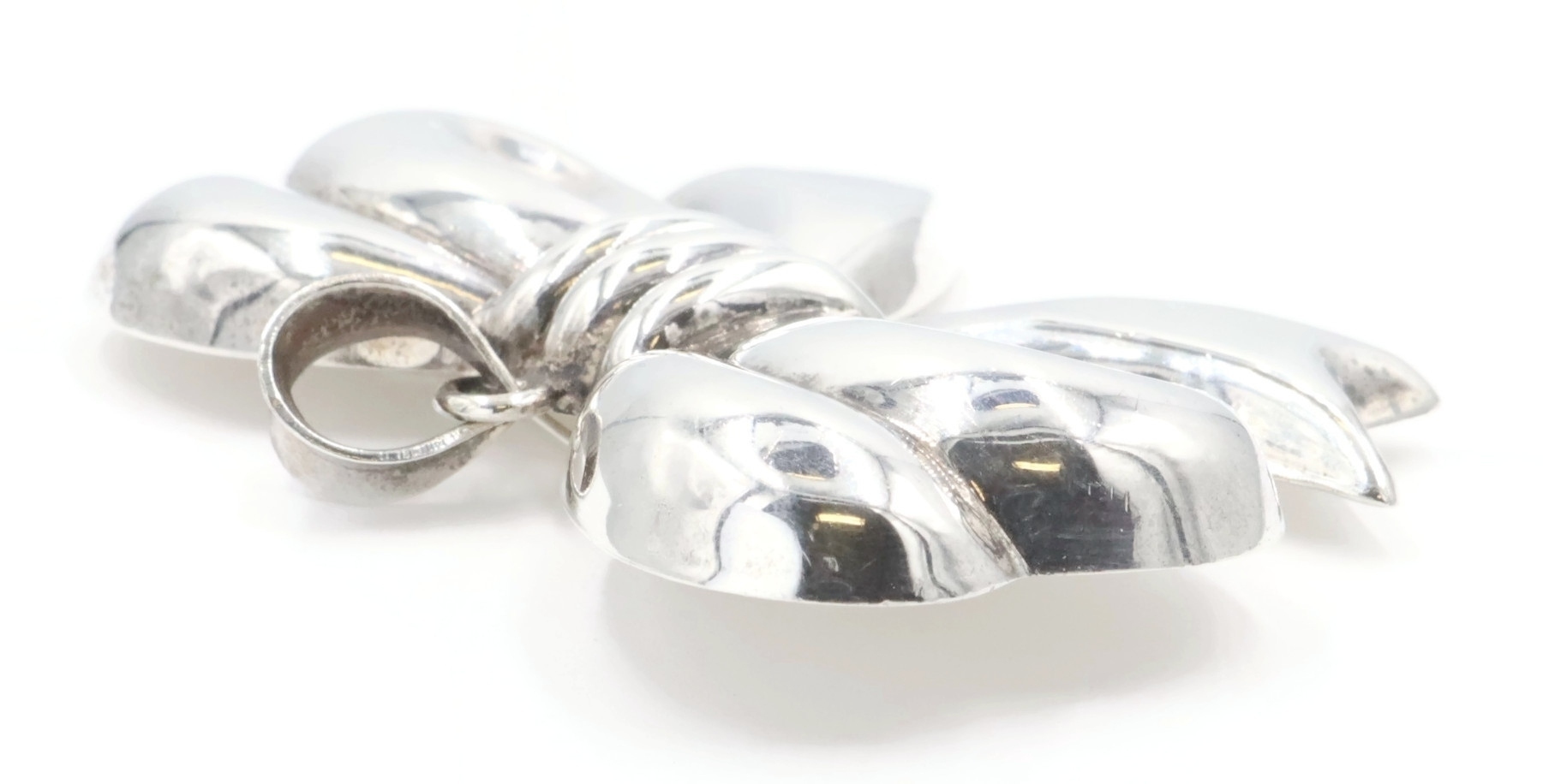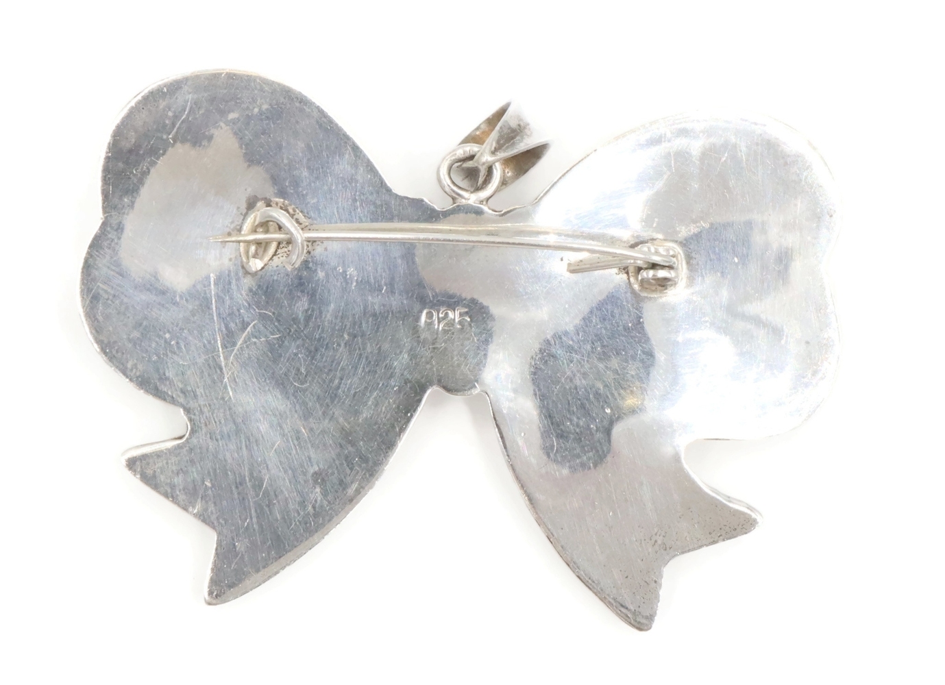 Estate 925 Silver Large Ribbon Bow Pin / Brooch & Necklace Pendant Coquet Brooch | USA Pawn