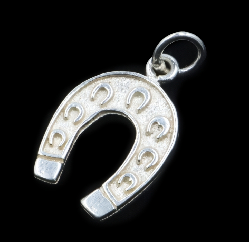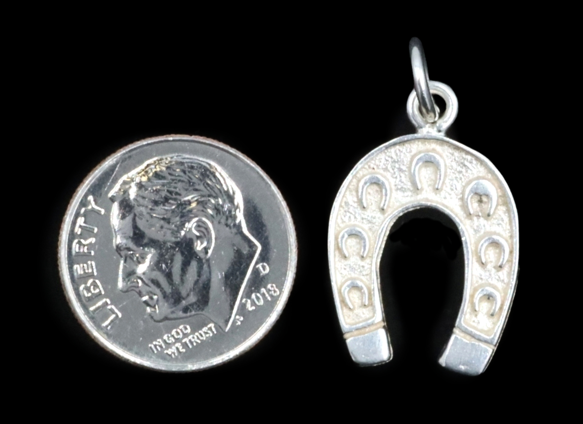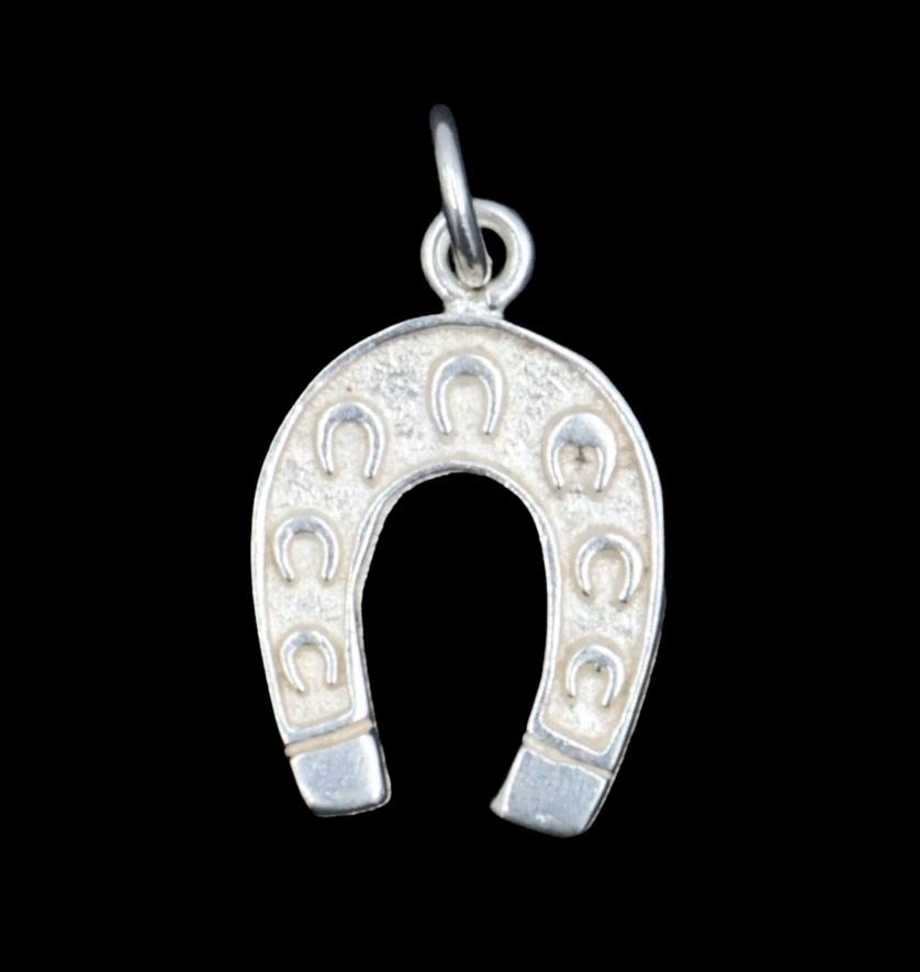 Estate Sterling Silver 925 26.2mm Lucky Horseshoe Necklace Pendant - 1.79g. This pendant has a total length of 26.2mm (including bail) with a width of 14.8mm.