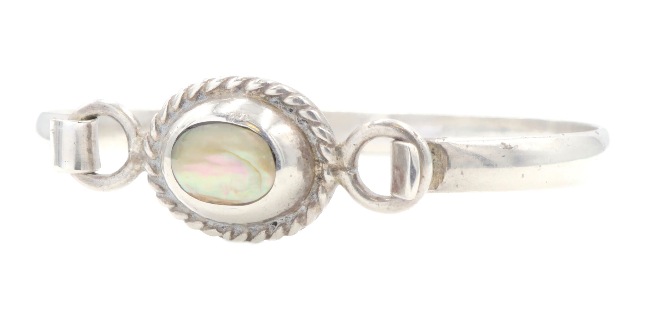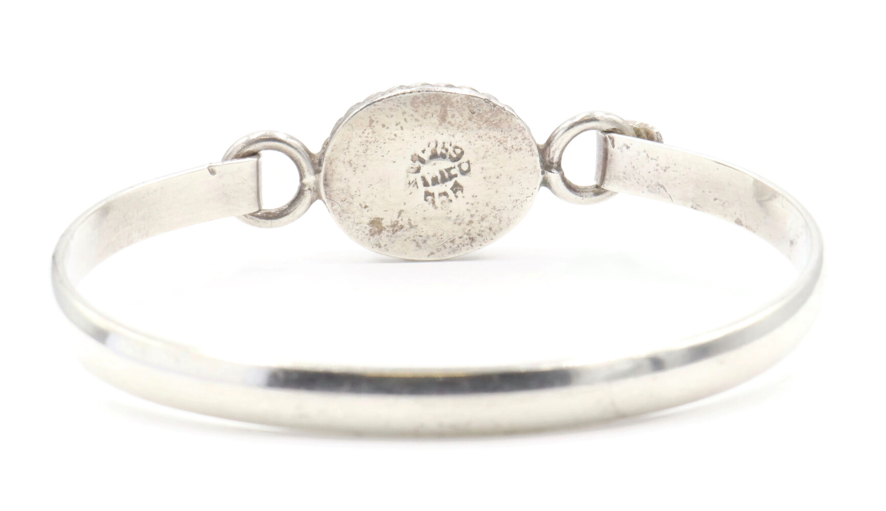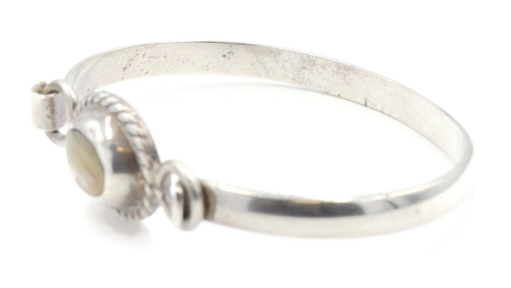 Estate Sterling Silver 925 Oval Mother of Pearl Inlay 7" Mexico Bangle Bracelet | USA Pawn