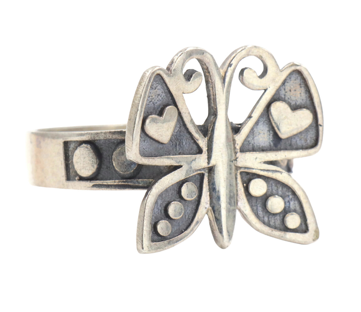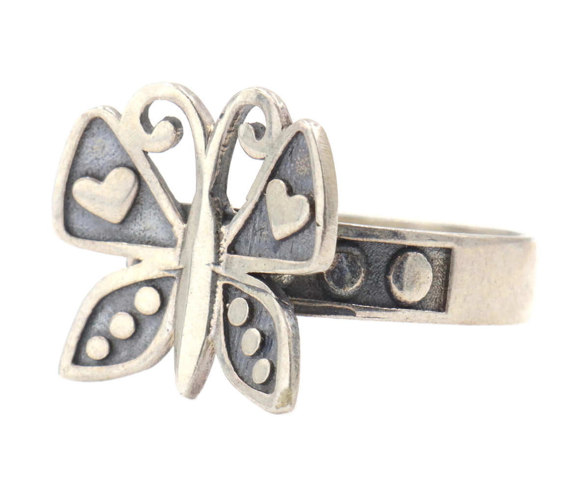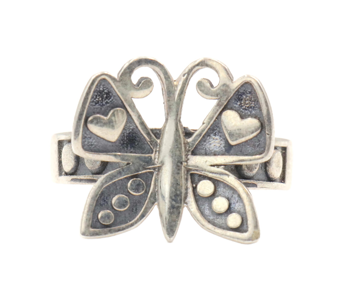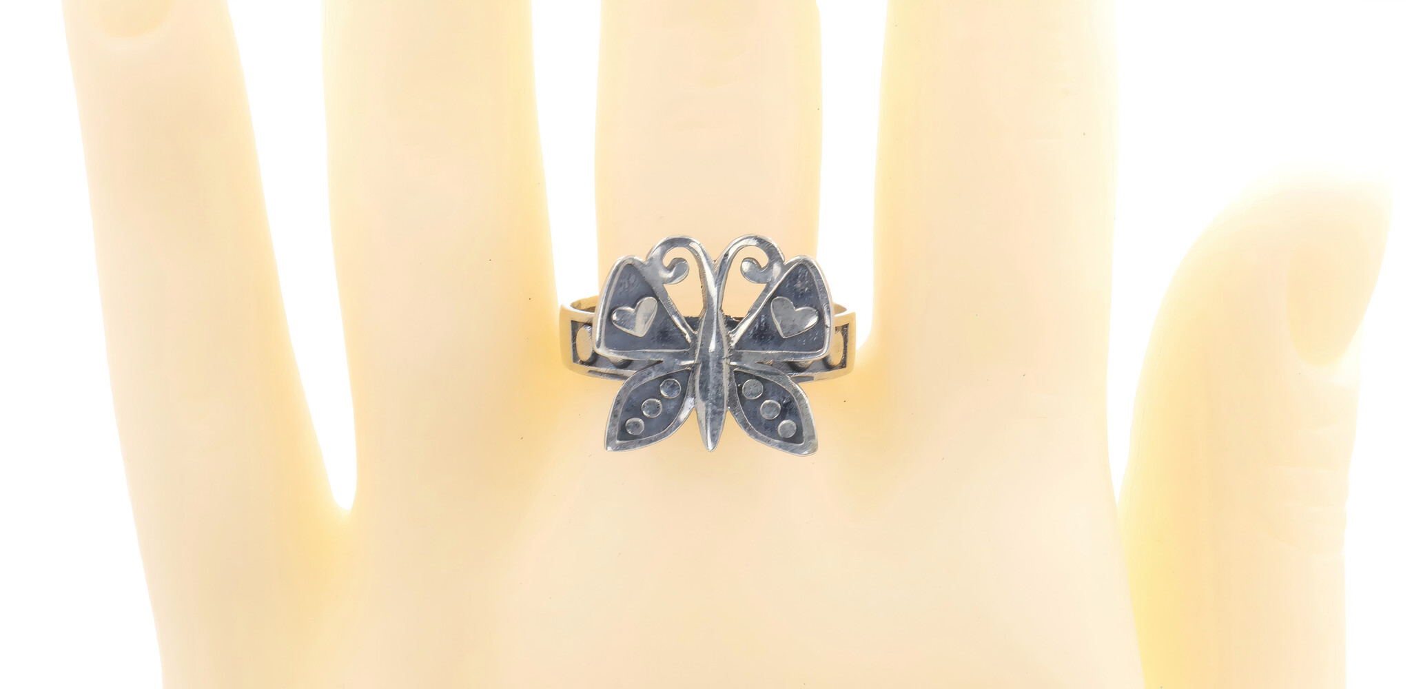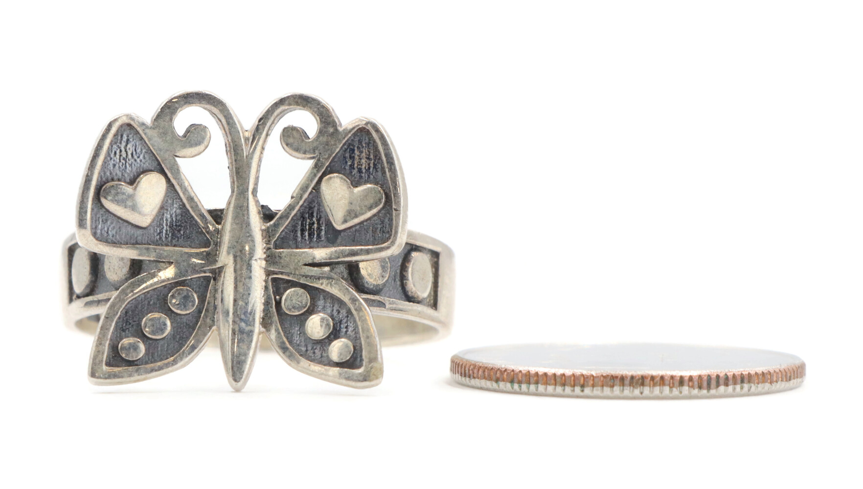 Estate Sterling Silver Detailed Butterfly with Hearts 925 Women's Ring - 3.4g | USA Pawn