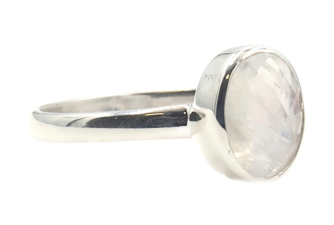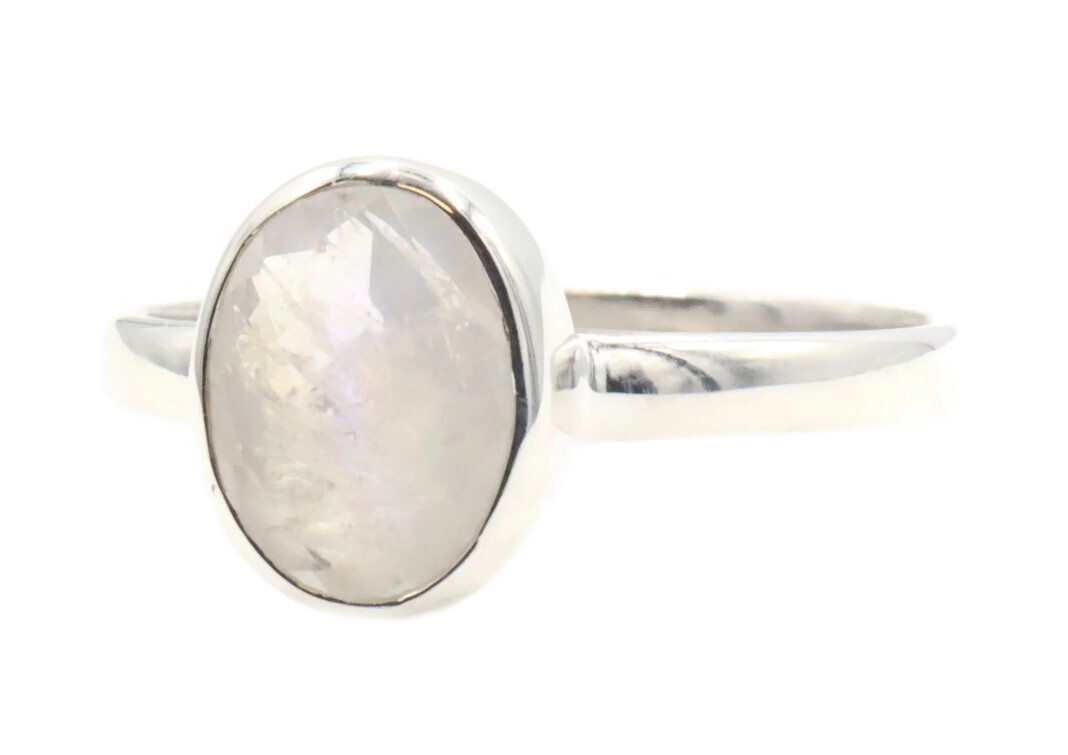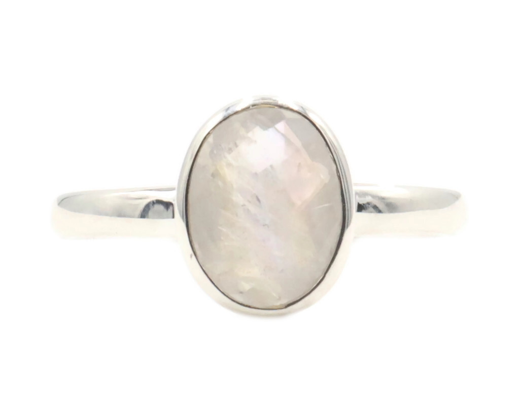 Estate Sterling Silver Faceted 1.20 ctw Oval Cut Moonstone Solitaire 925 Ring | USA Pawn