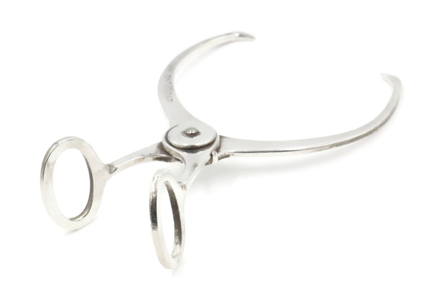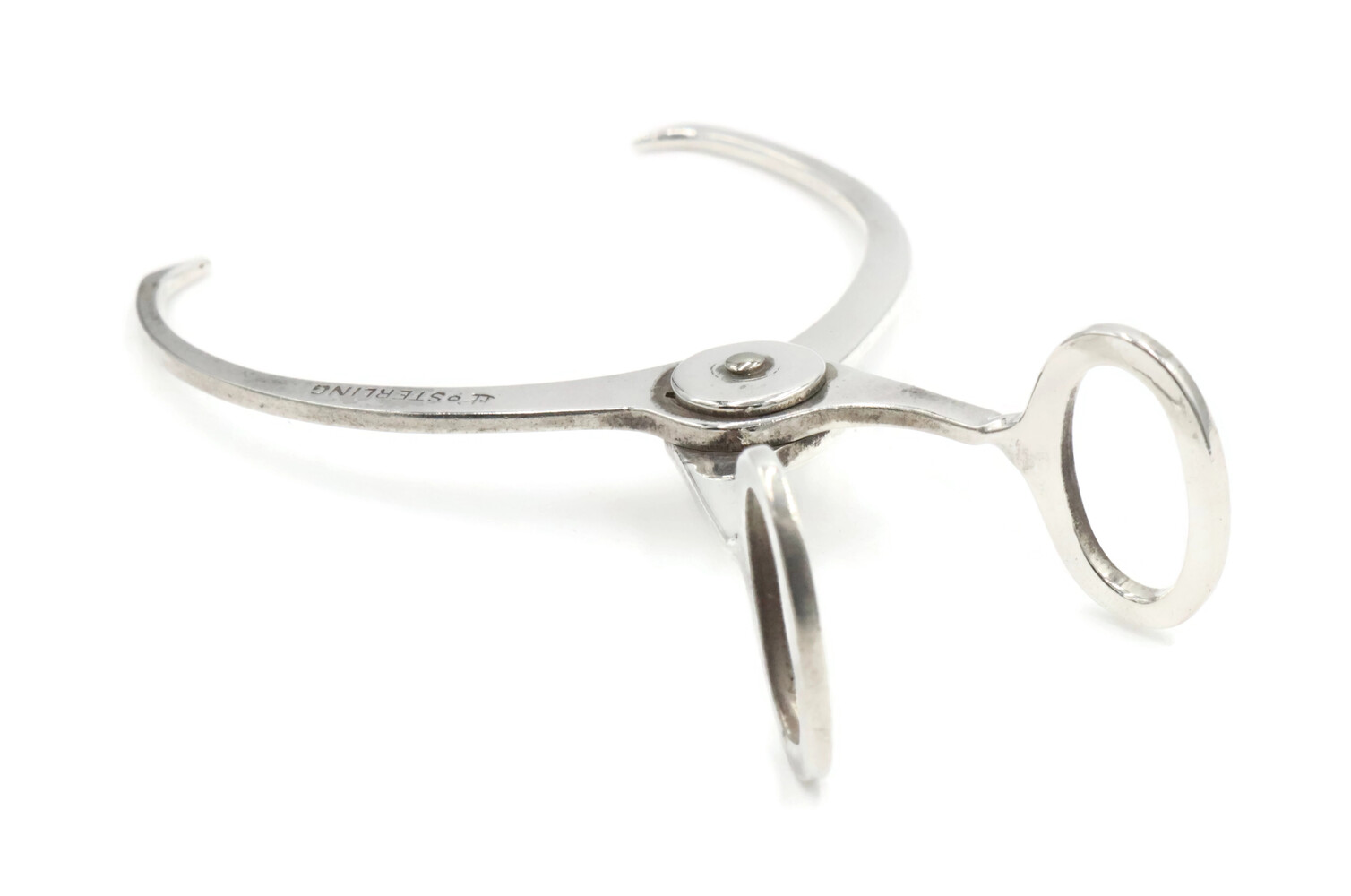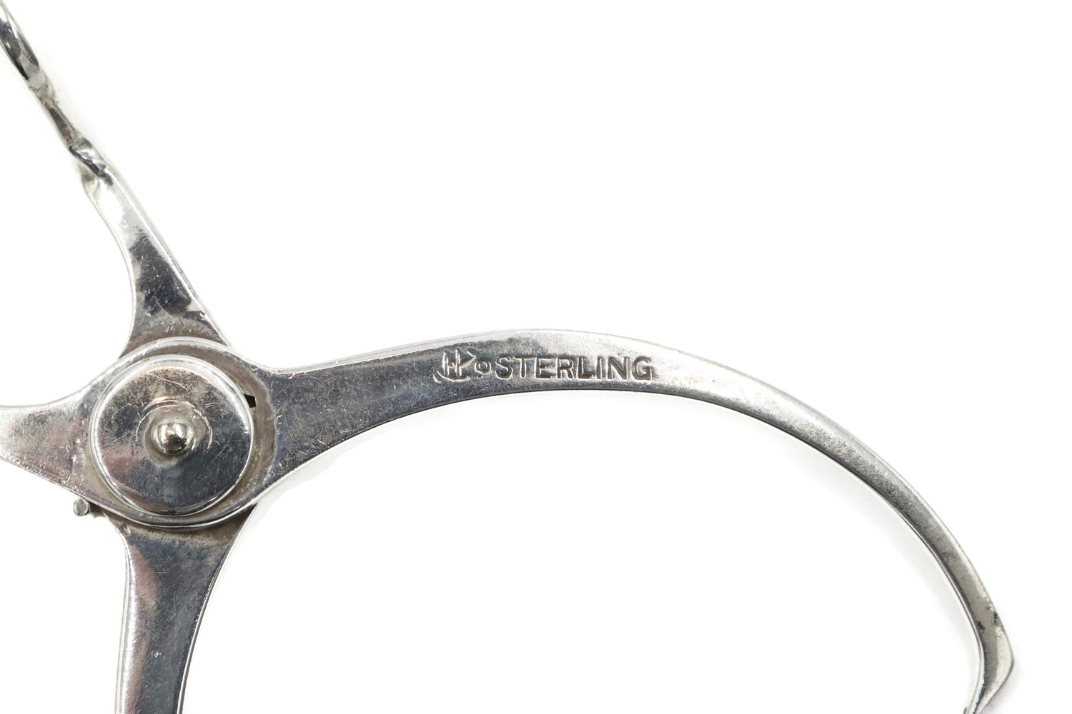 Estate Sterling Silver Hay Hook Motif 3 Inch Spring Loaded Sugar Tongs - 11.99g. These sugar tongs have an approximate length of 3 inches and a maximum opening size of 1 1/8 inches.