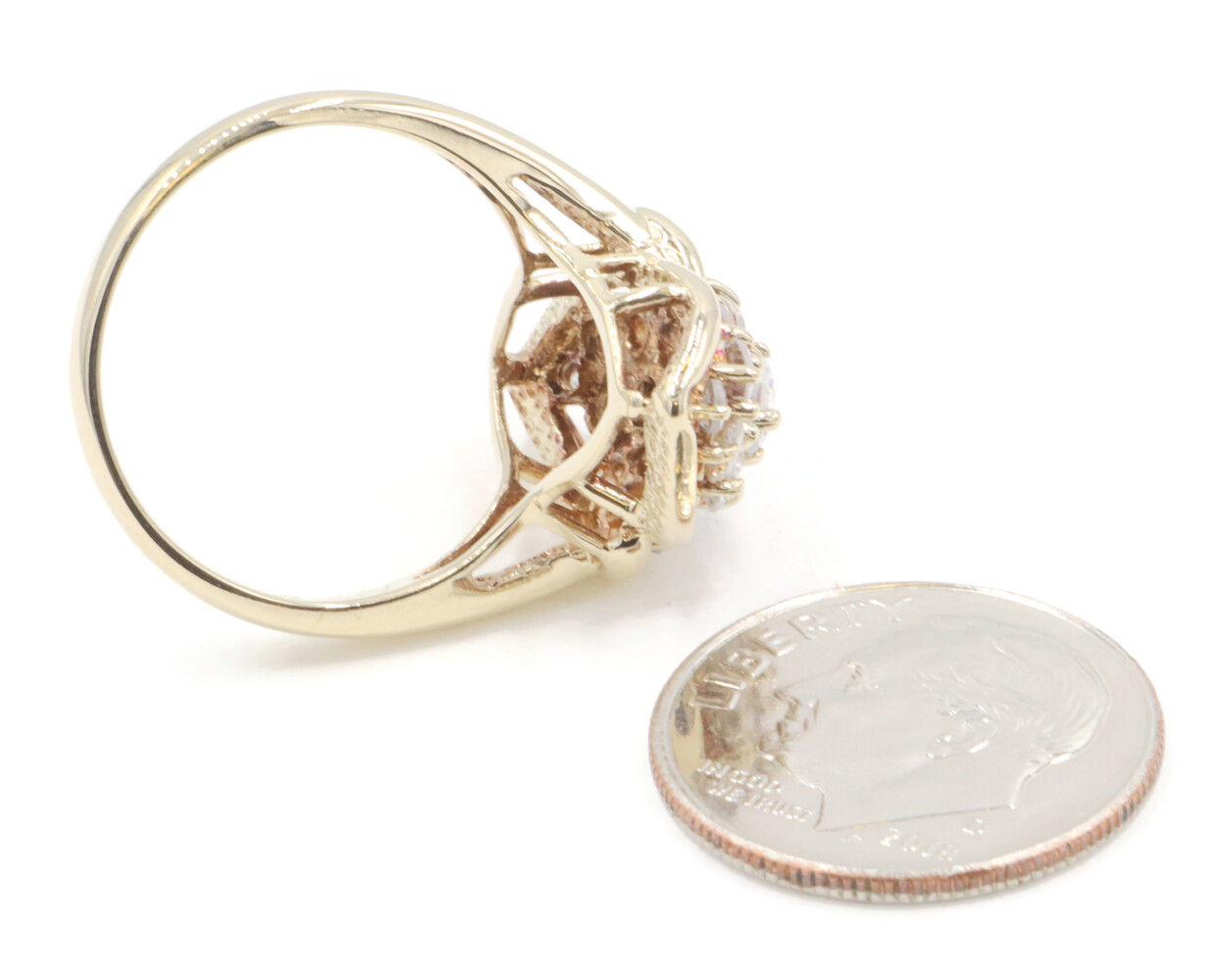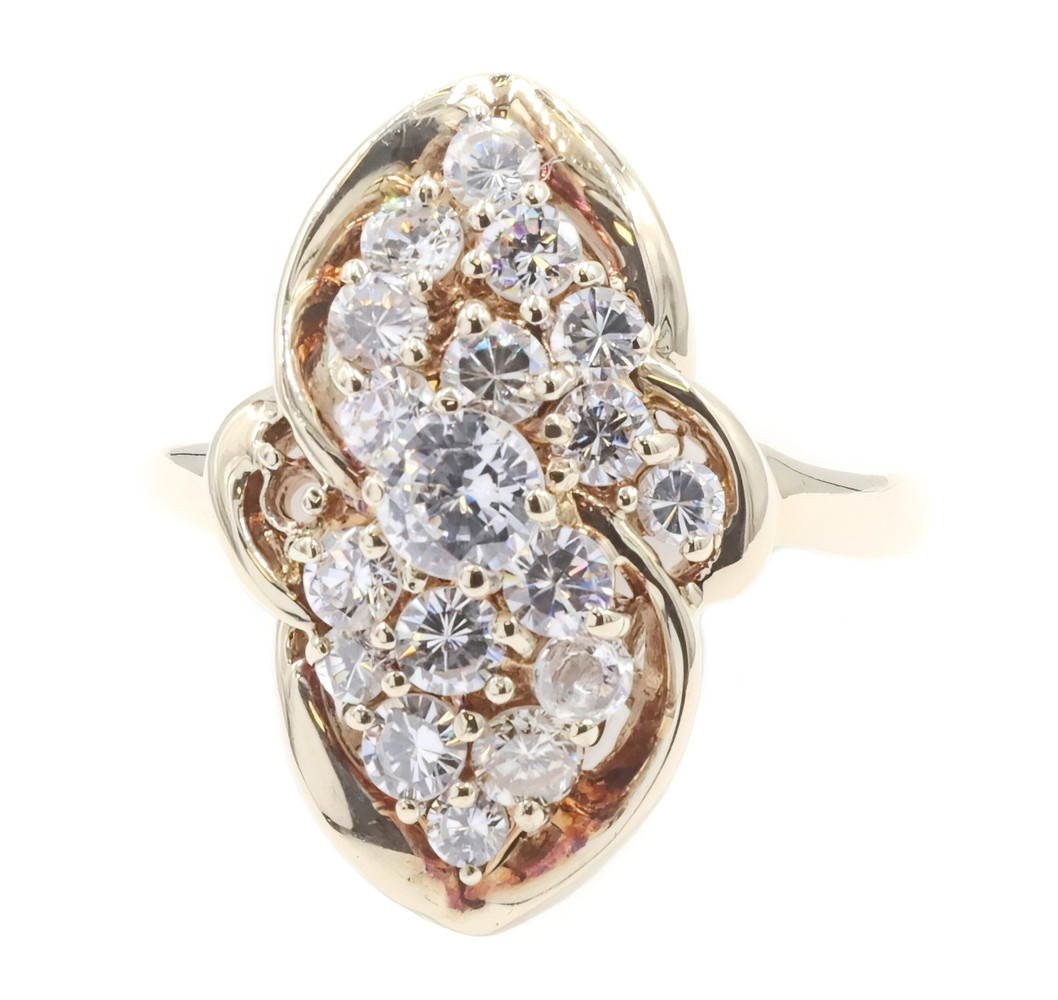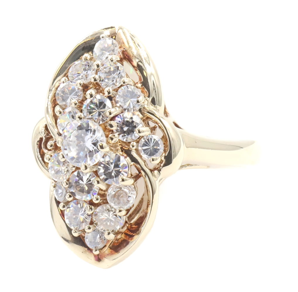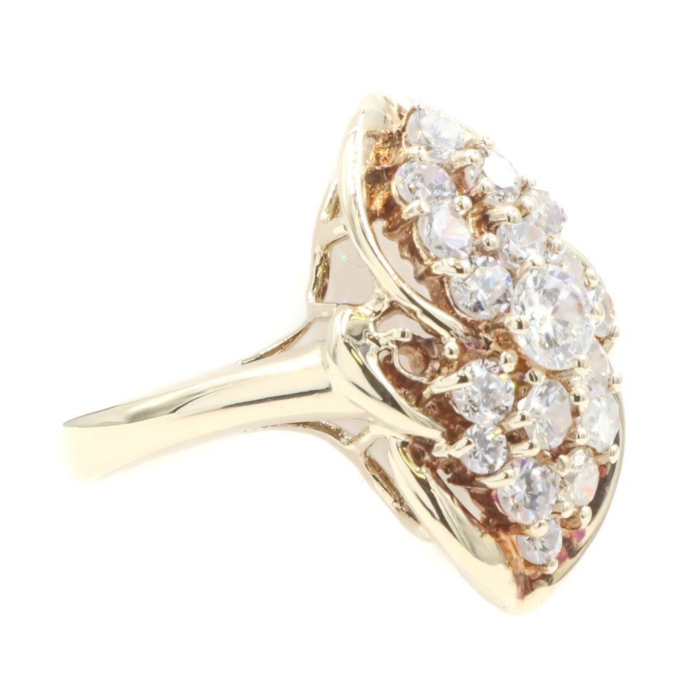 Estate Women's 10KT Yellow Gold Round Cubic Zirconia CZ Marquise Cluster Ring | USA Pawn