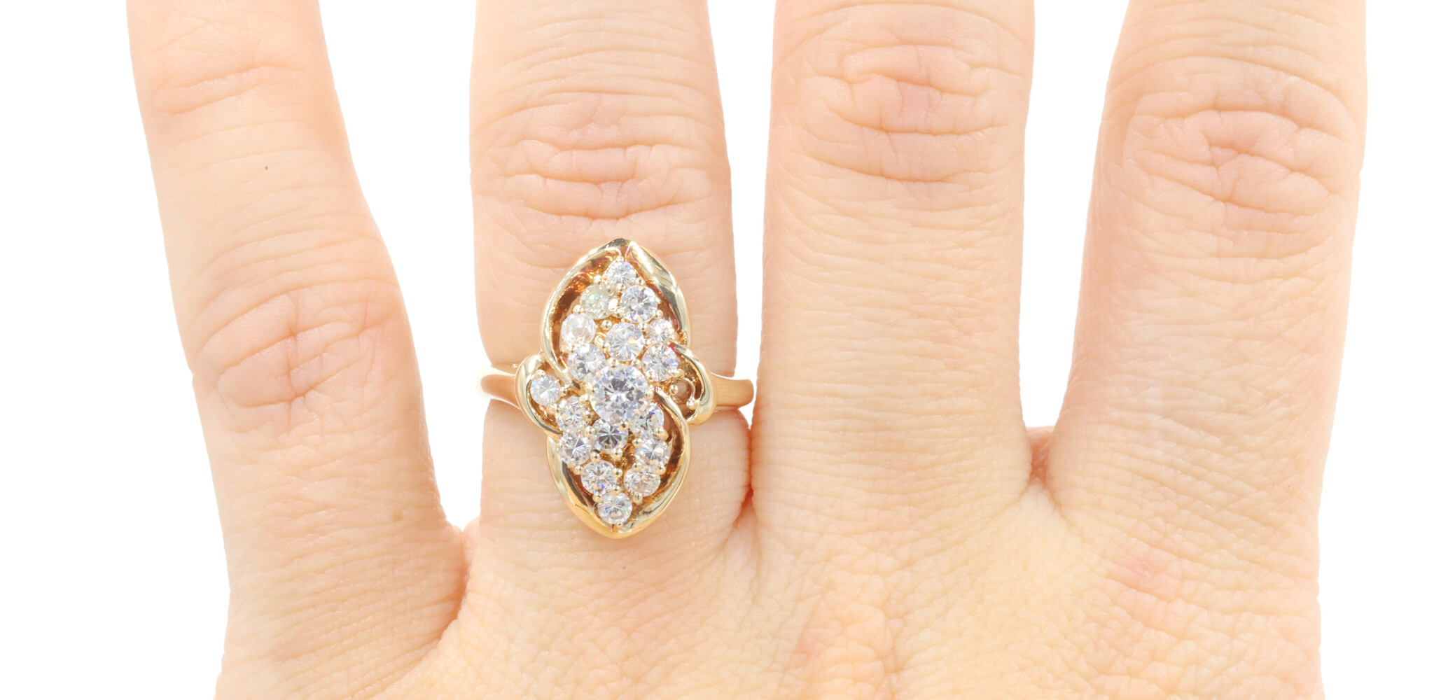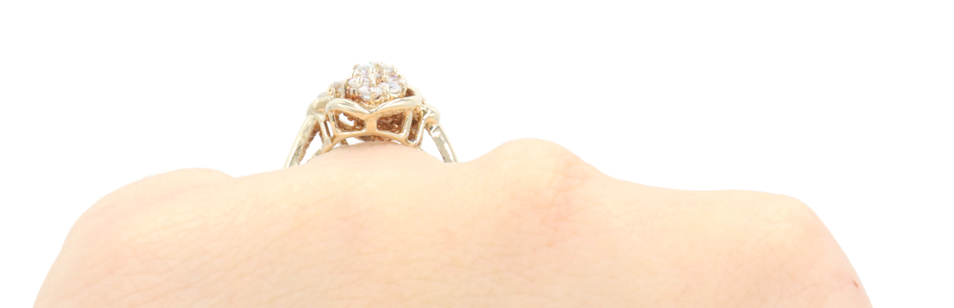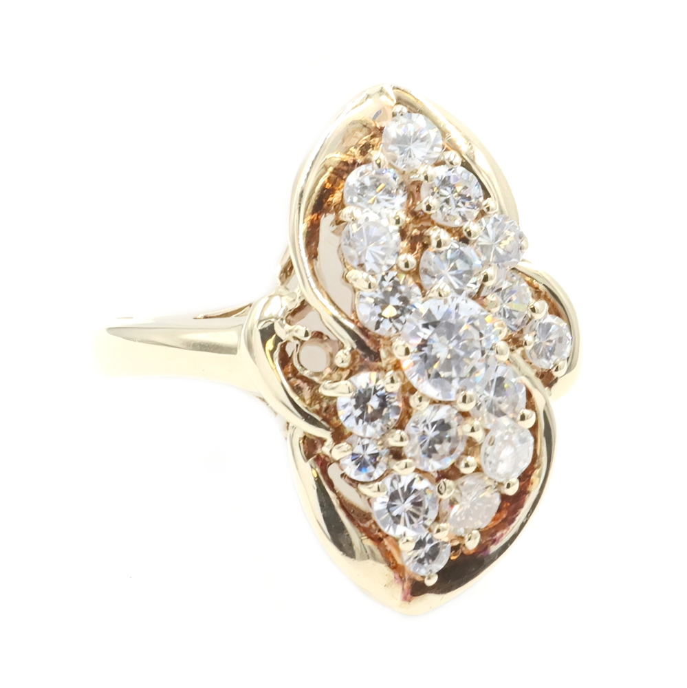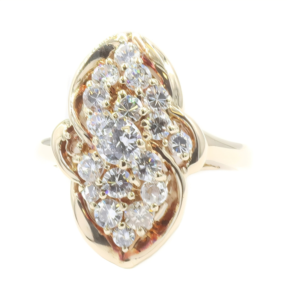 Estate Women's 10KT Yellow Gold Round Cubic Zirconia CZ Marquise Cluster Ring | USA Pawn