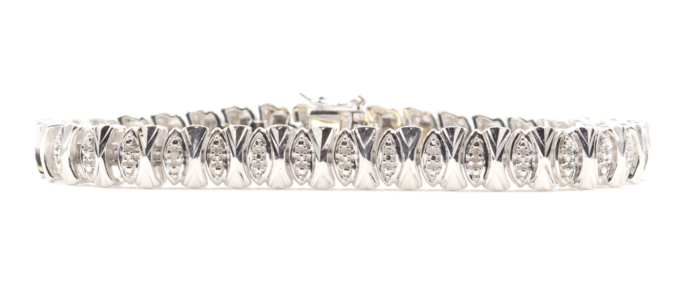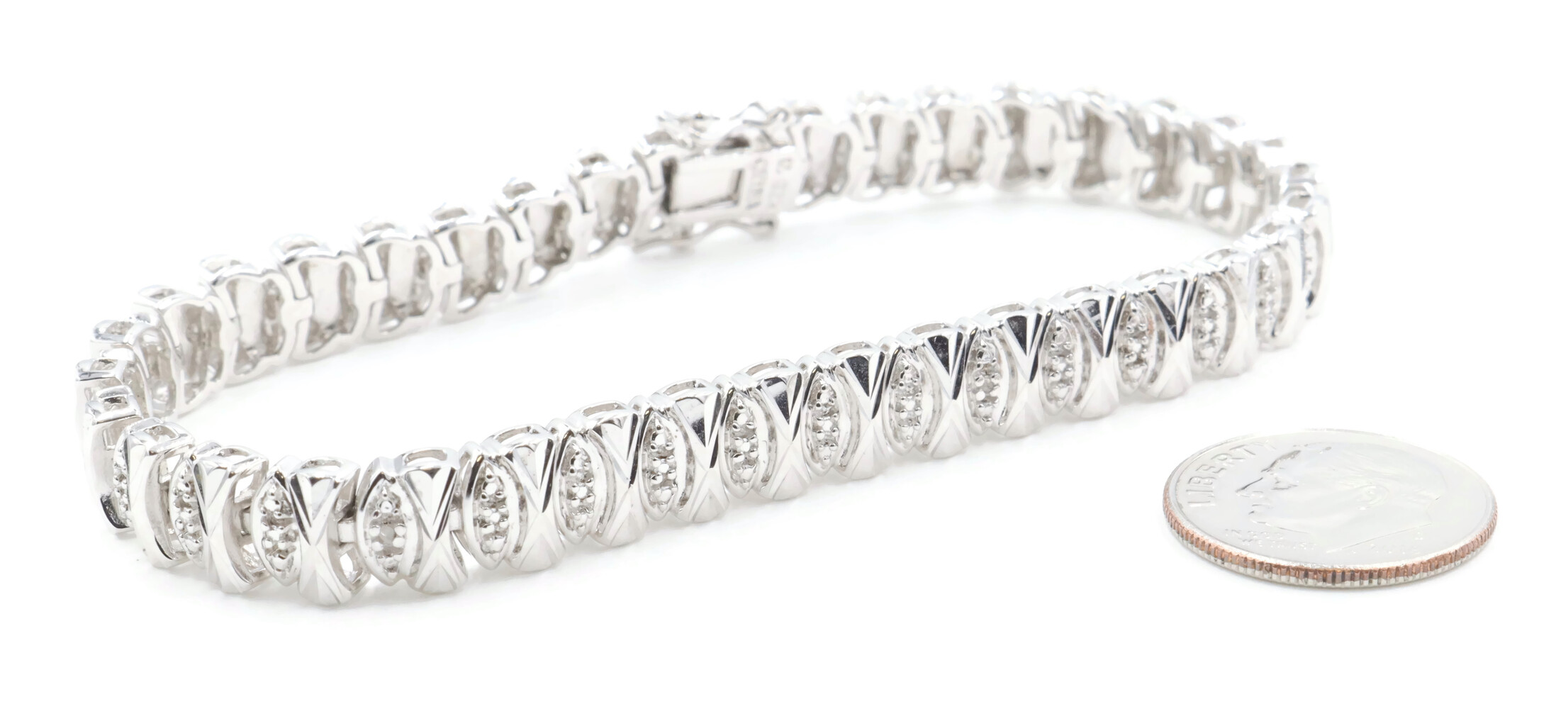 Estate Women's Sterling Silver 7.5" 7.6mm Wide Diamond Accent Tennis Bracelet | USA Pawn
