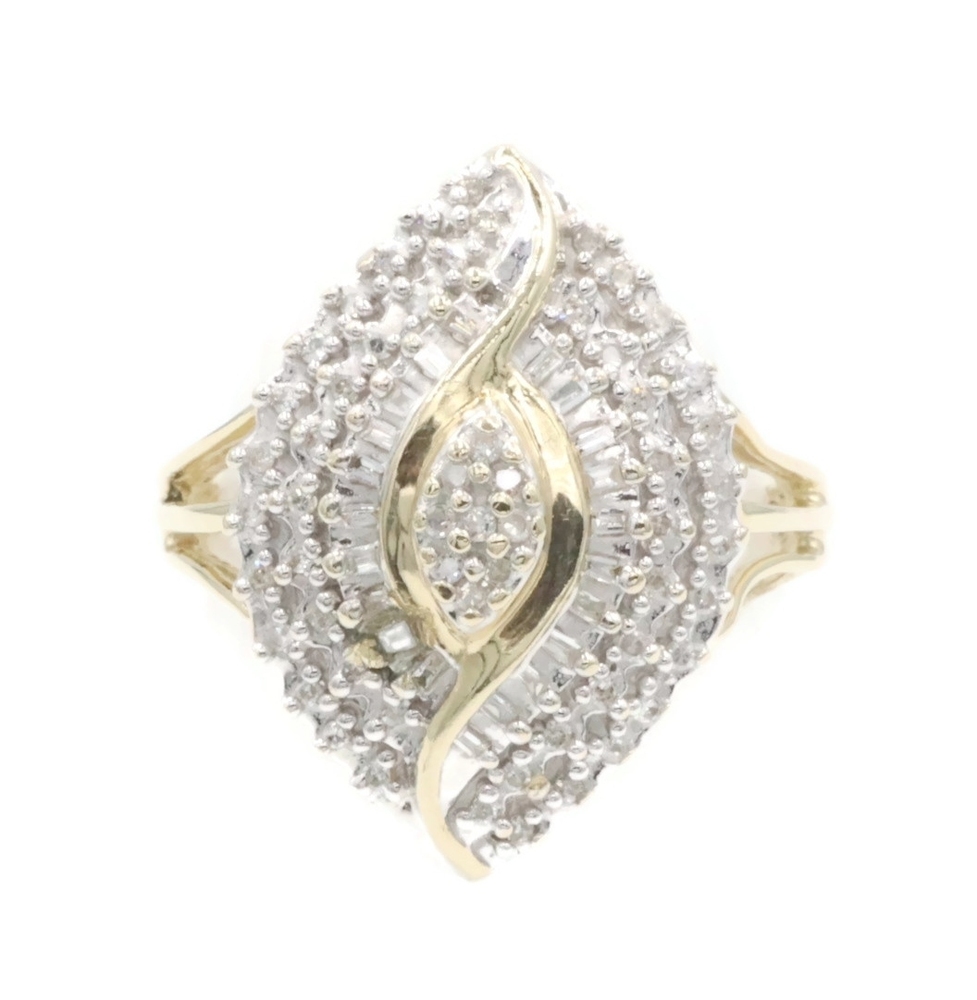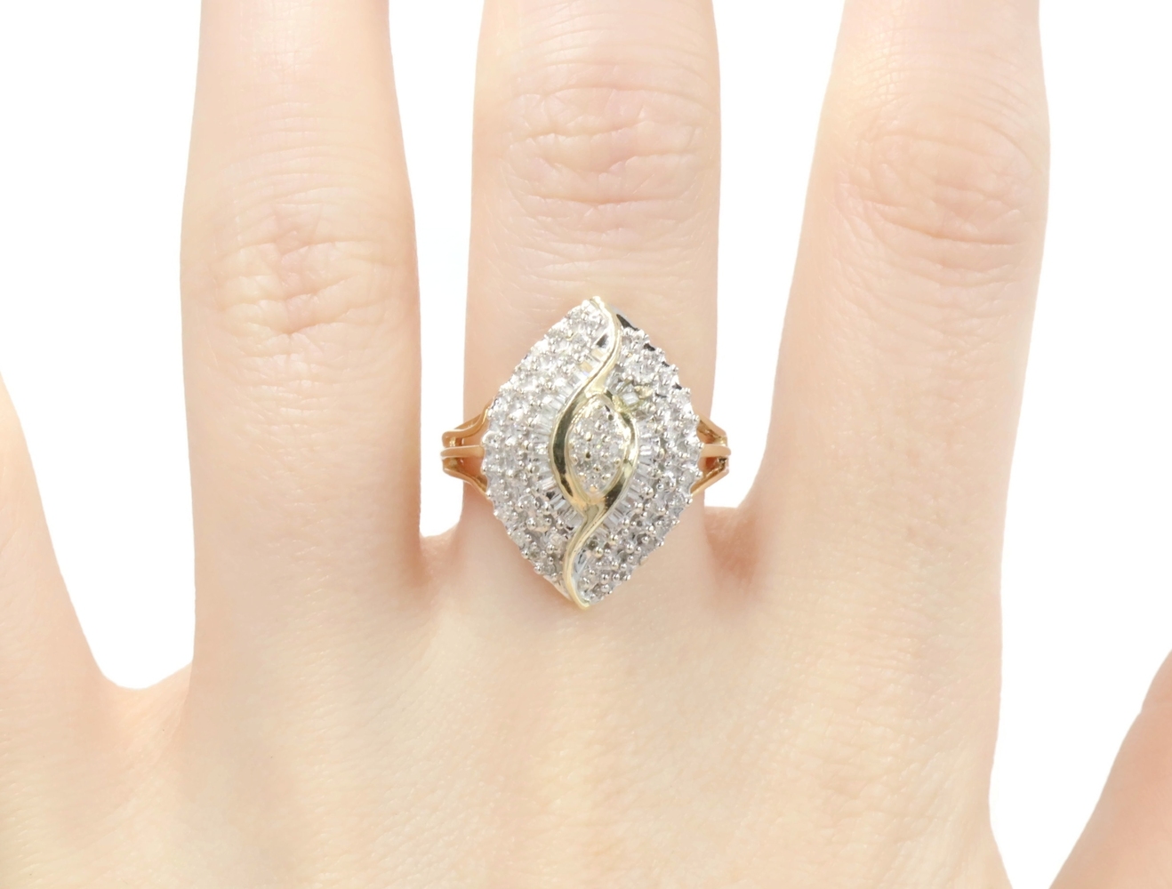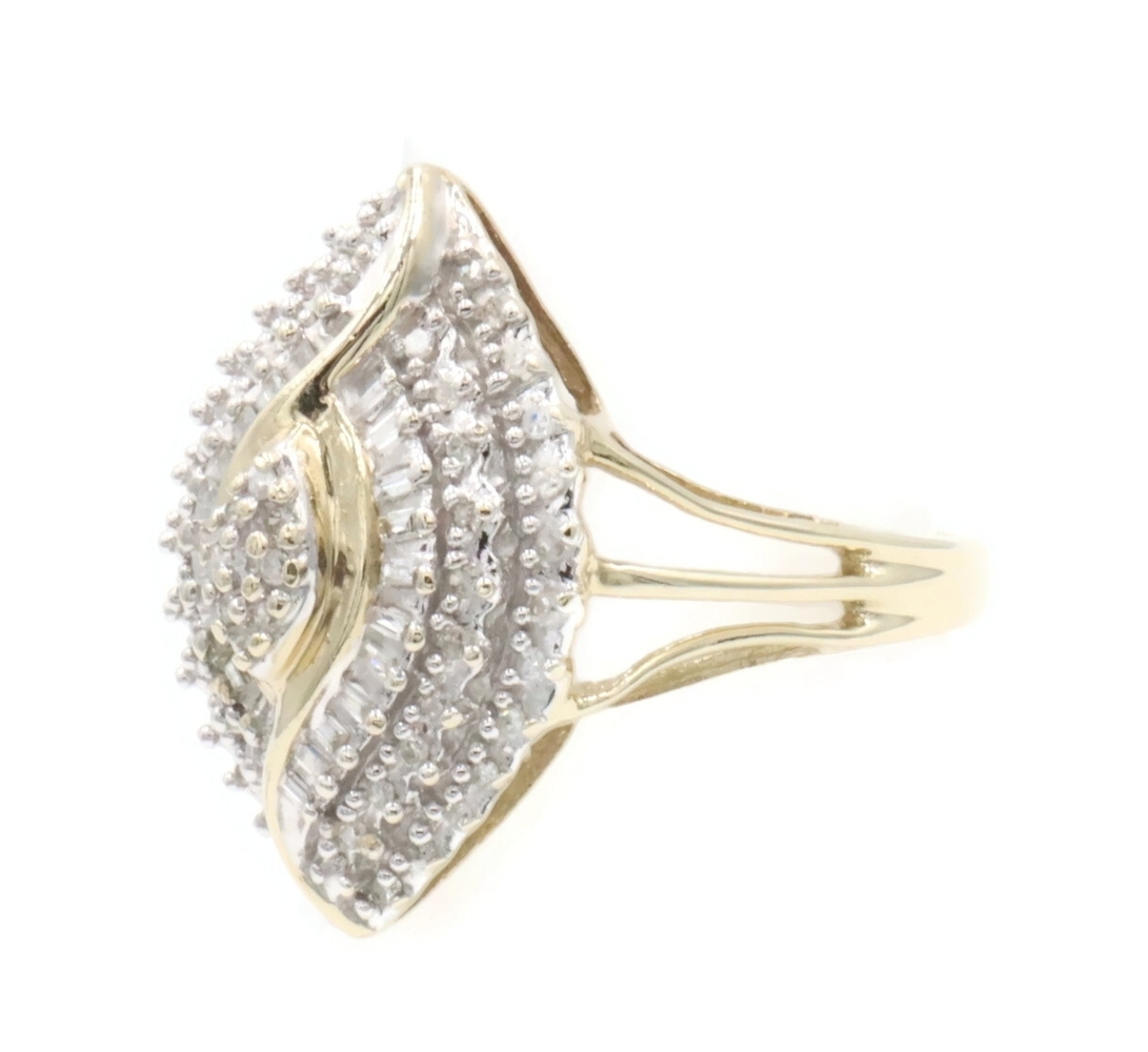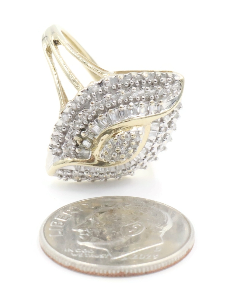 Fancy 0.50 Ctw Round & Baguette Diamond 10KT Gold Marquise Cluster Ring JTW - 4g | USA Pawn