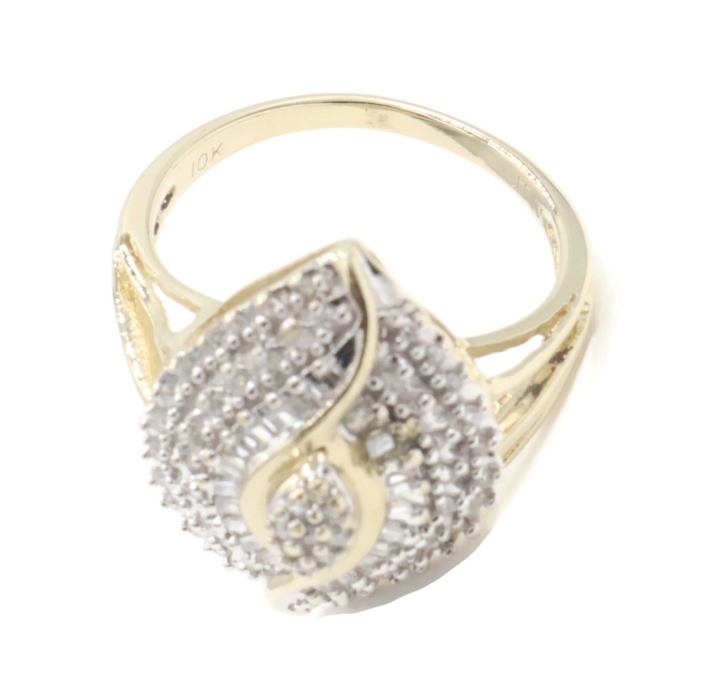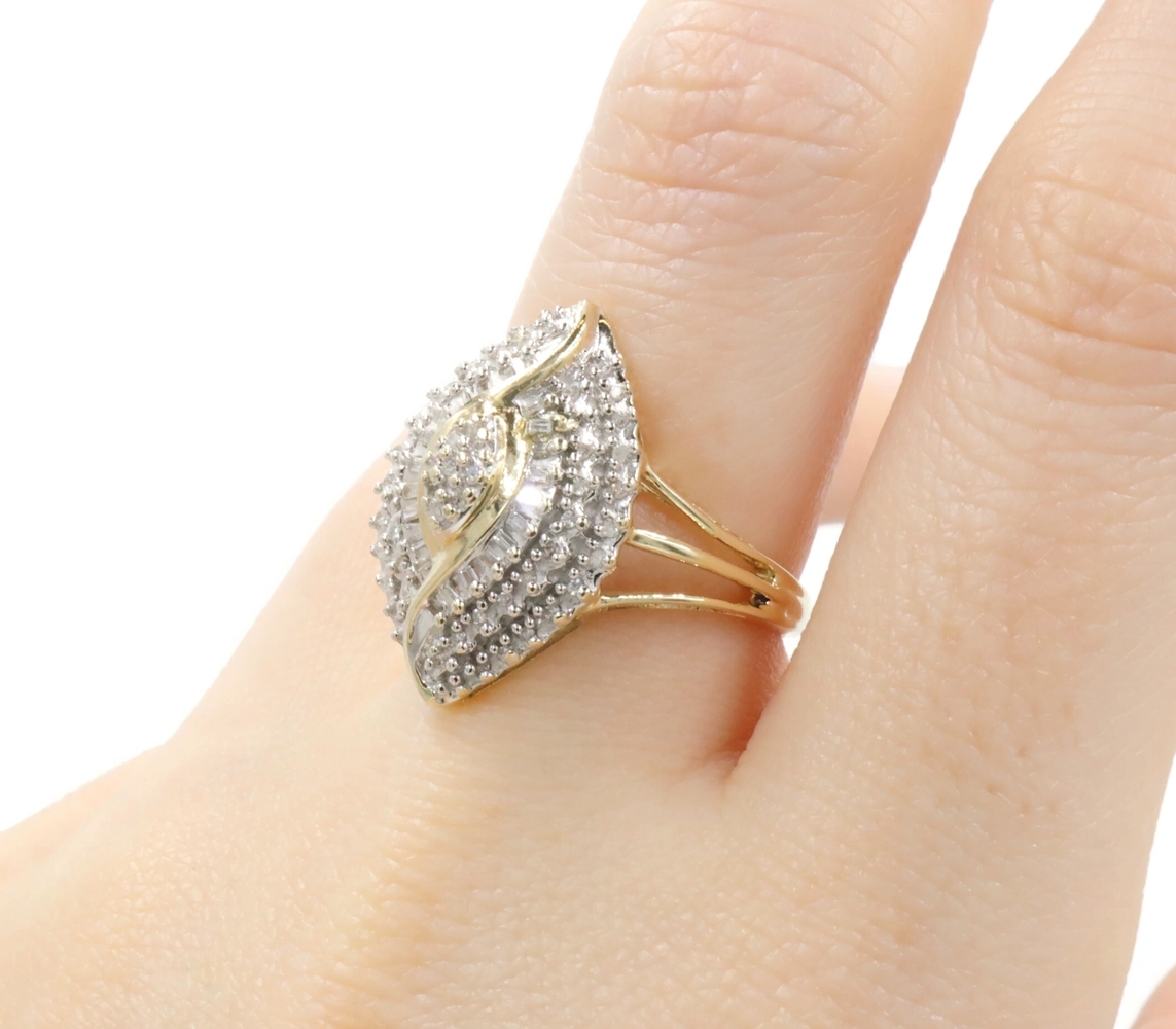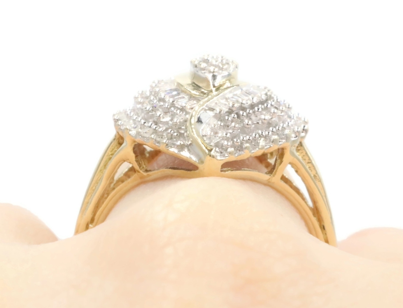 Fancy 0.50 Ctw Round & Baguette Diamond 10KT Gold Marquise Cluster Ring JTW - 4g | USA Pawn