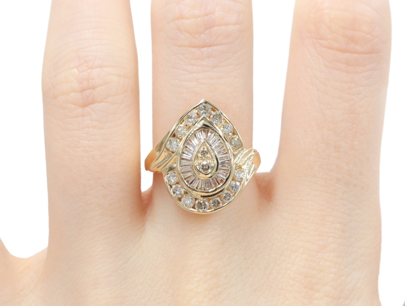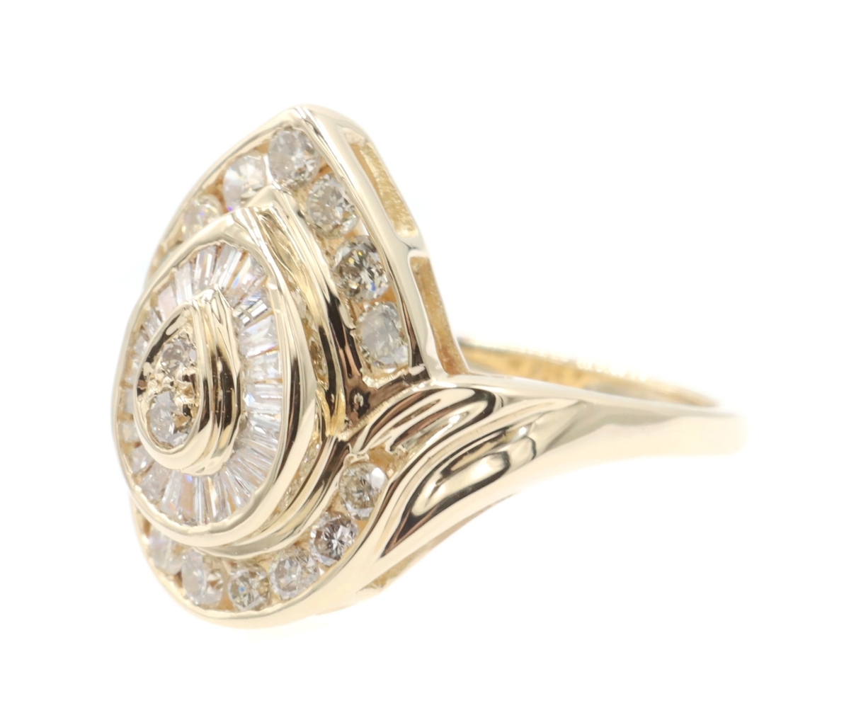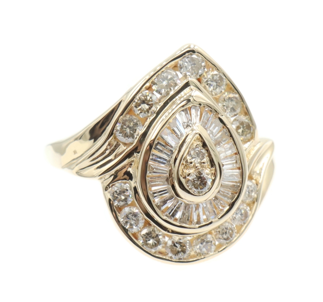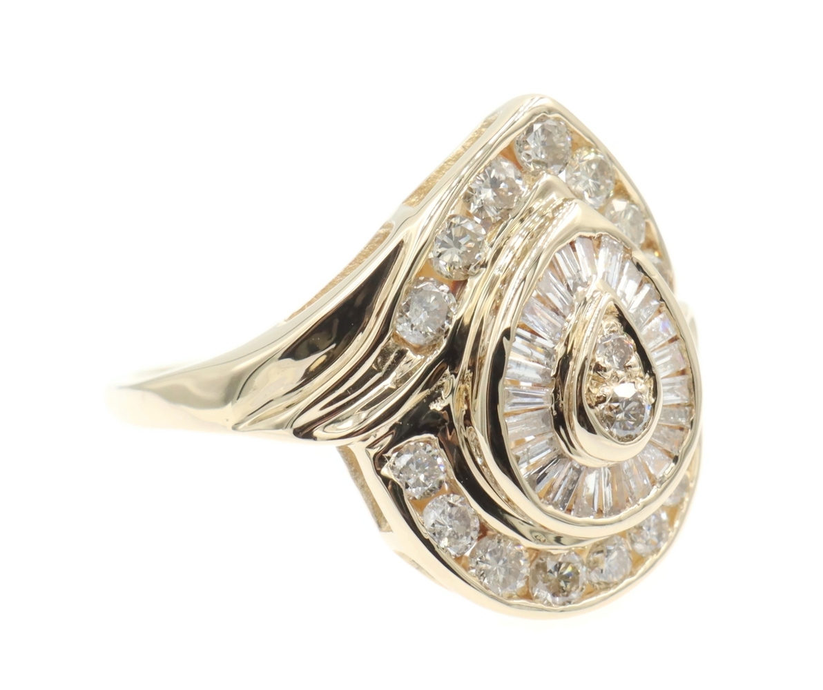 Fancy 0.78 Ctw Round & Baguette Diamond 14KT Yellow Gold Pear Cluster Ring 6.68g | USA Pawn