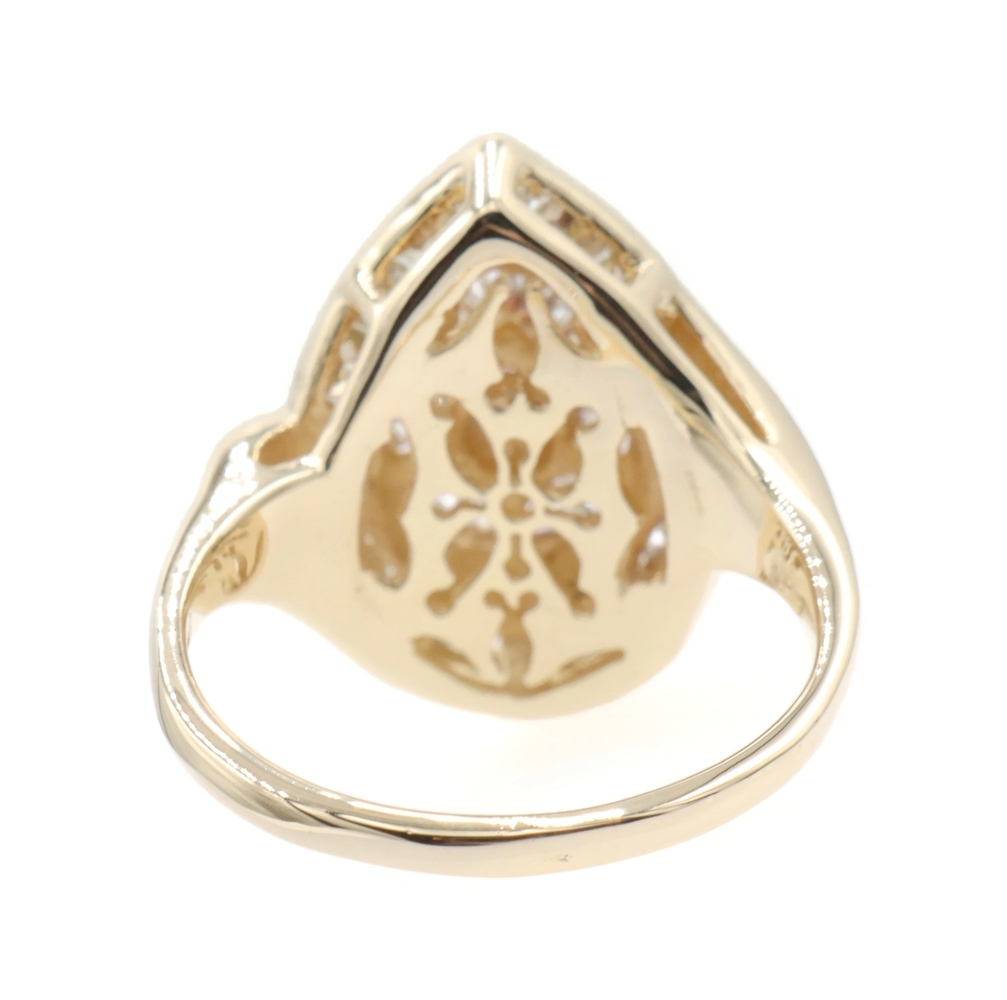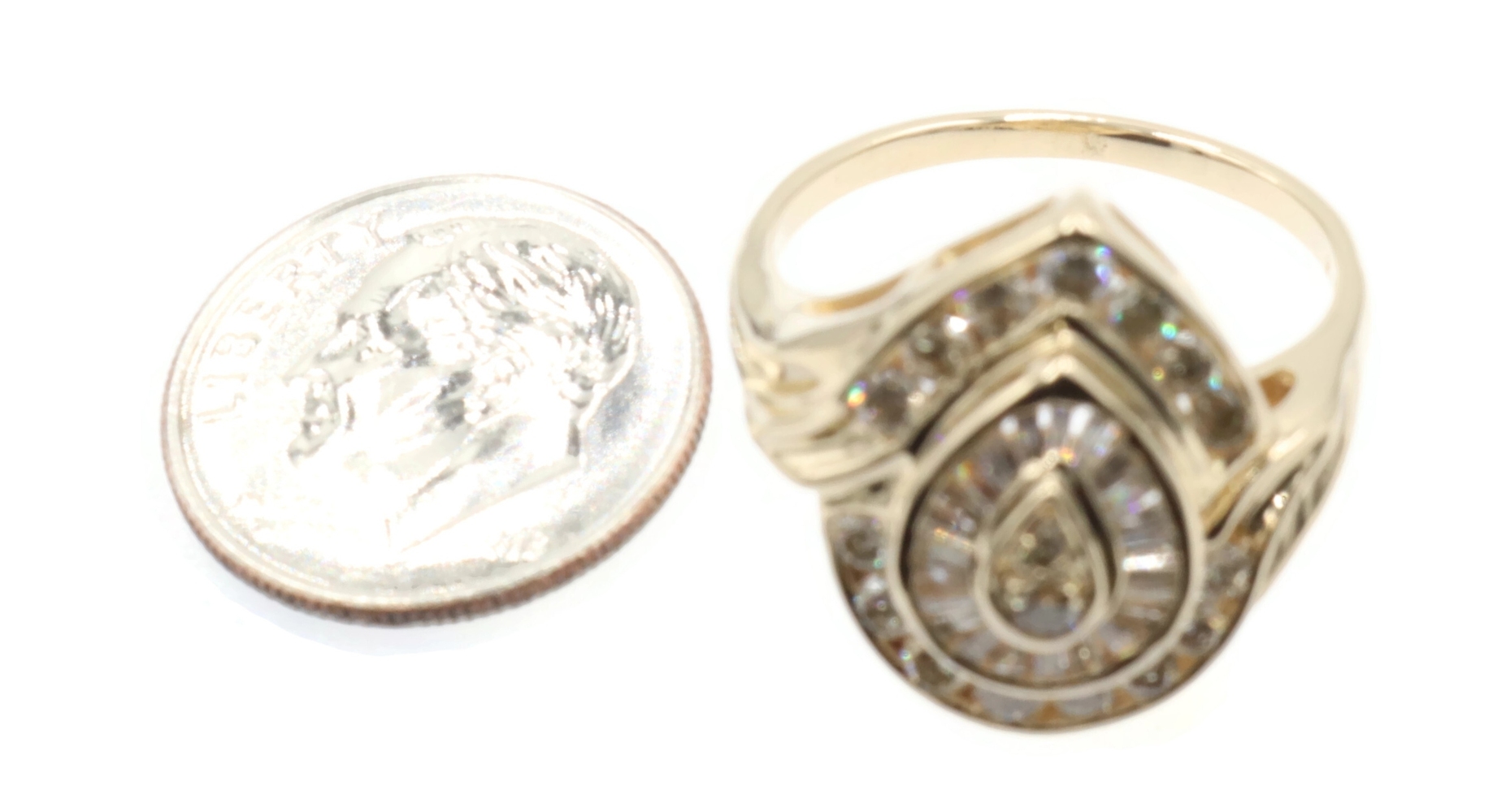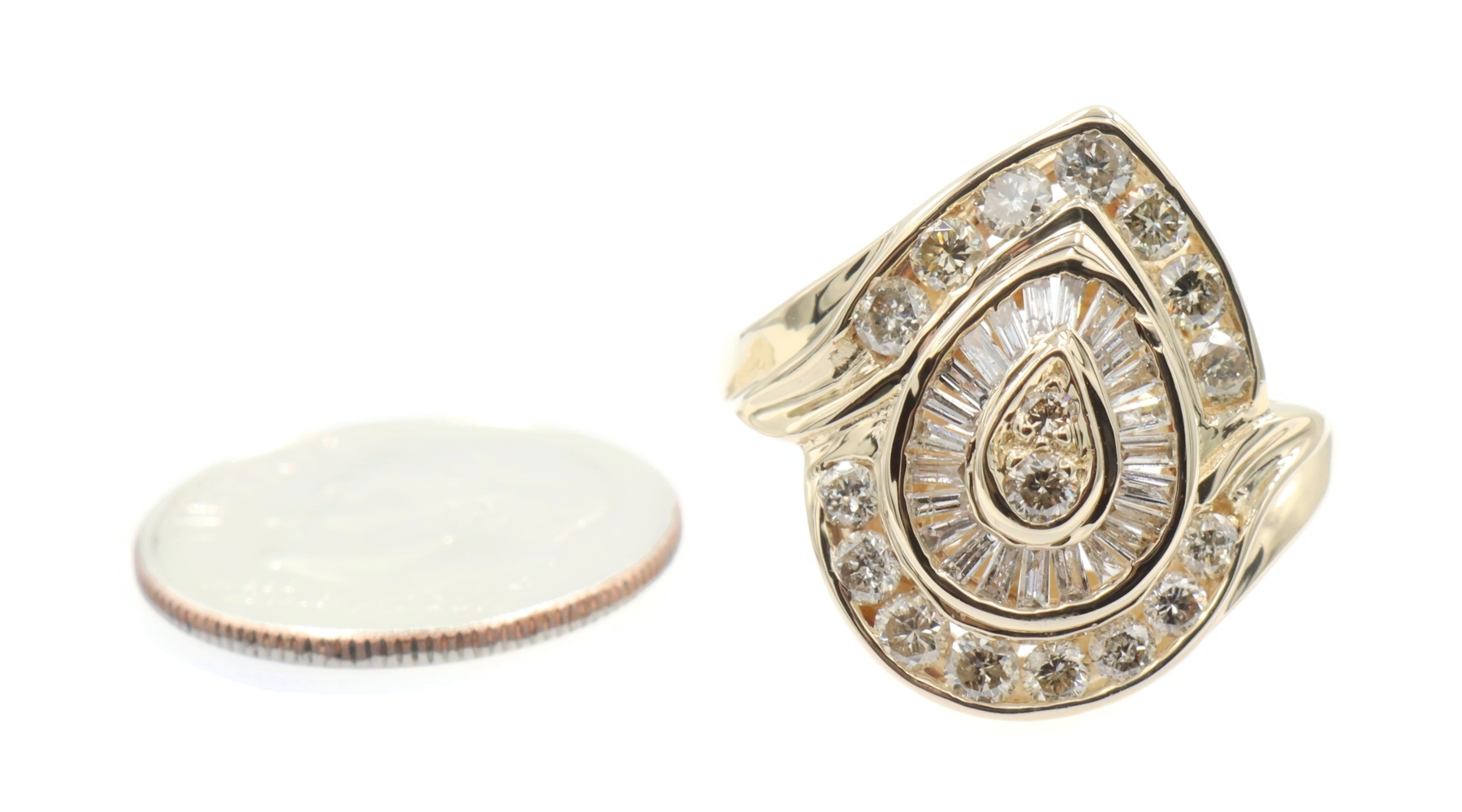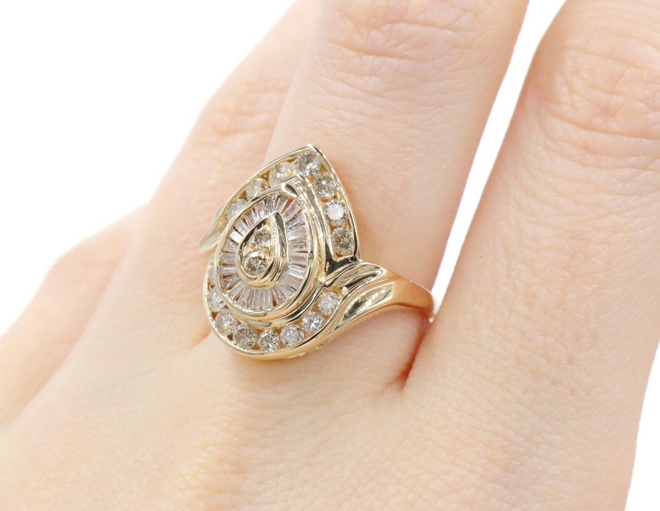 Fancy 0.78 Ctw Round & Baguette Diamond 14KT Yellow Gold Pear Cluster Ring 6.68g | USA Pawn