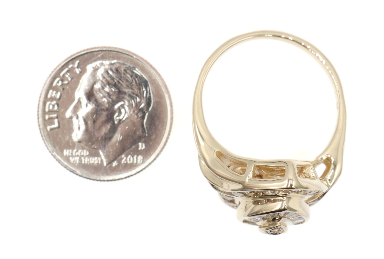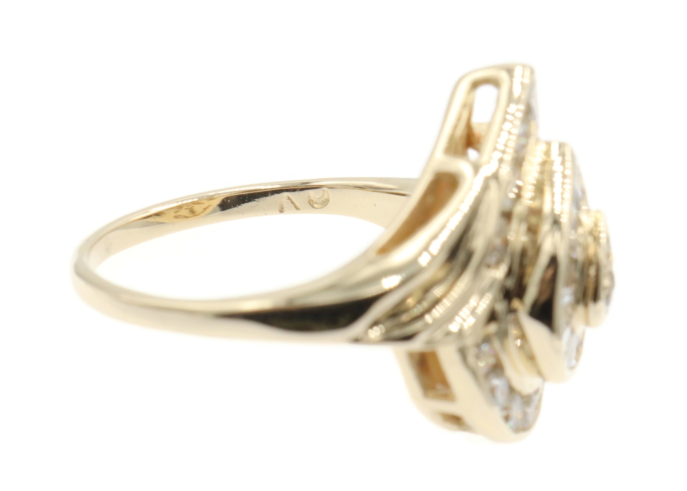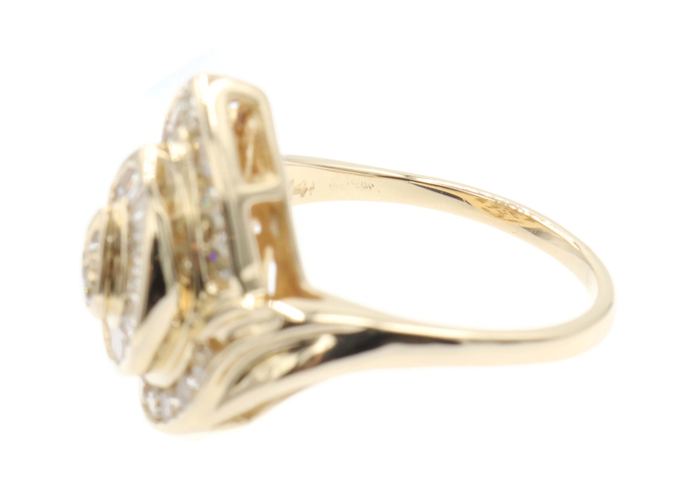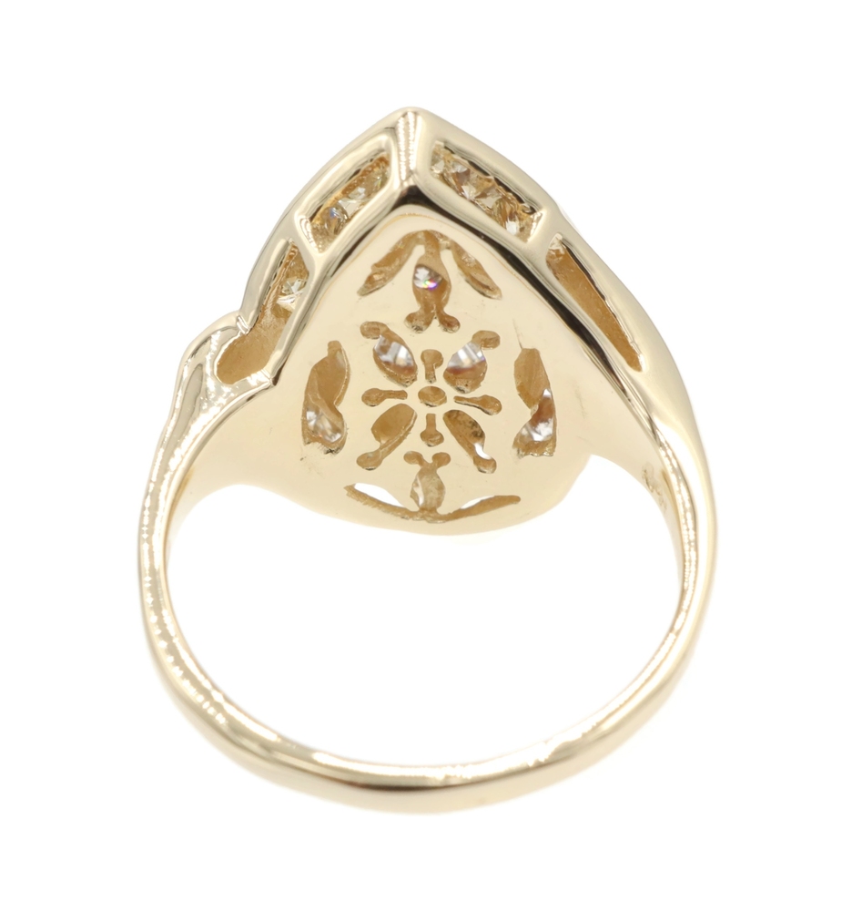 Fancy 0.78 Ctw Round & Baguette Diamond 14KT Yellow Gold Pear Cluster Ring 6.68g | USA Pawn