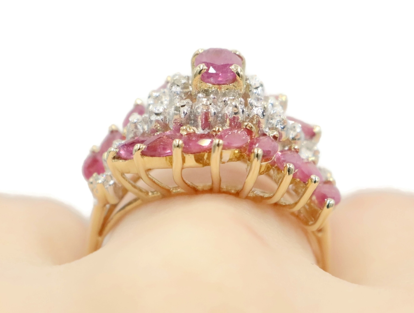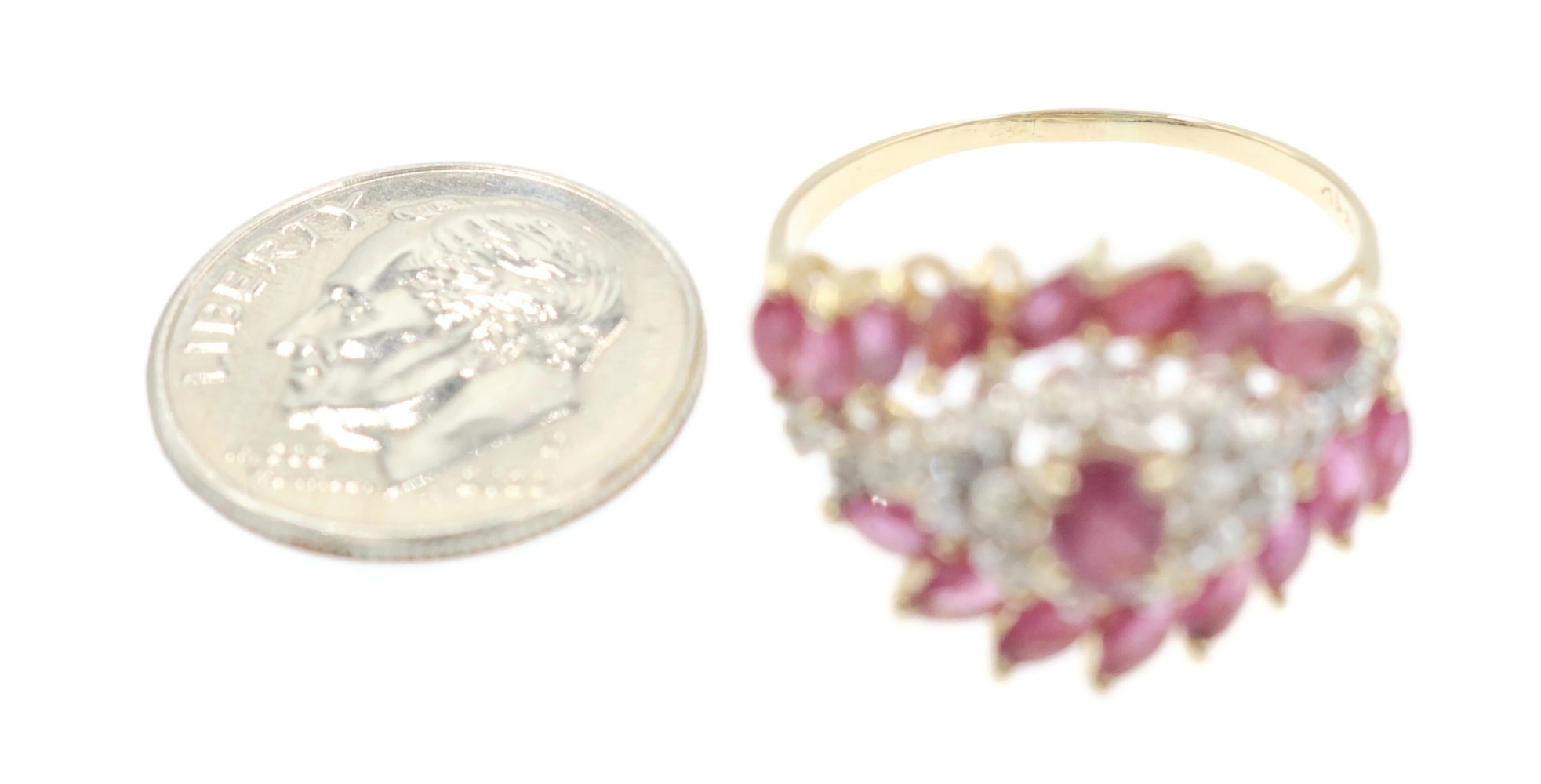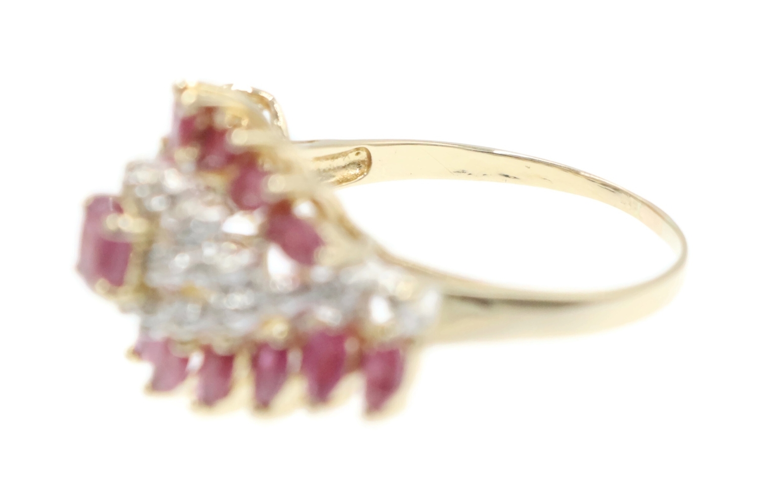 Fancy 1.30 Ctw Oval & Marquise Natural Ruby with Diamond Accents 14KT Gold Ring. This ring is a size 7 1/2.