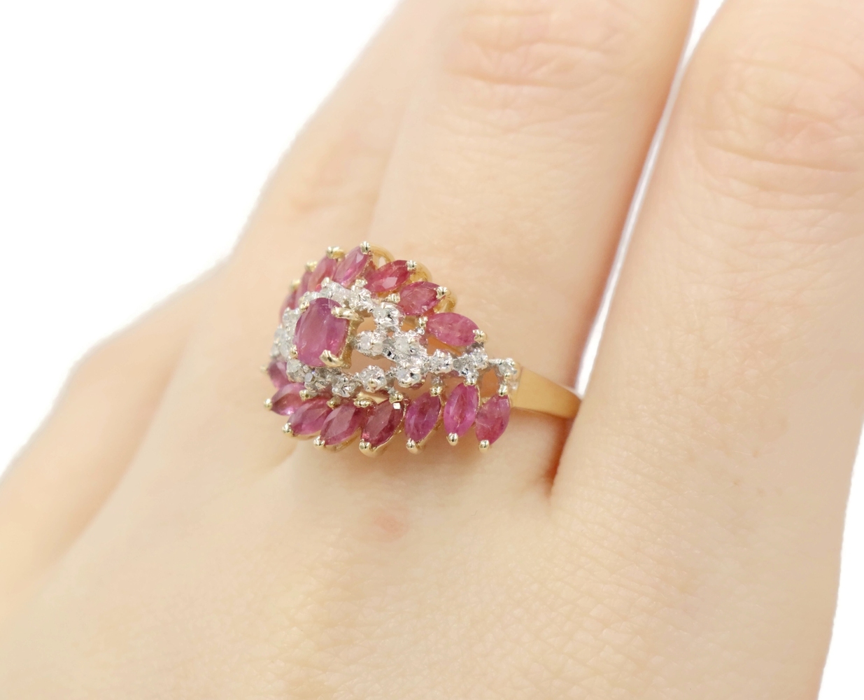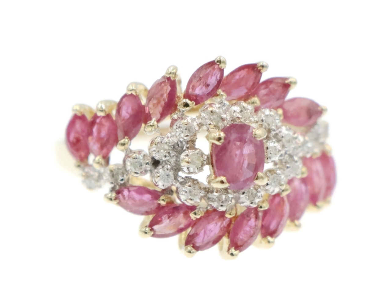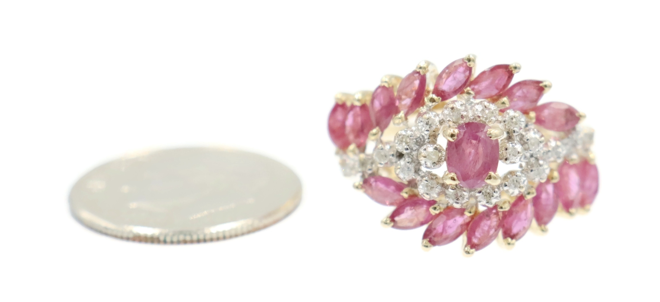 Fancy 1.30 Ctw Oval & Marquise Natural Ruby with Diamond Accents 14KT Gold Ring | USA Pawn