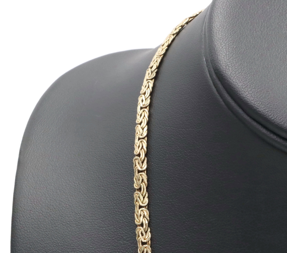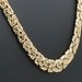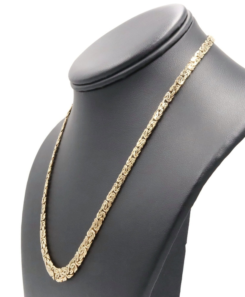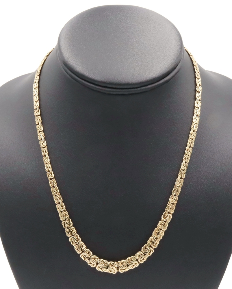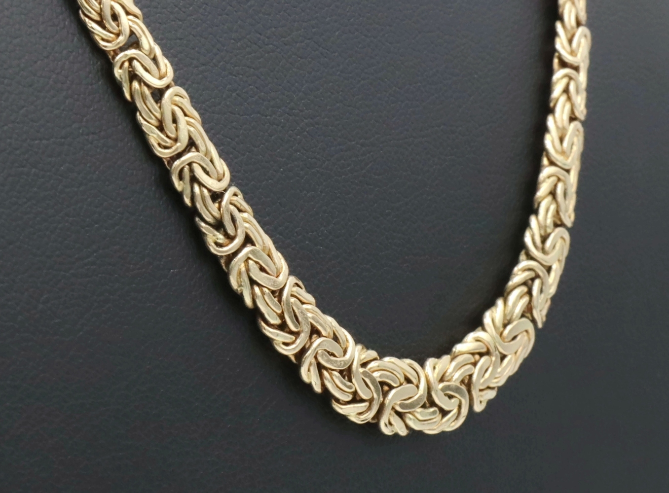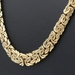 Fancy Graduated 14KT Yellow Gold Flat Byzantine Necklace 18" AK Turkey - 11.03g. This necklace is approximately 18 1/4 inches in length with a maximum width of 7.9mm.