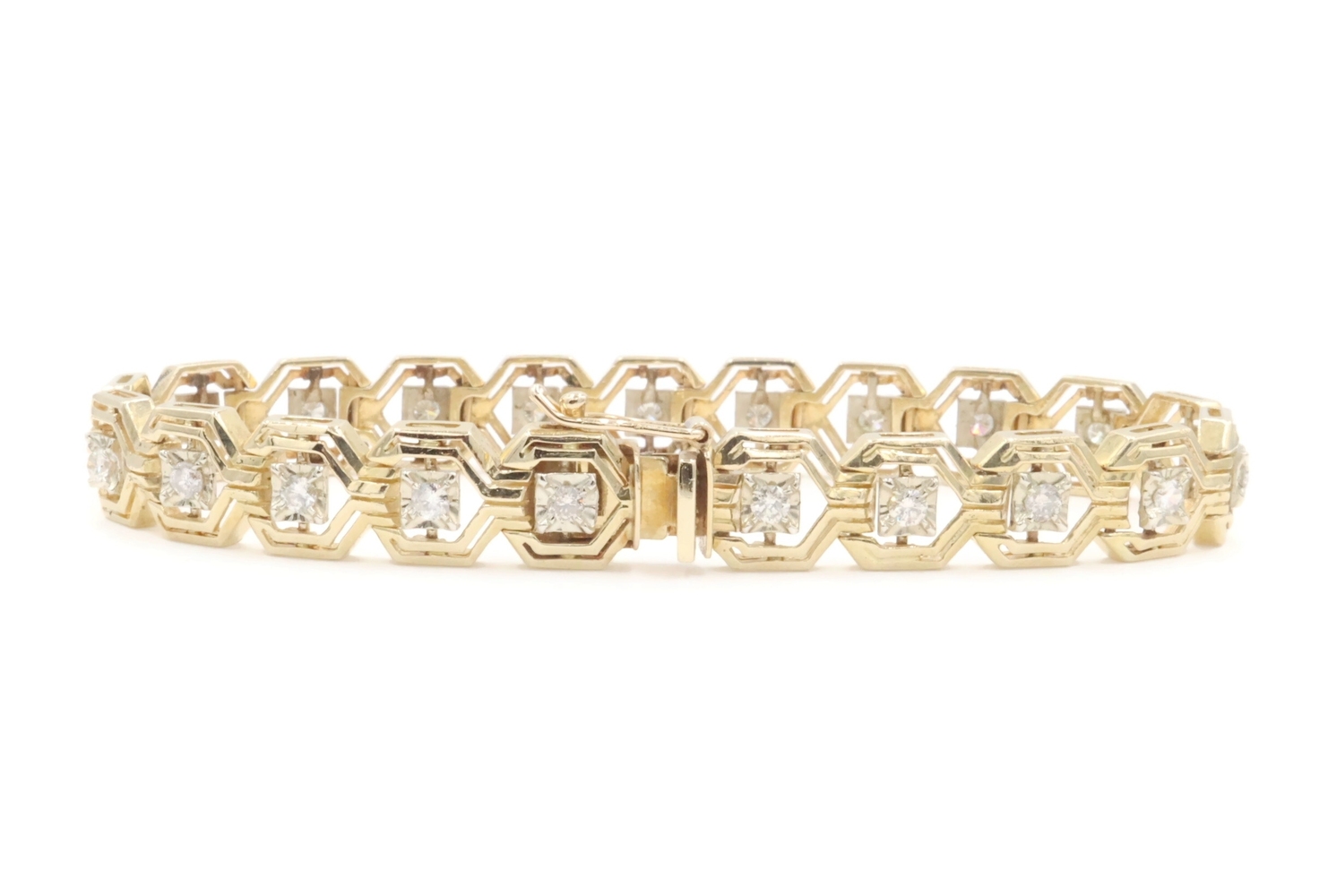 Fancy Hexagon Link 0.52 Ctw Round Diamond 14KT Yellow Gold Tennis Bracelet 7" | USA Pawn