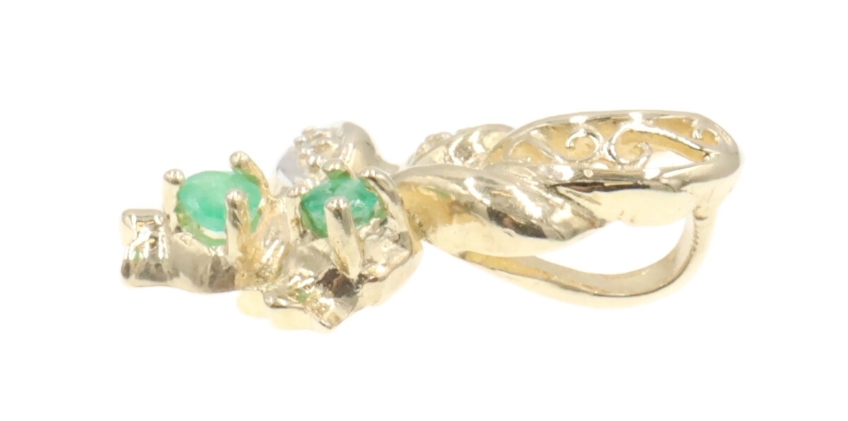 Floral Filigree 0.06 Ctw Natural Emerald & Diamond 10KT Gold 18.5mm Pendant 1.2g | USA Pawn