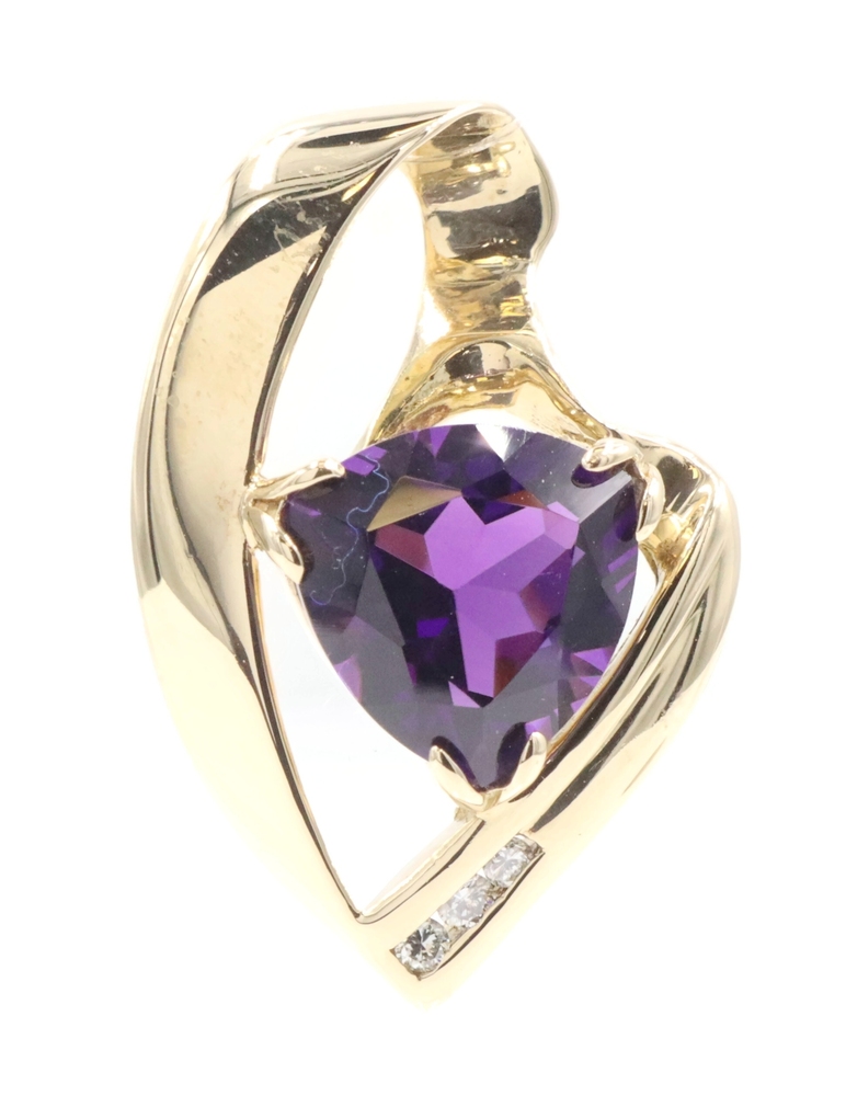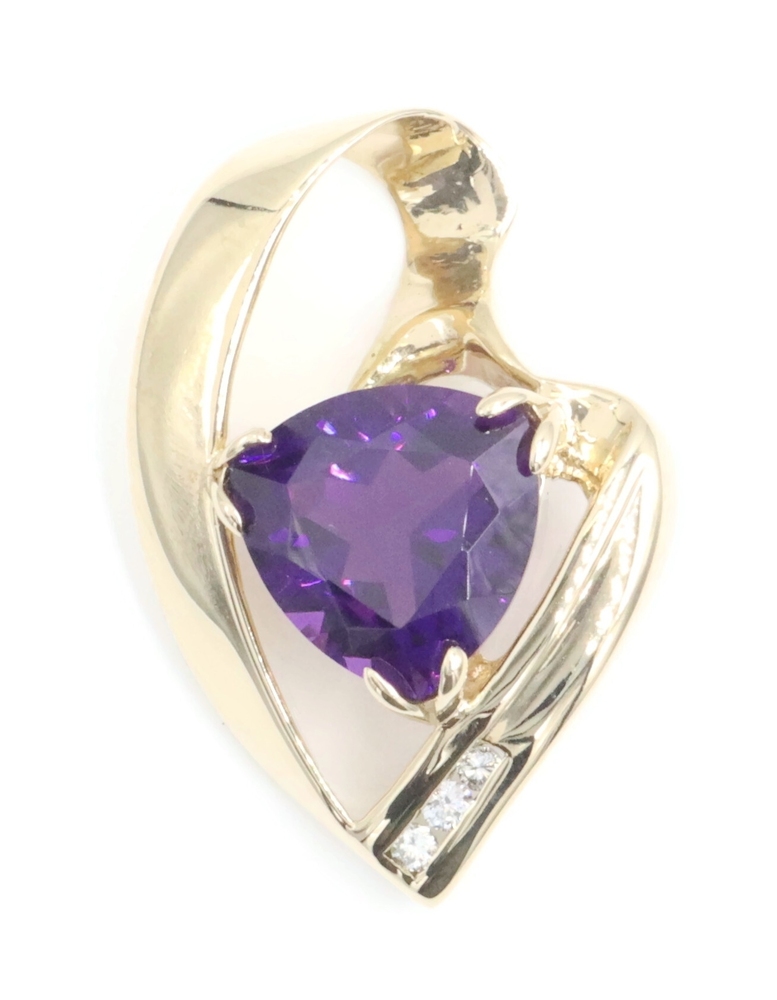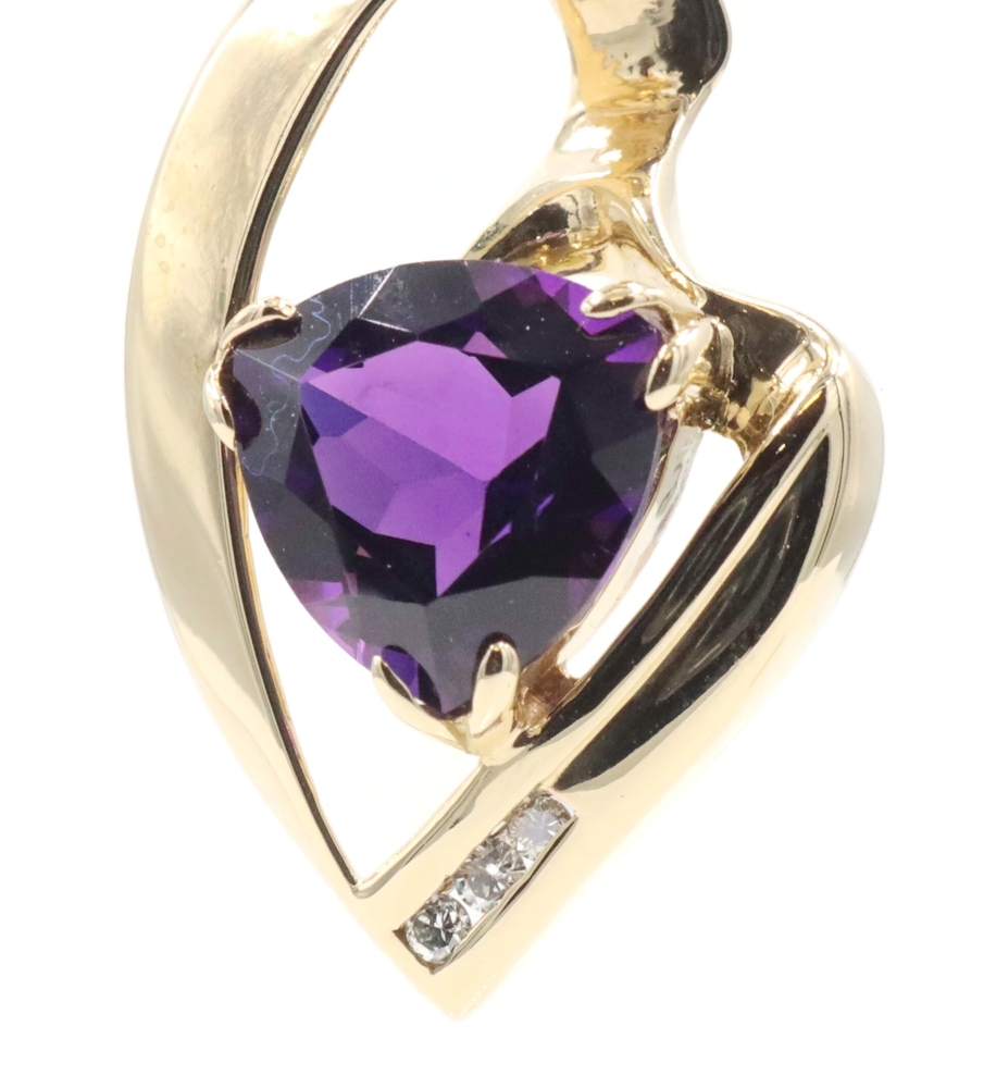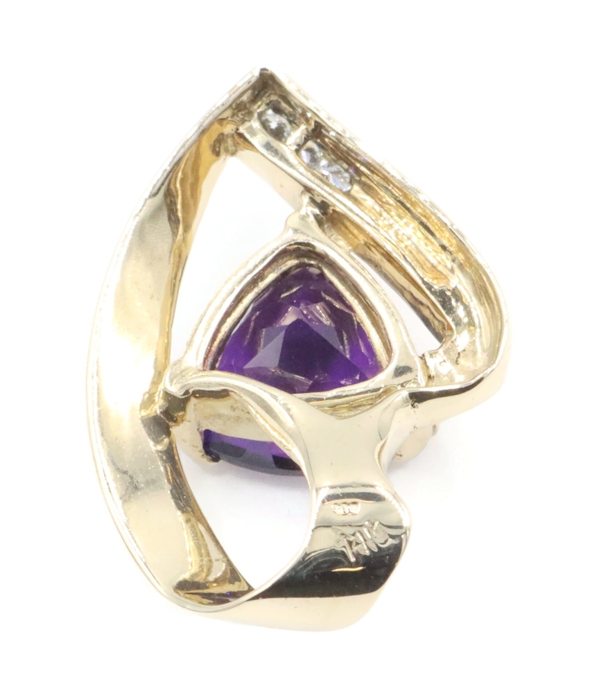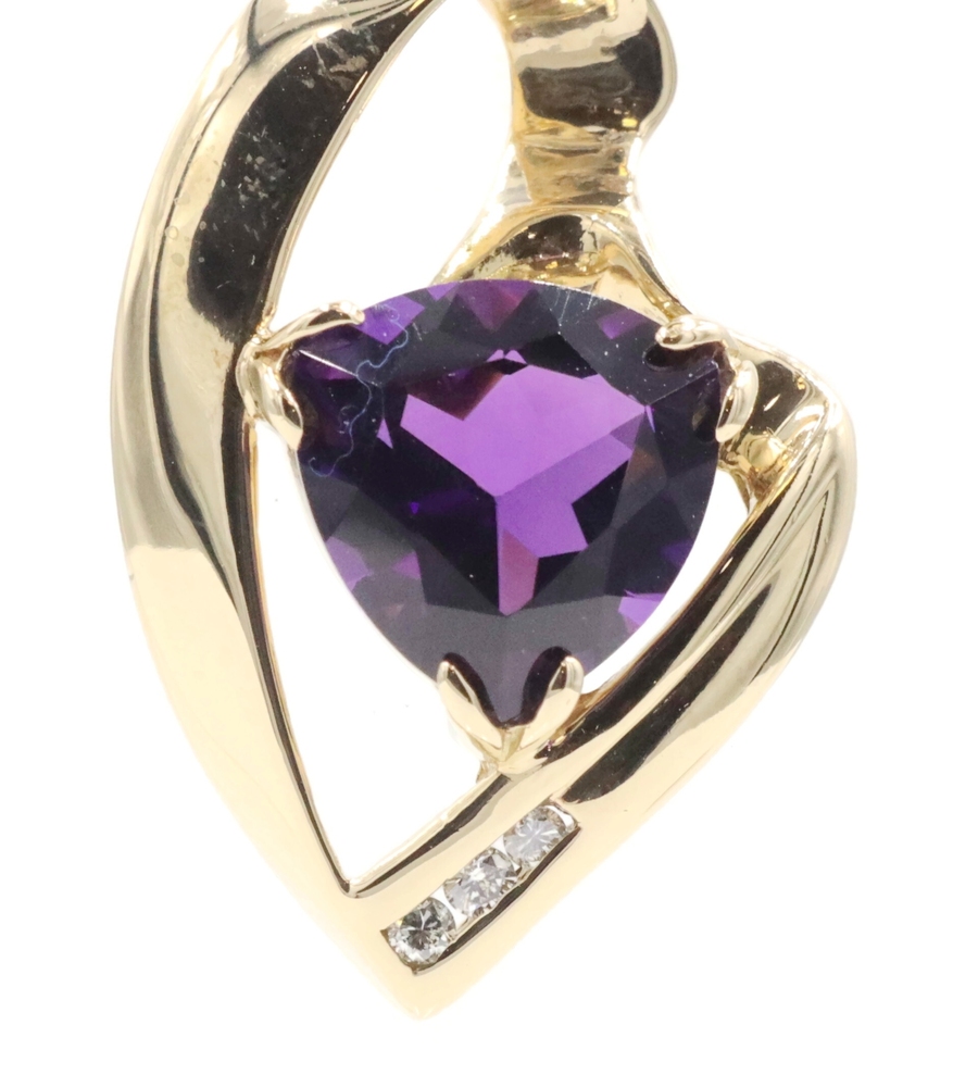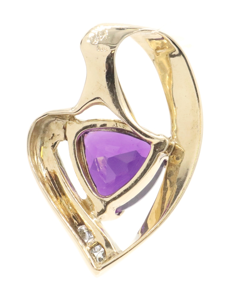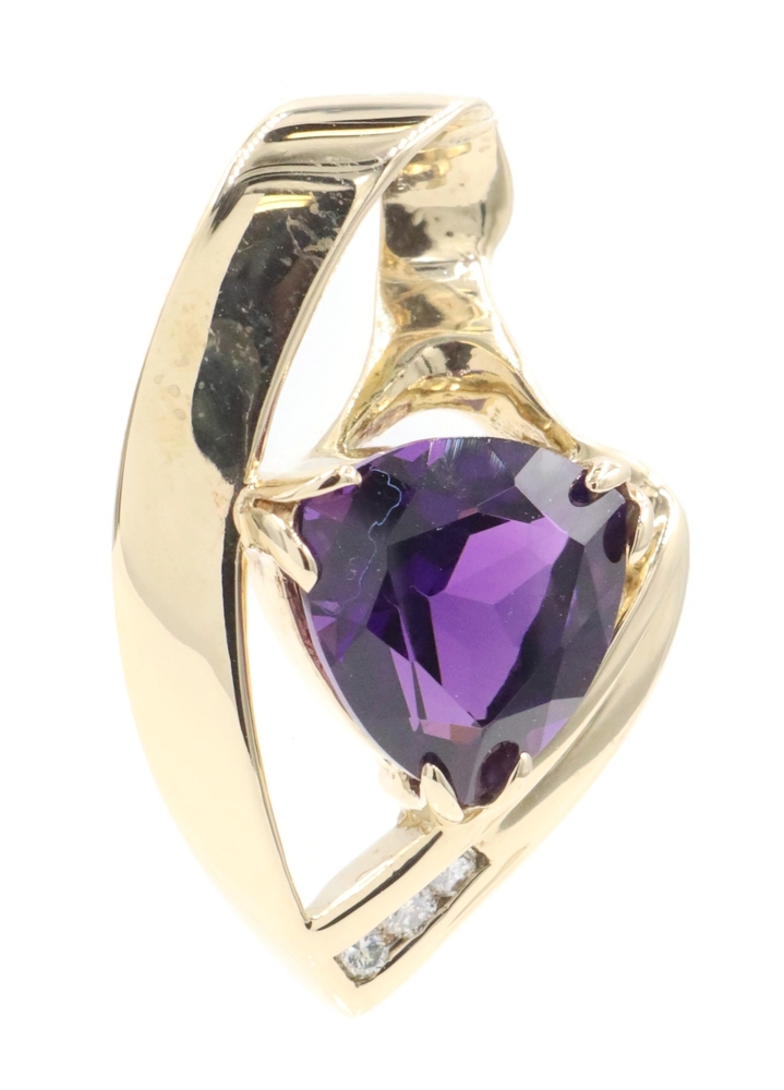 Freeform 3.60 Ct Trilliant Amethyst & Diamond 14KT Gold 1.1" Slide Pendant 6.56g | USA Pawn